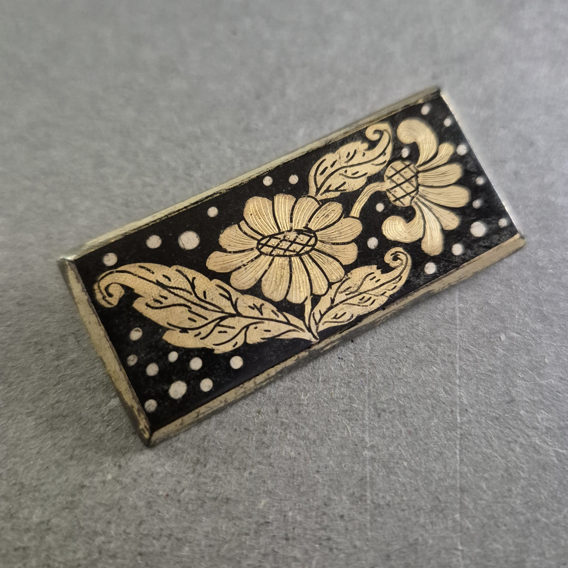 Rechteckige florale Brosche im Schwarz-Gold-Look – Vintage-Stil mit Blumenmotiv
