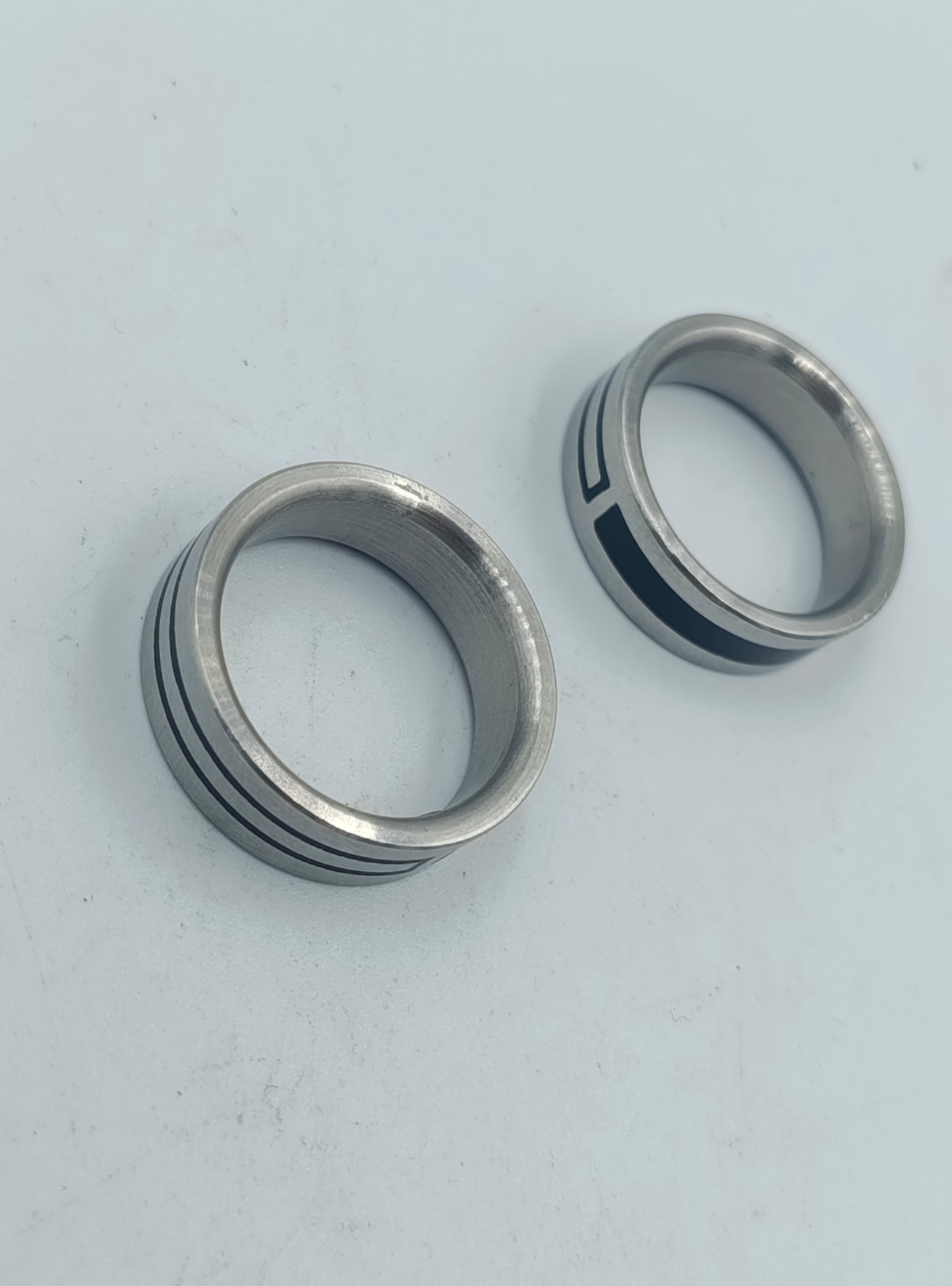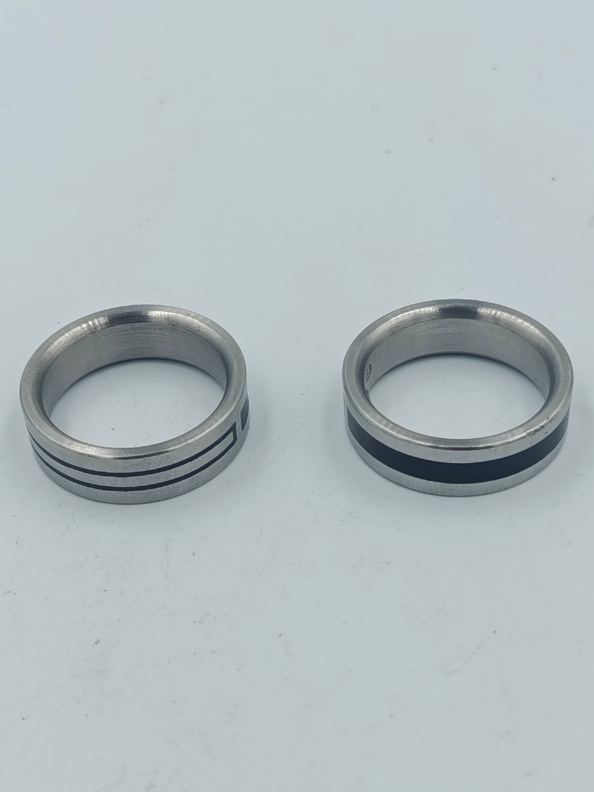 • Kratzfeste Edelstahlringe mit schwarzem Akzent