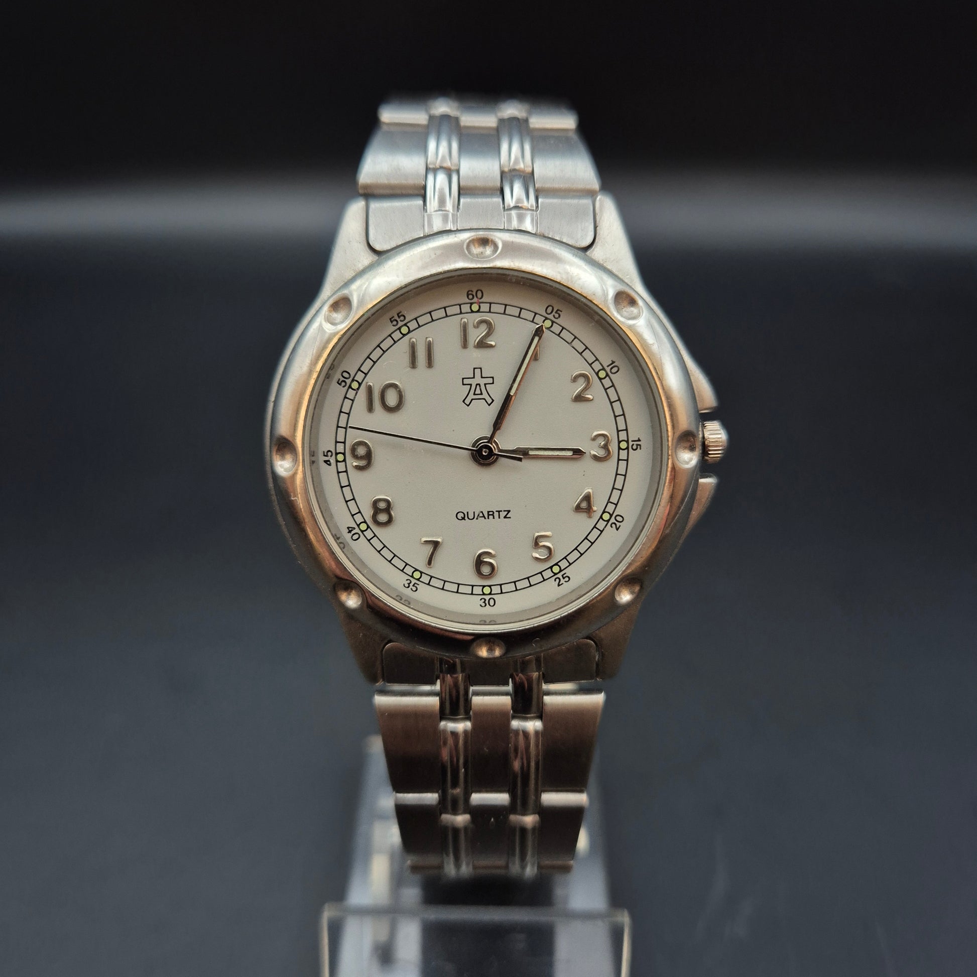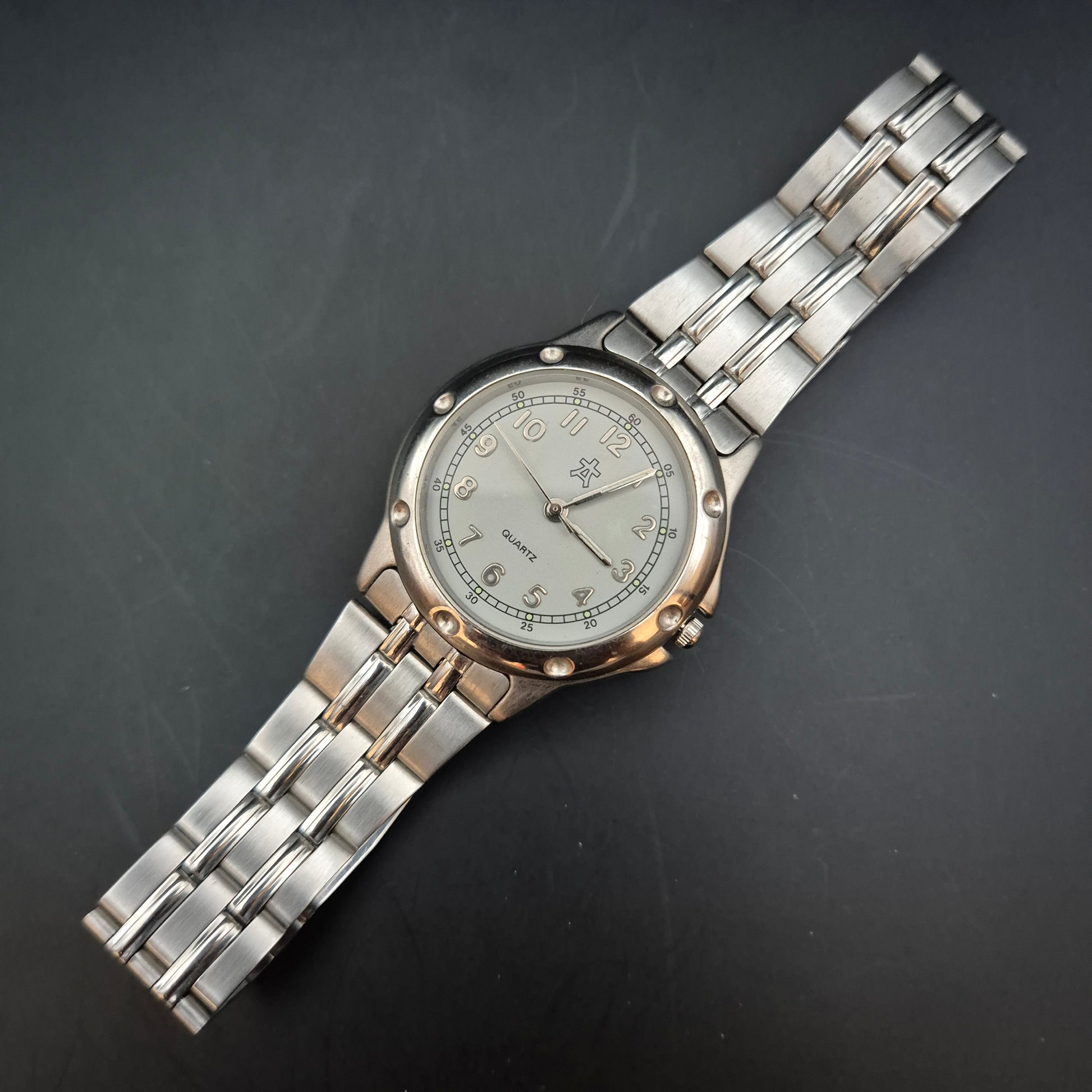 Diese robuste Herren Uhr in Silberfarben ist ein zuverlässiger Zeitmesser im sportlichen Design. Das helle Zifferblatt mit klar lesbaren arabischen Ziffern und Minutenmarkierungen sorgt für eine hervorragende Ablesbarkeit. Das widerstandsfähige Edelstahlarmband macht sie zum idealen Begleiter für den Alltag und Freizeitaktivitäten.