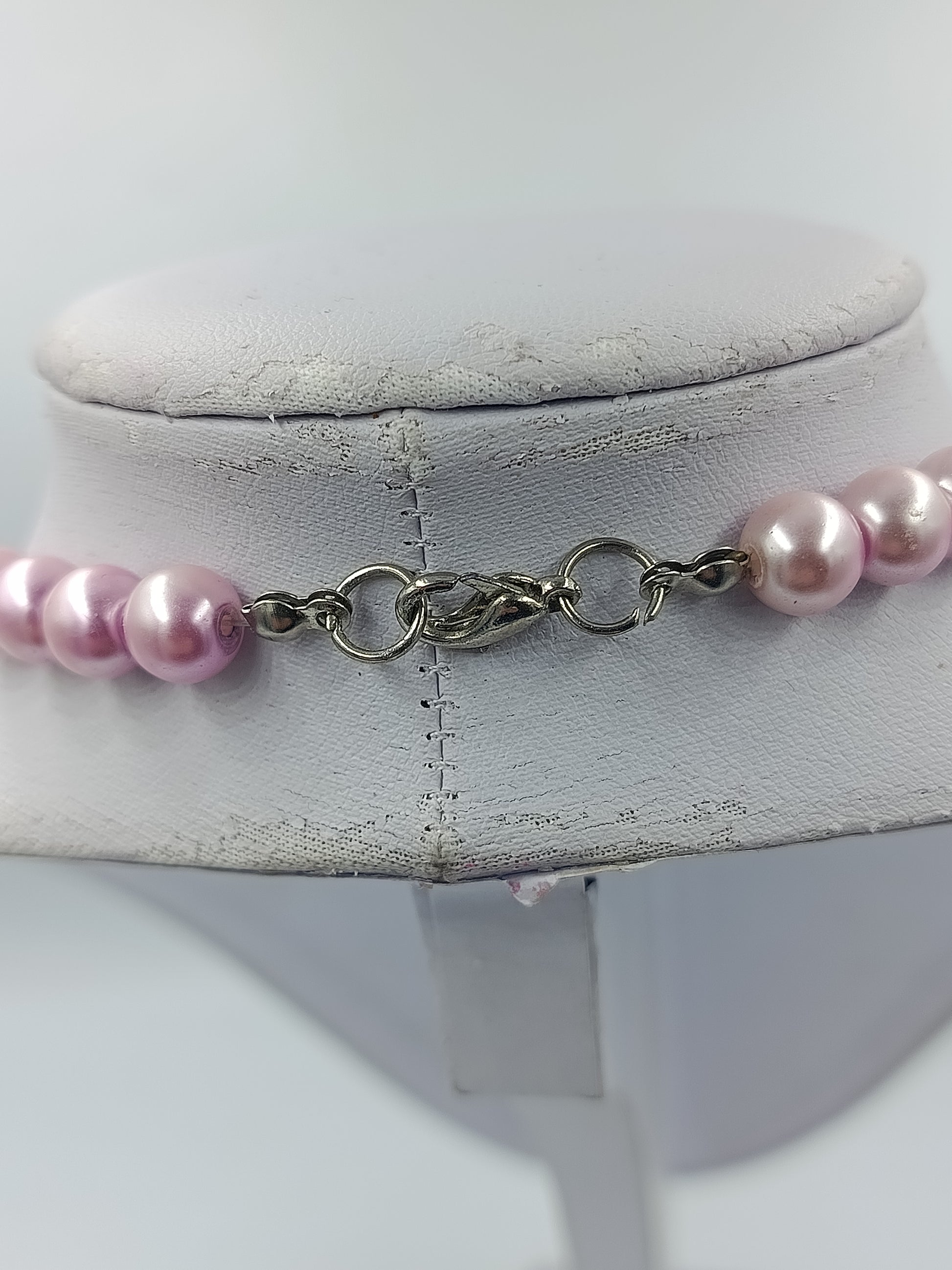 Wunderschöne rosa Perlenkette mit glänzenden Strass-Zwischenelementen, die der Kette eine edle, feminine Note verleihen. Das klassische Design erinnert an Vintage-Schmuck vergangener Jahrzehnte und lässt sich perfekt zu eleganten Outfits kombinieren – ob für festliche Anlässe oder als stilvolles Accessoire im Alltag.