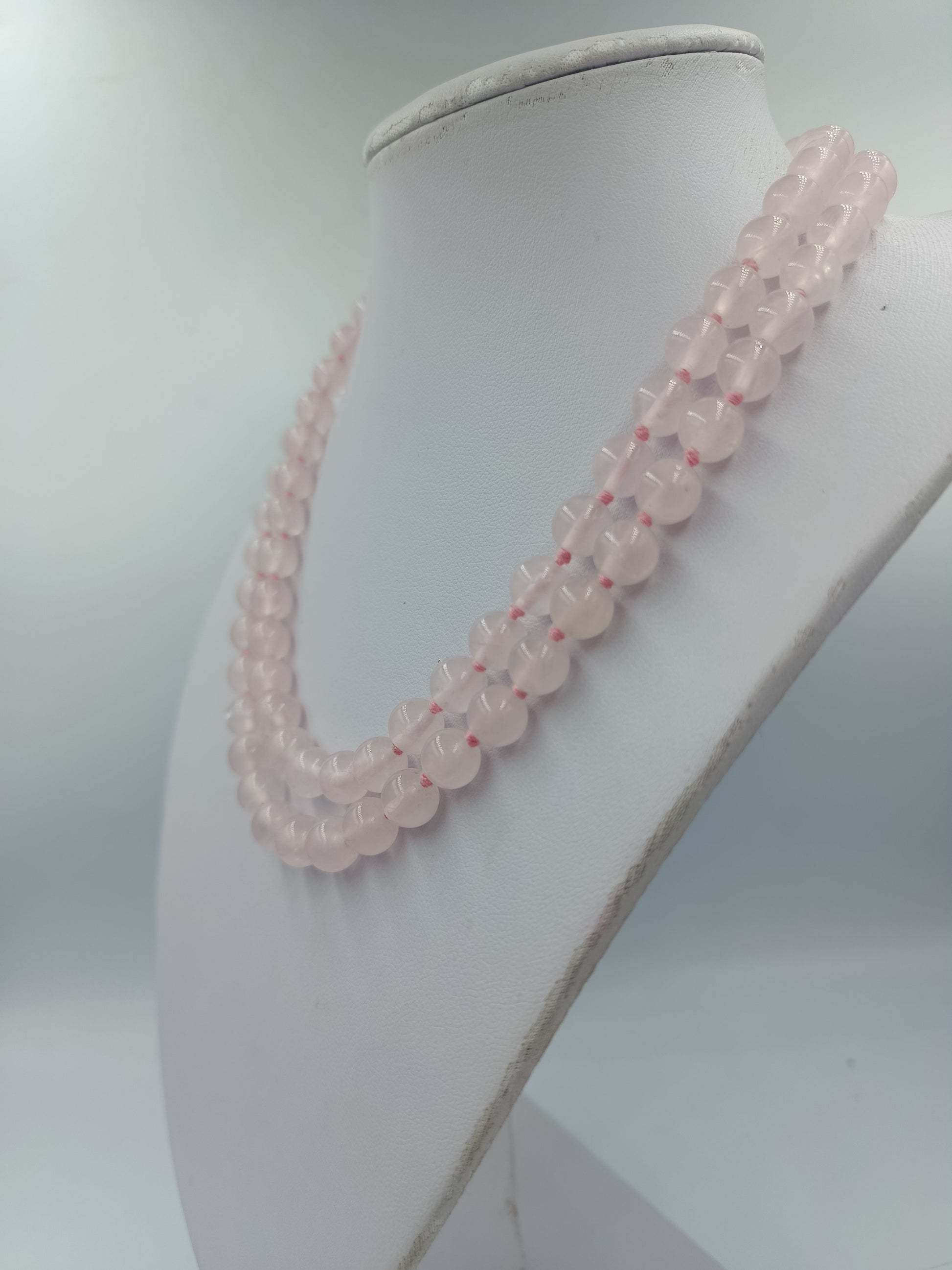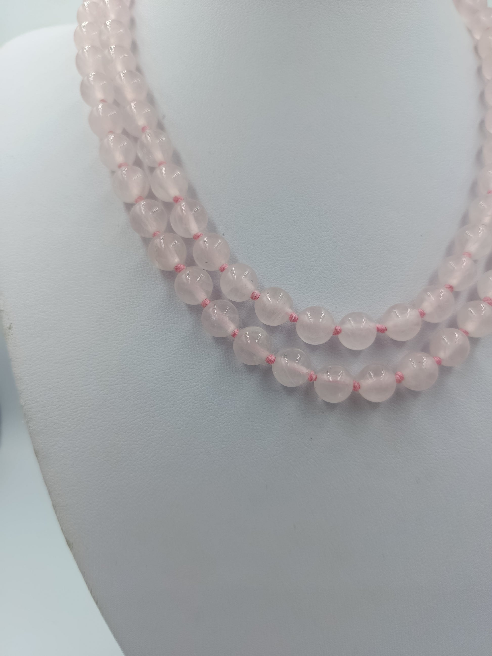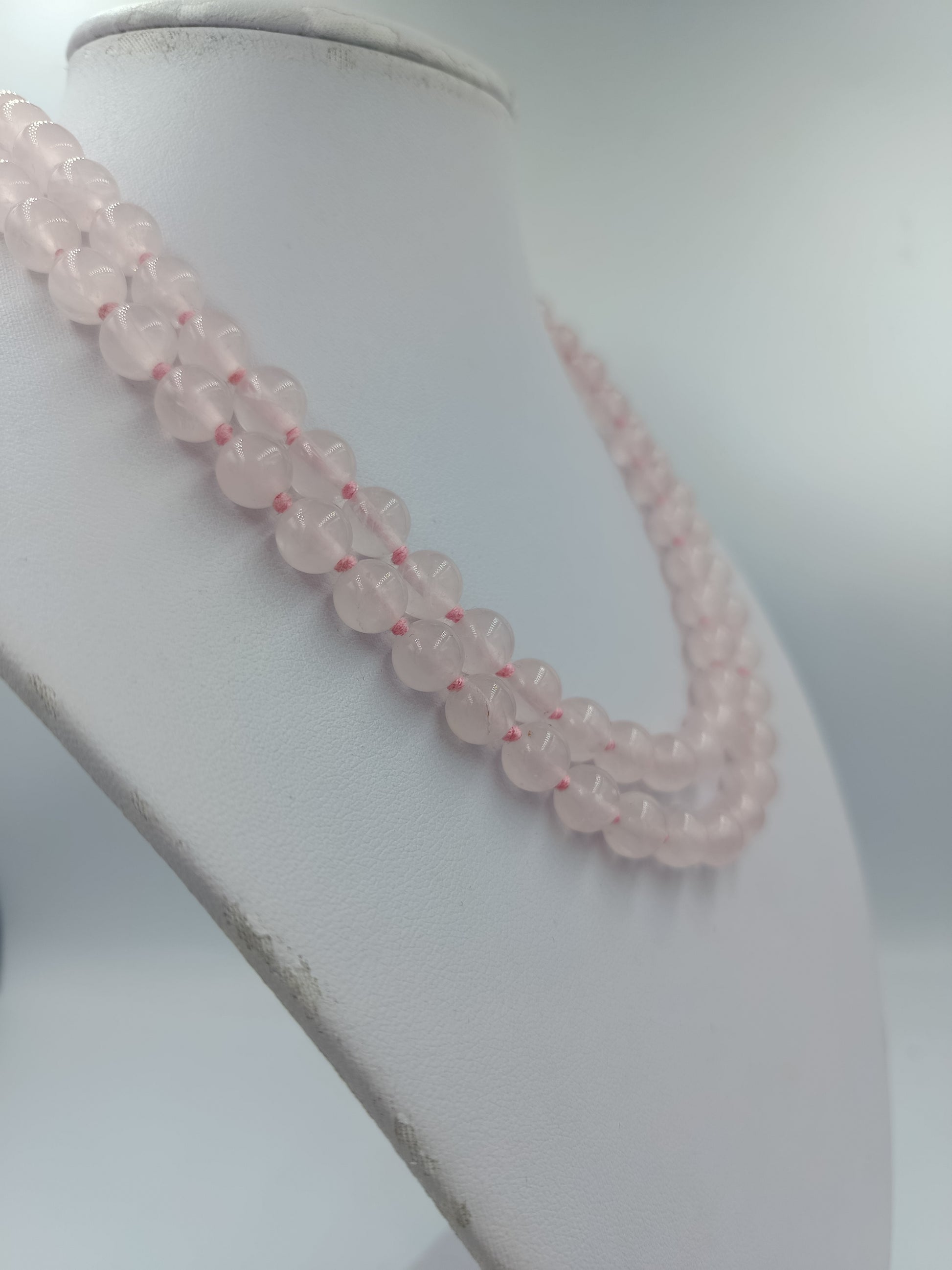 Rosenquarz Halskette Rundperlen Handgeknüpft Edelstein Schmuck