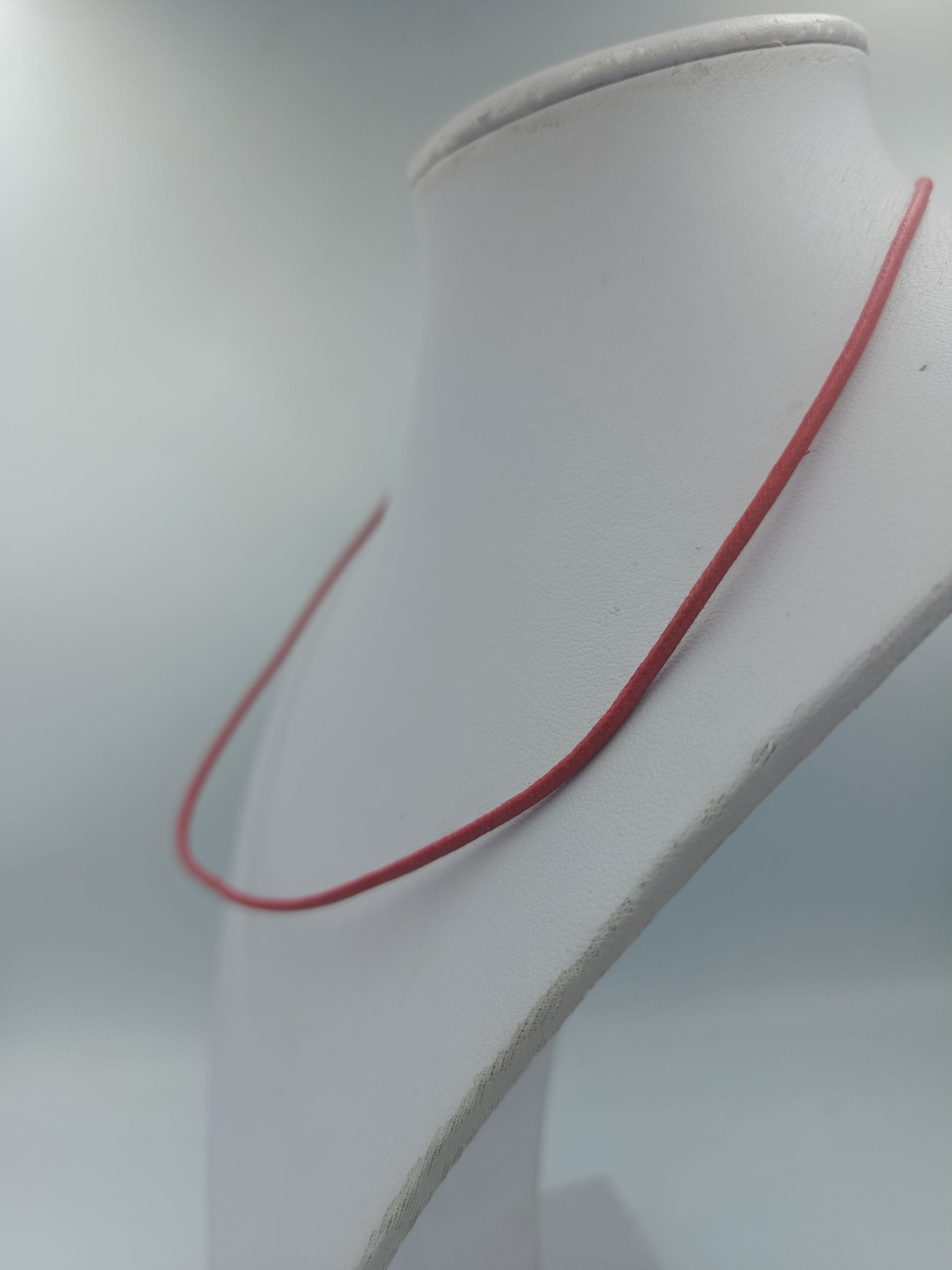 Schlichte rote Halskette aus feinem Lederband mit Metallhaken-Verschluss. Ideal als dezentes Schmuckstück oder als Band zum Tragen von Anhängern. Das minimalistische Design verleiht jedem Outfit einen frischen Farbakzent.