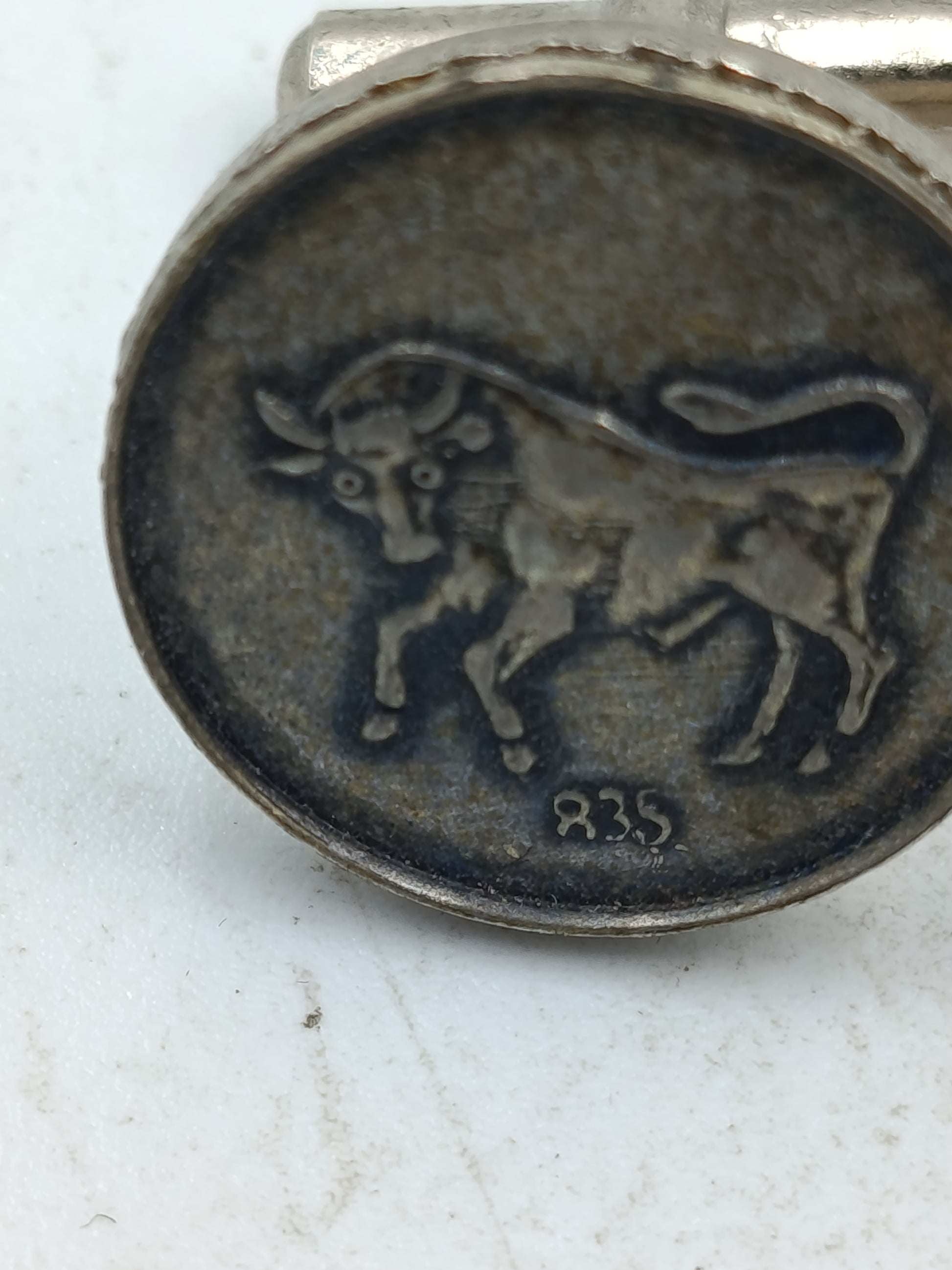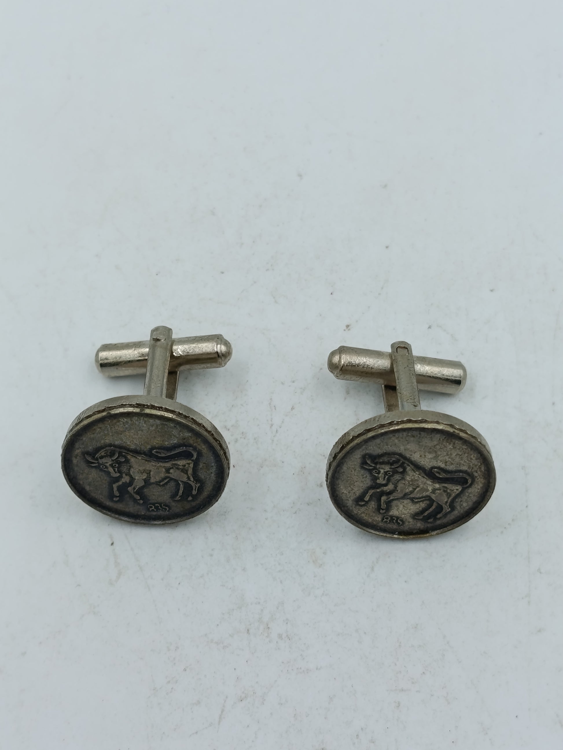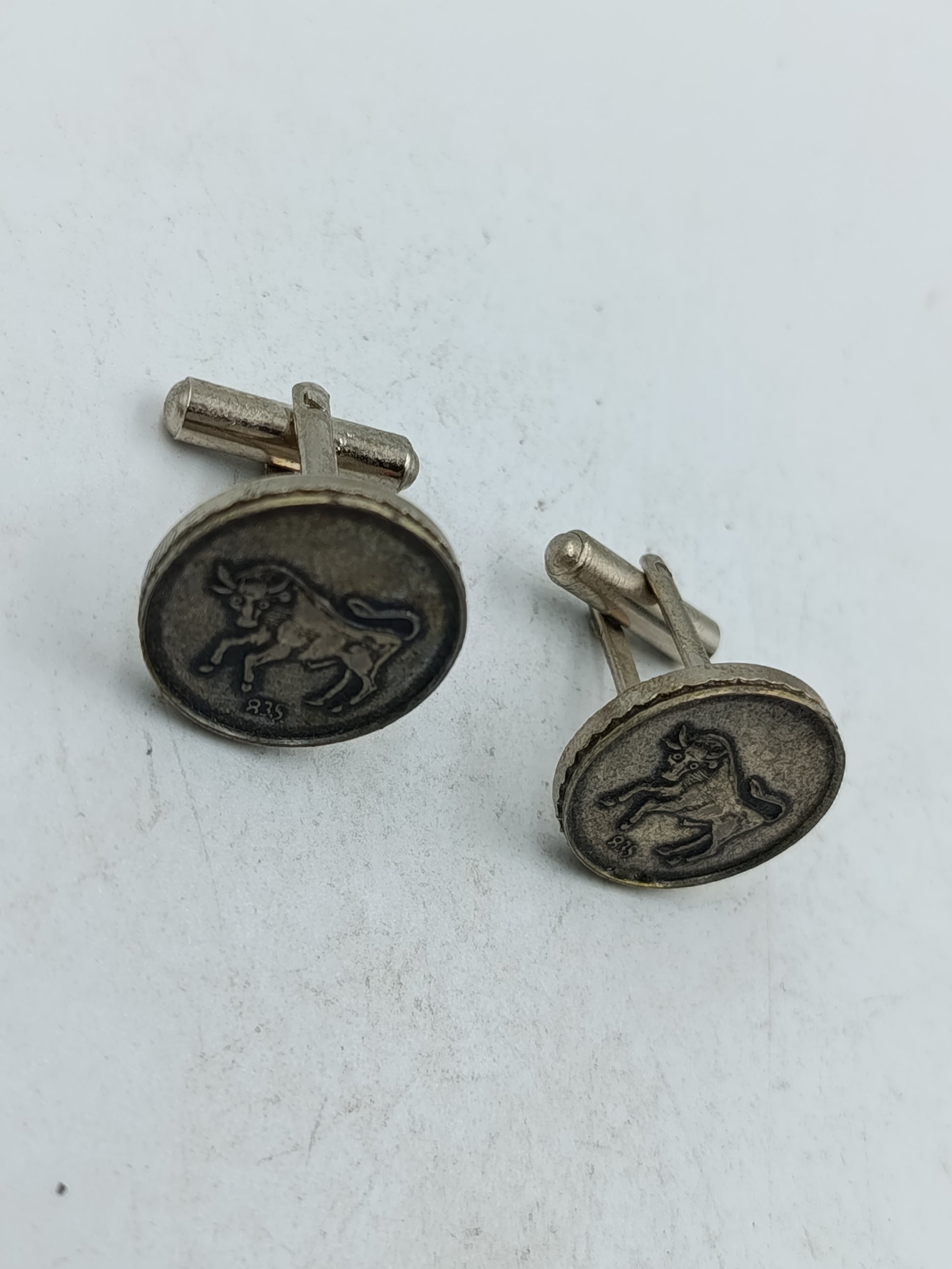 Runde Manschettenknöpfe aus echtem Silber mit Stiermotiv im antiken Stil