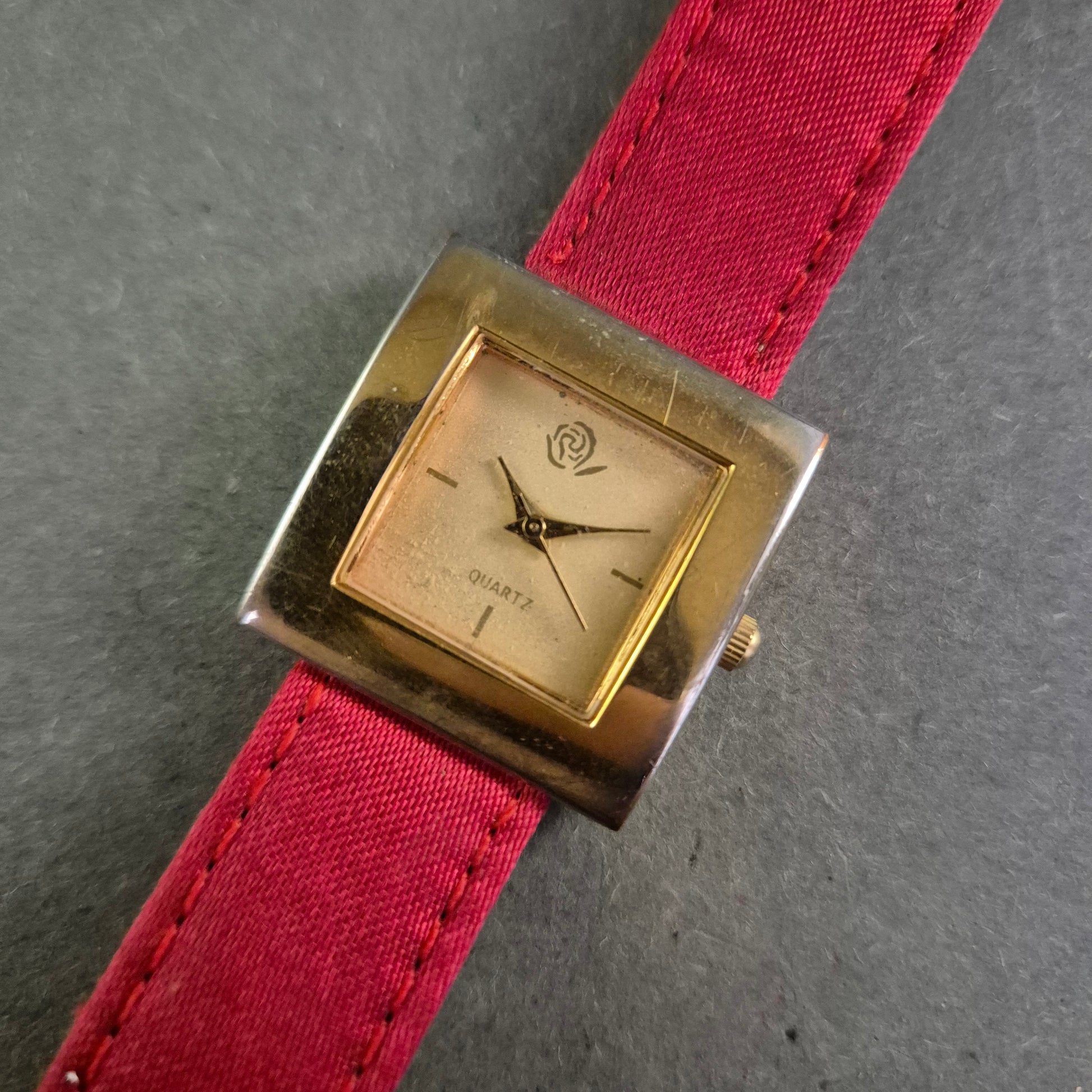 Schlichte Damenarmband Uhr mit rotem Band – Quadratisches Gehäuse