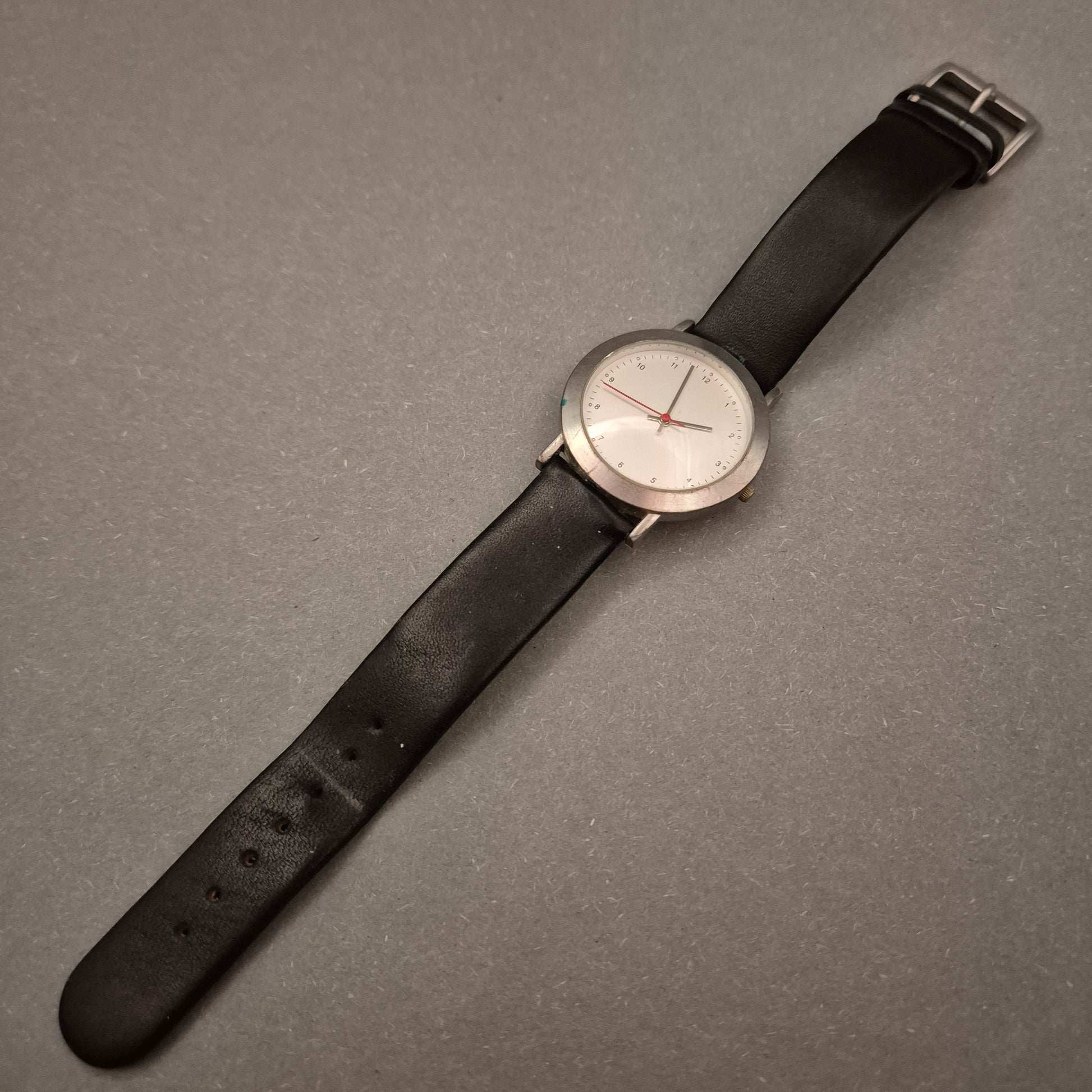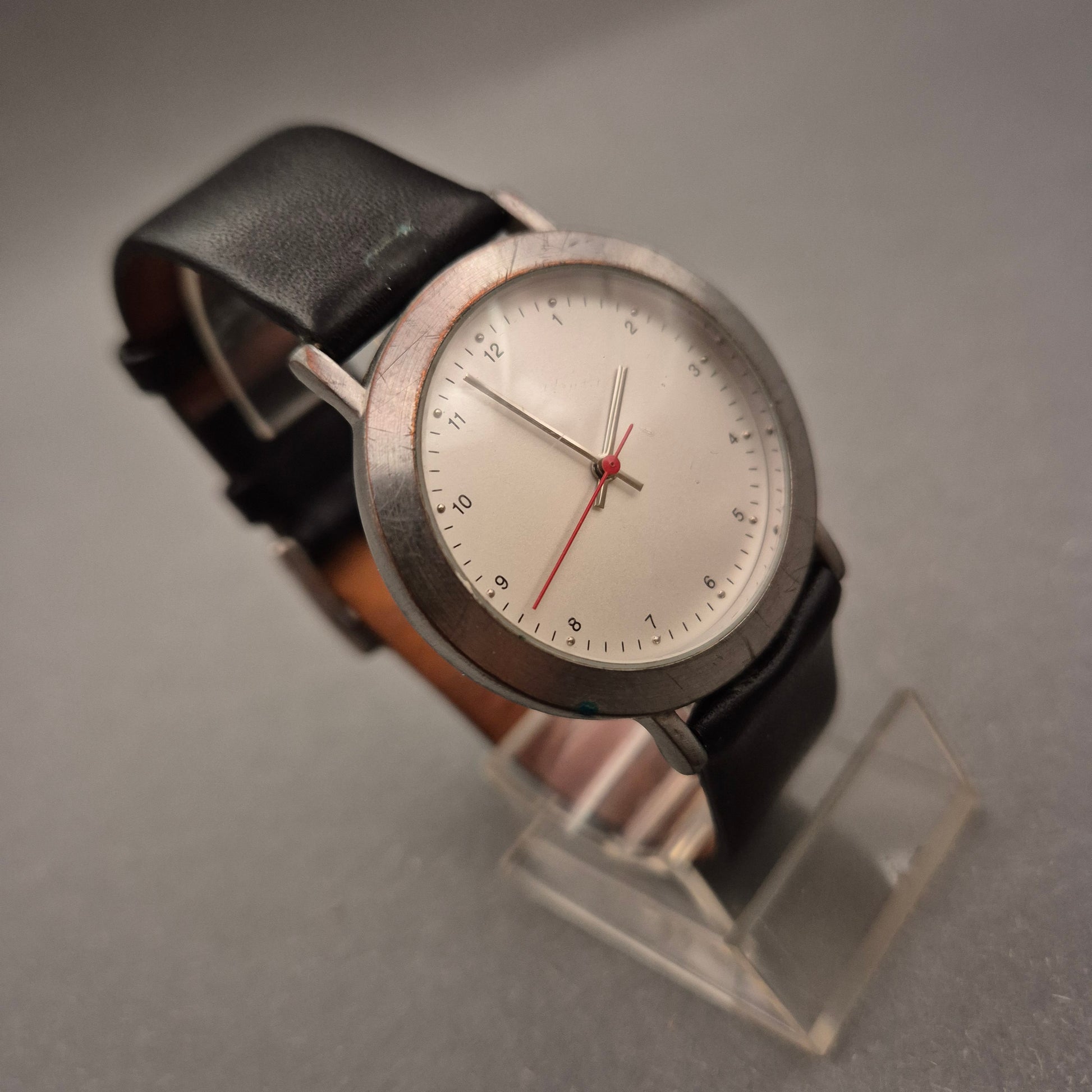 Schlichte Herren Uhr – Weißes Zifferblatt mit rotem Akzent