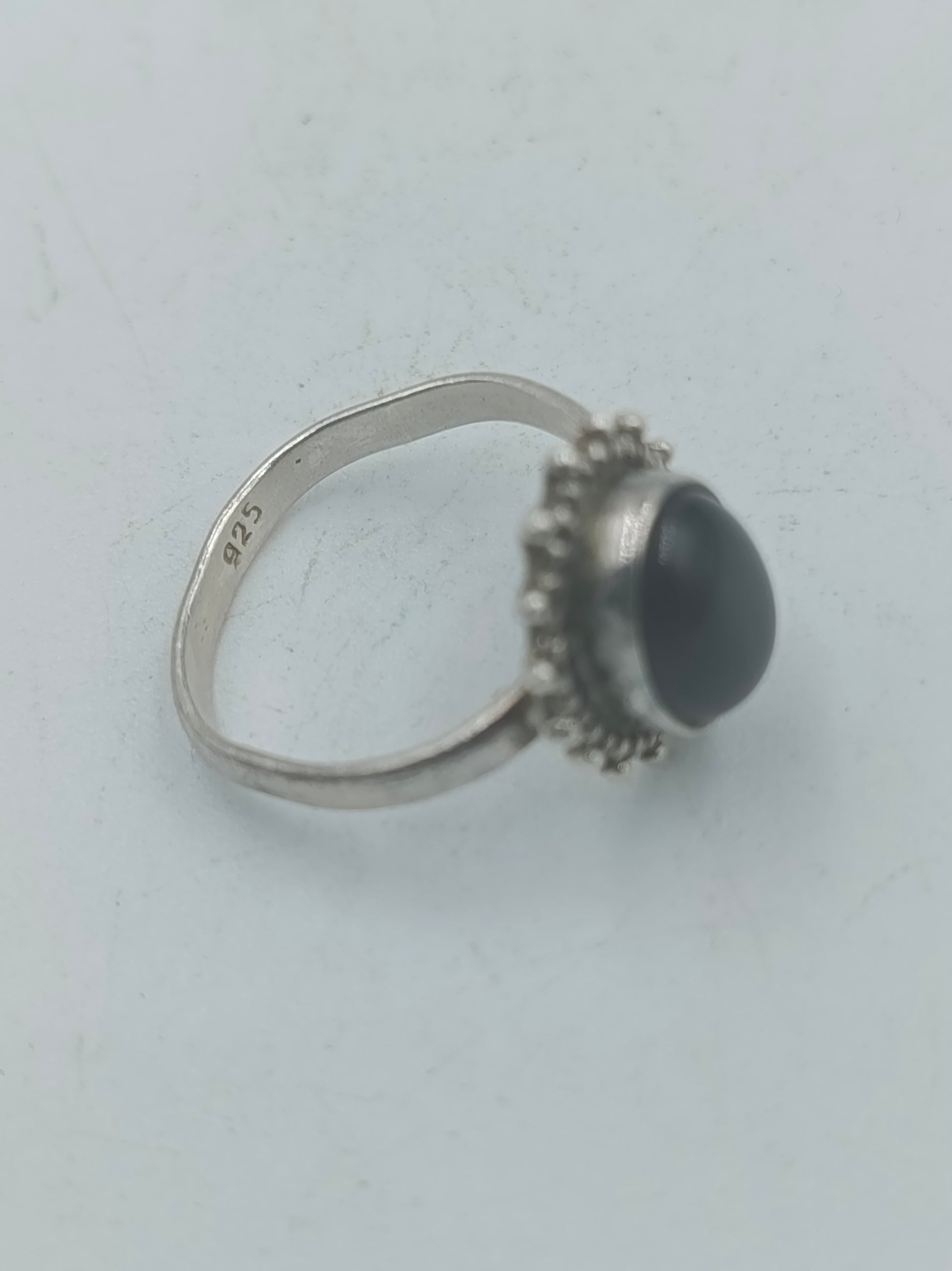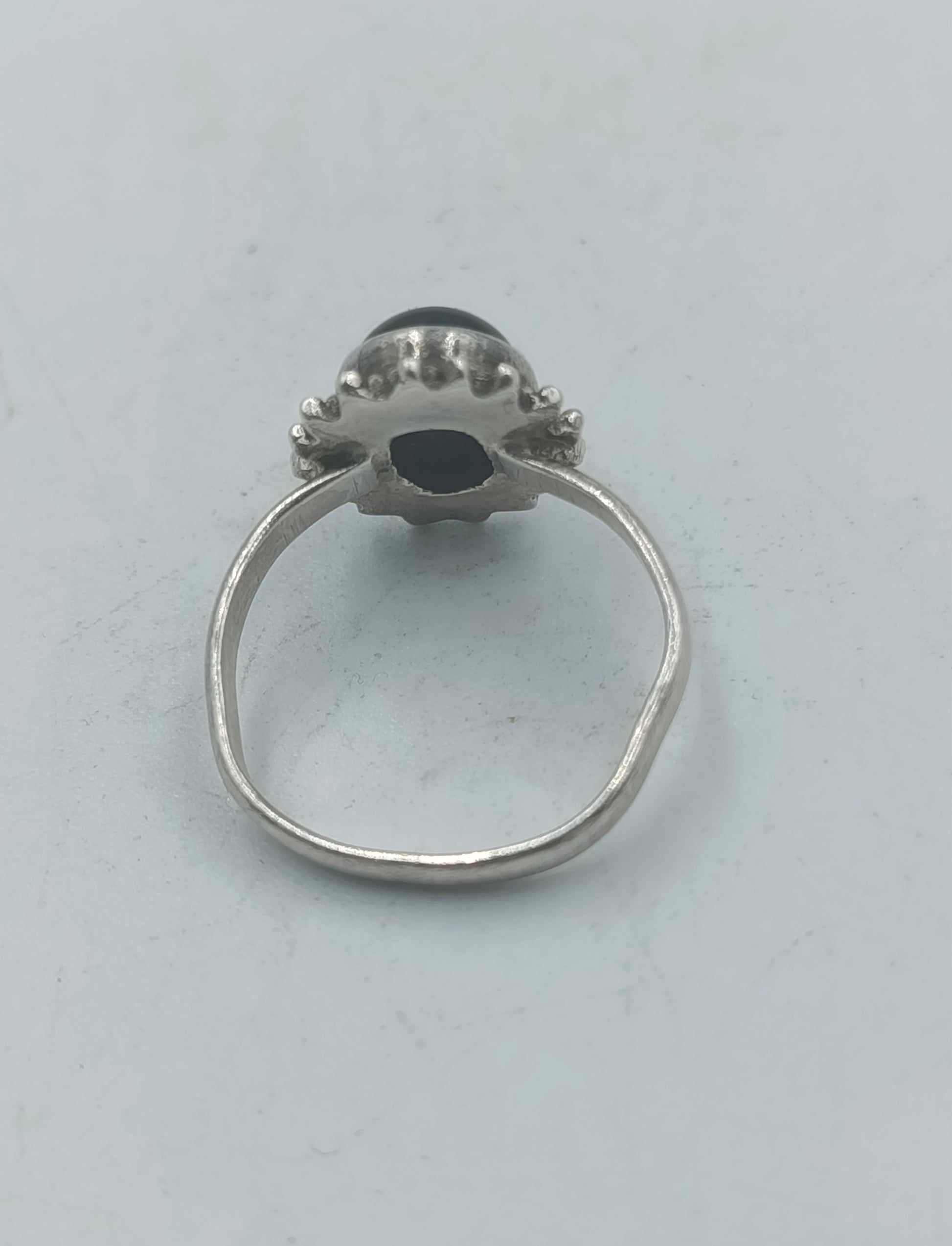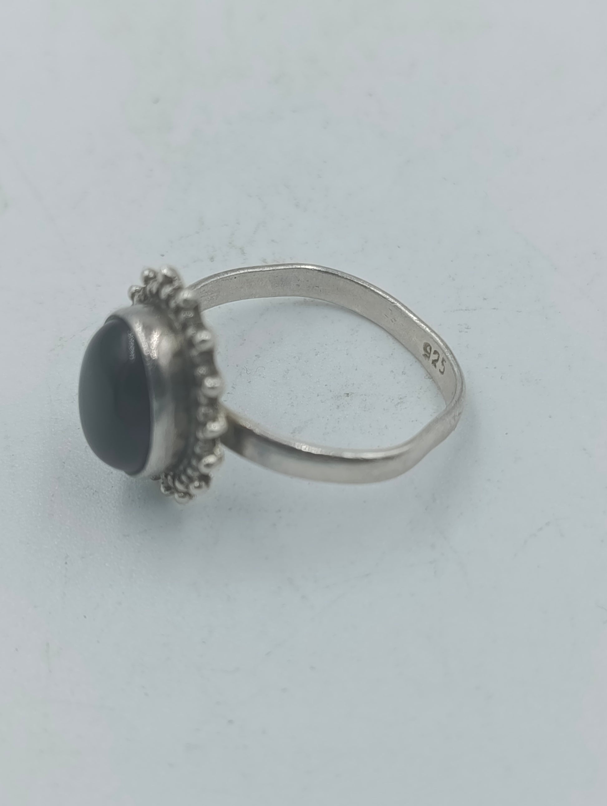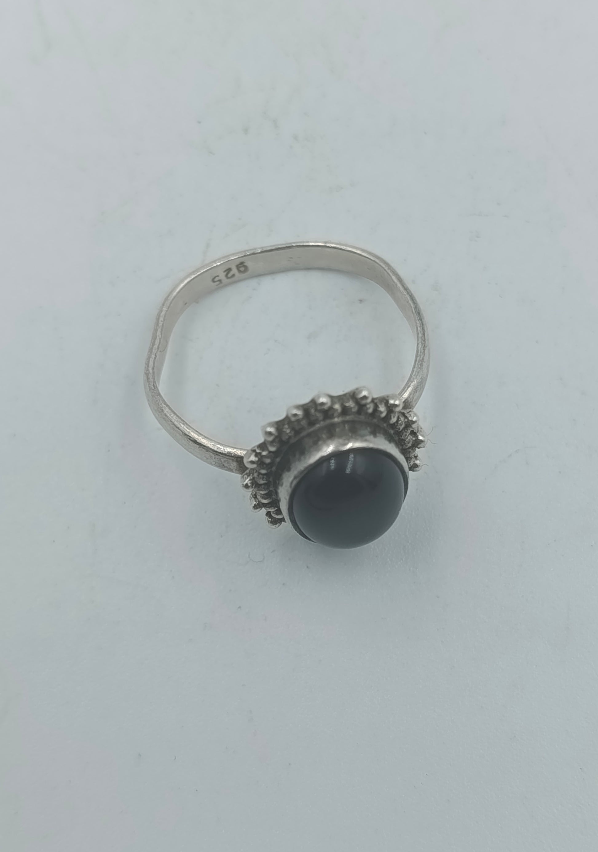 Schlichter 925 Silber Ring mit schwarzem Cabochonstein Zeitloses Design