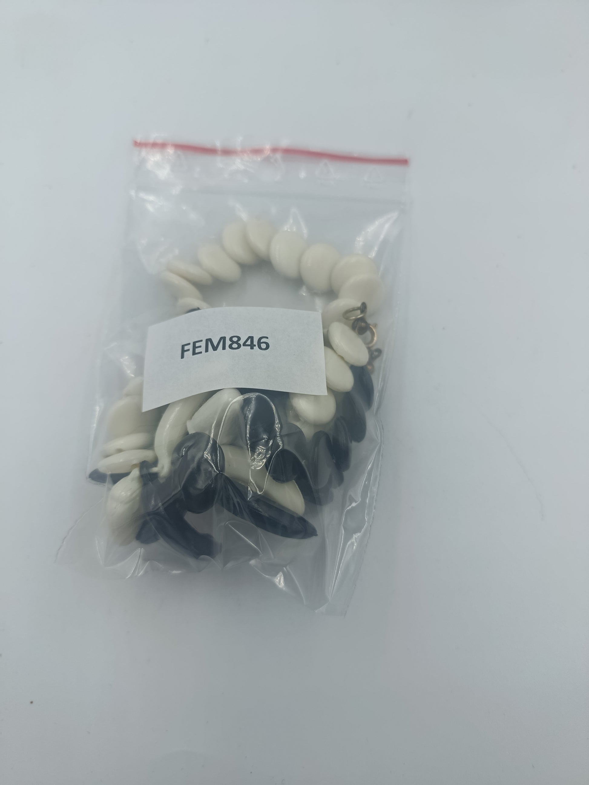 Markante Statementkette im klassischen Schwarz Weiß Design, bestehend aus großen runden Perlen. Der kontrastreiche Farbverlauf und das auffällige Mittelstück verleihen ihr einen modernen Retro Look, der perfekt zu eleganten oder schlichten Outfits passt.