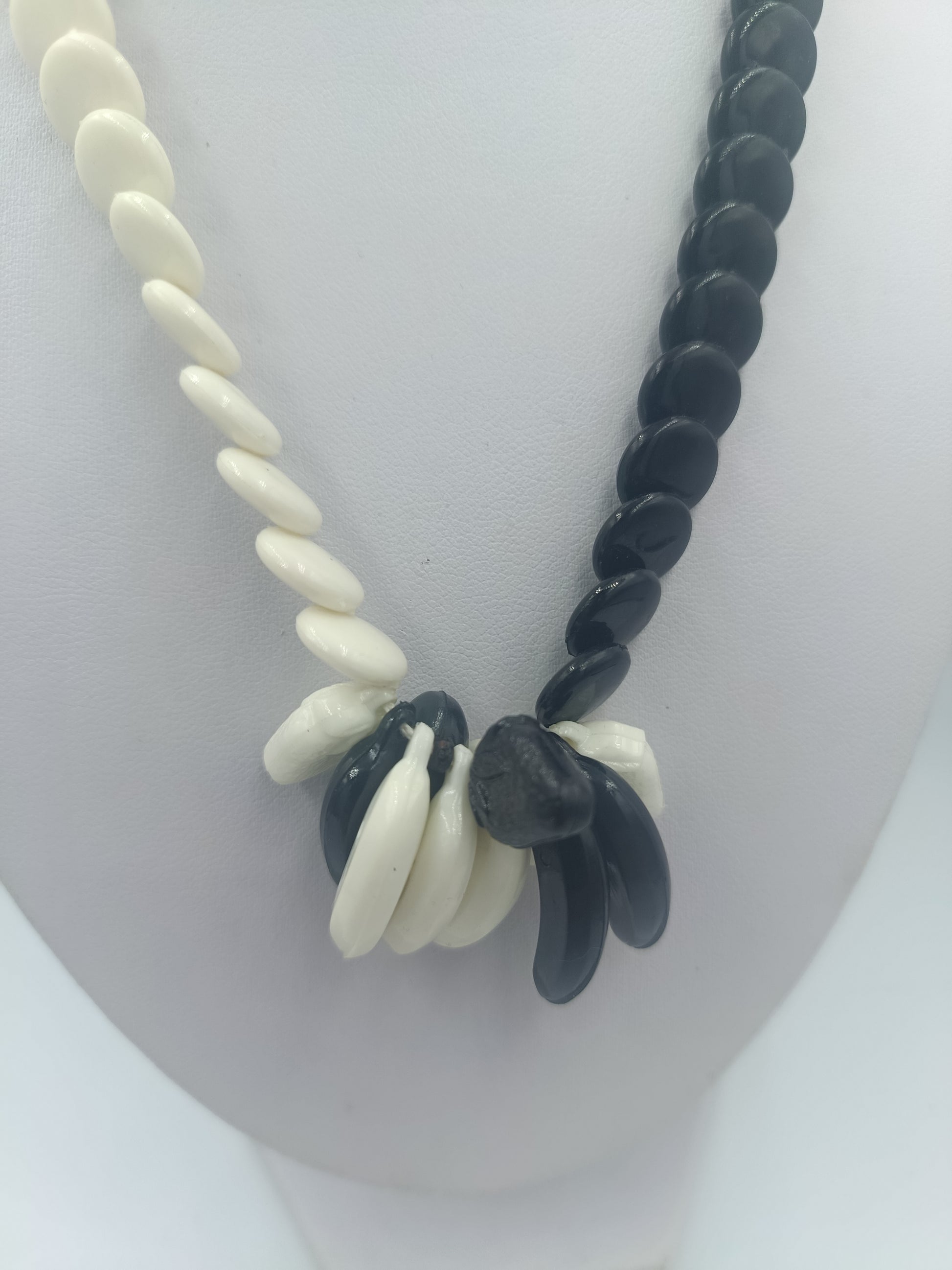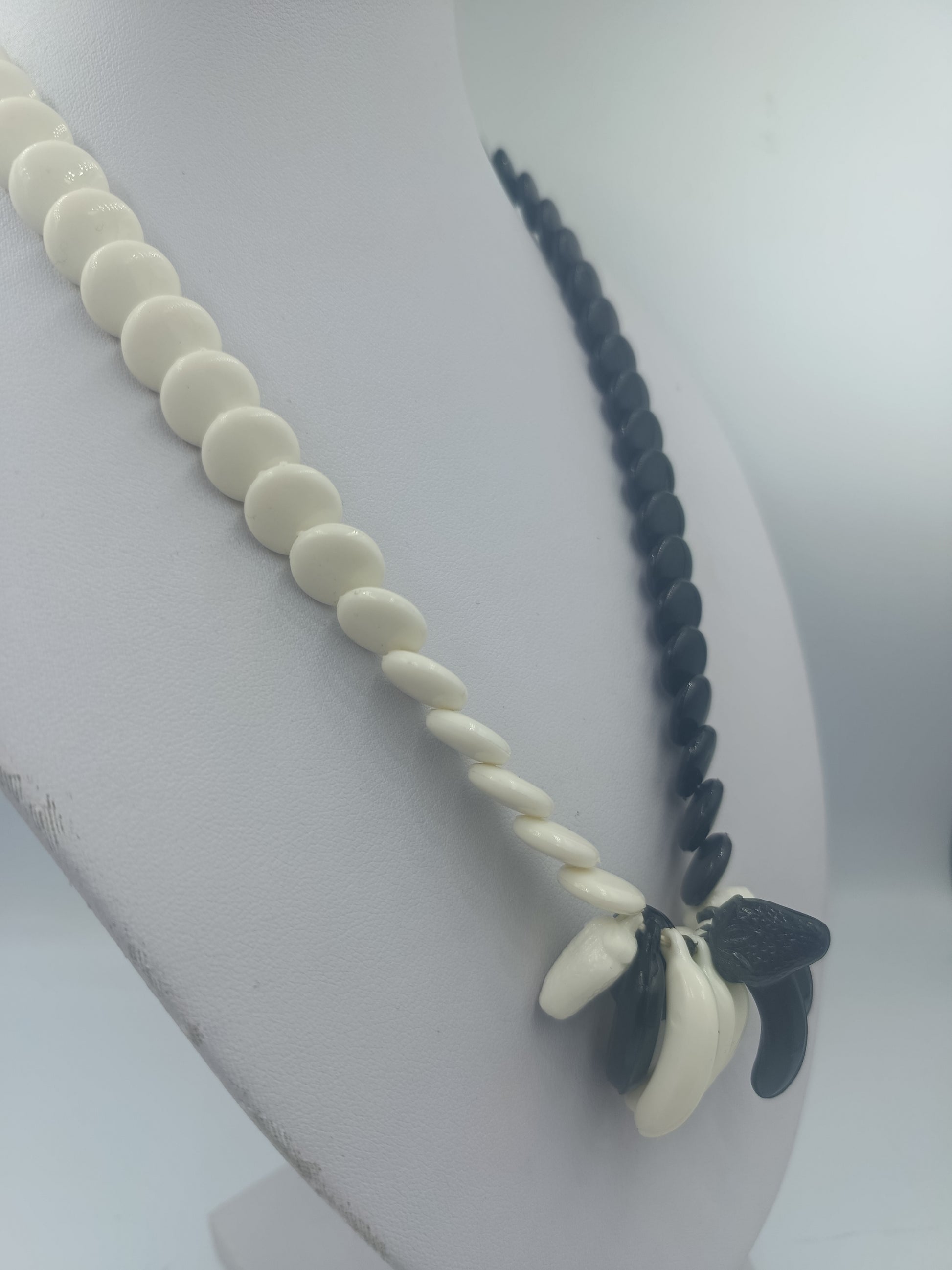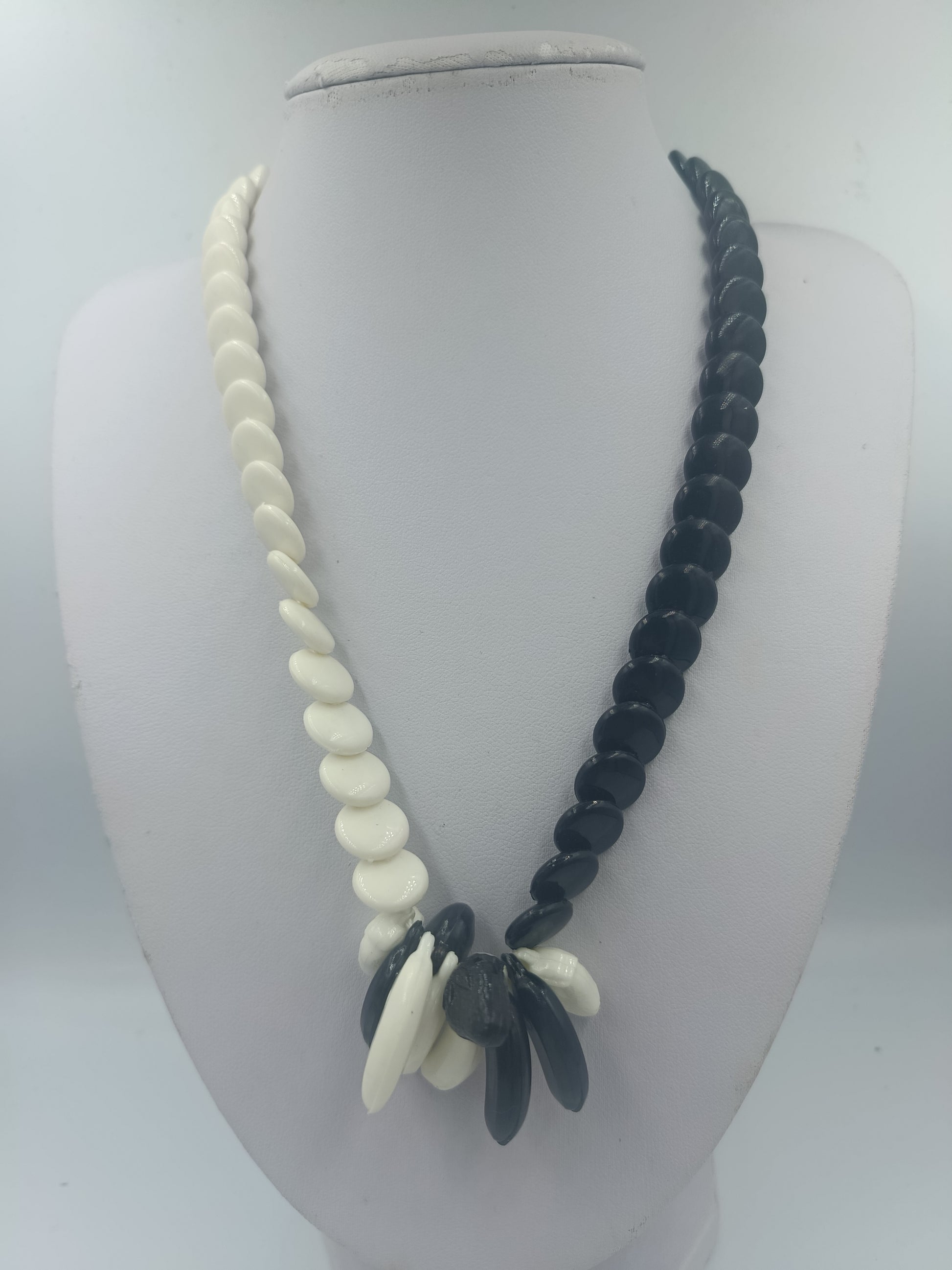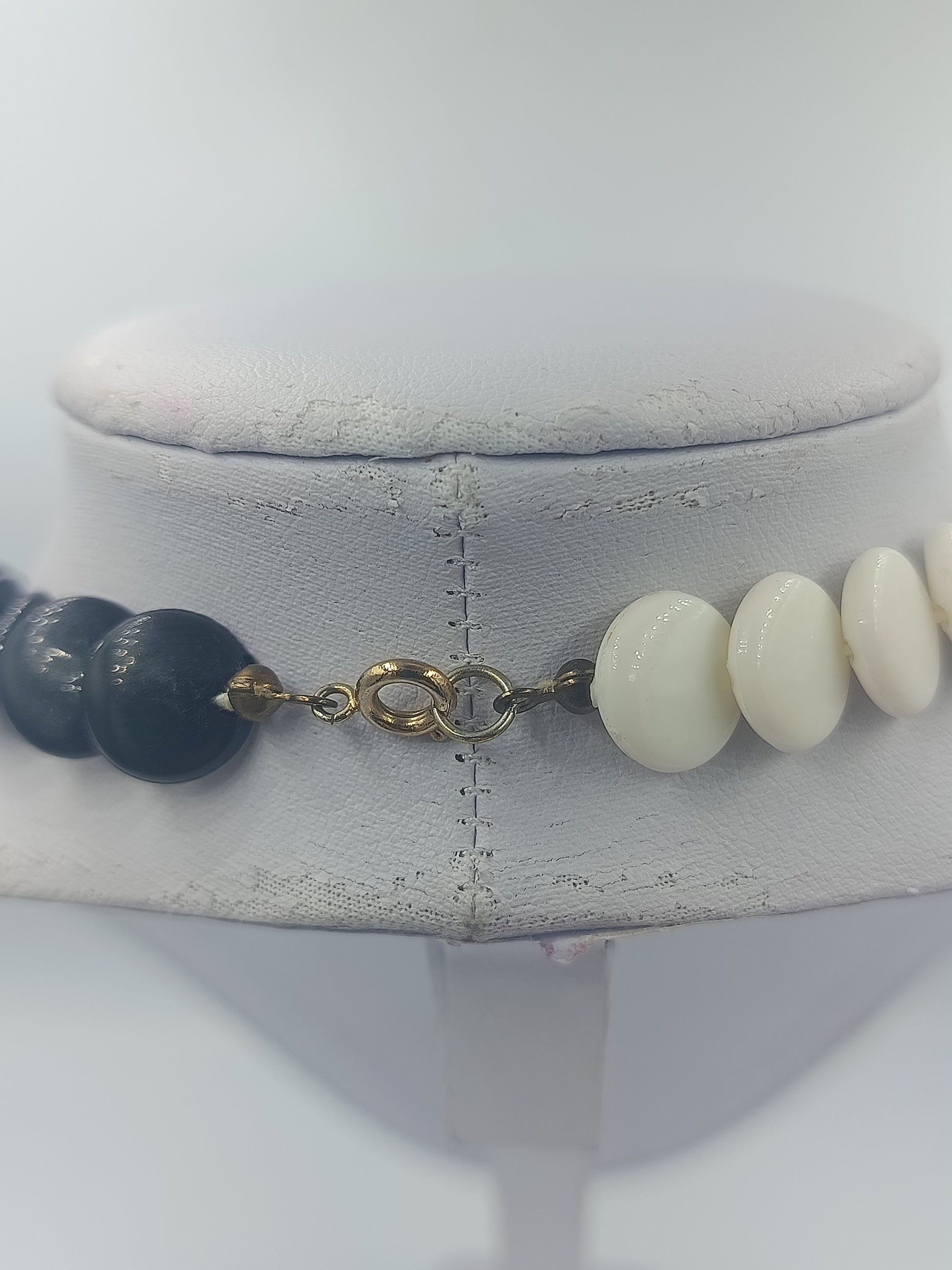 Schwarz weiße Statementkette mit runden Perlen im Retro Stil