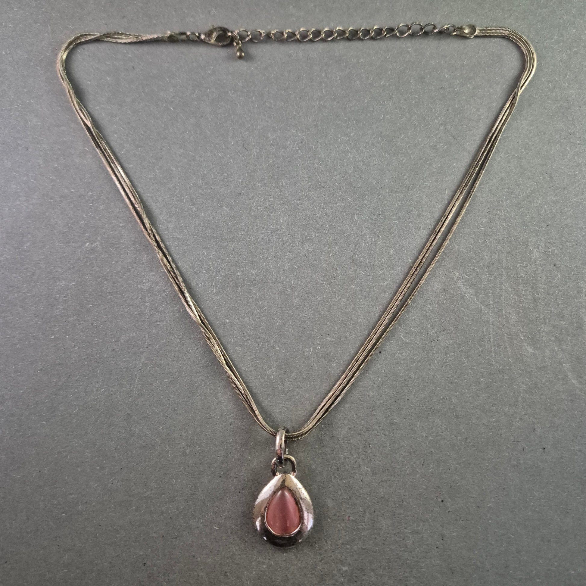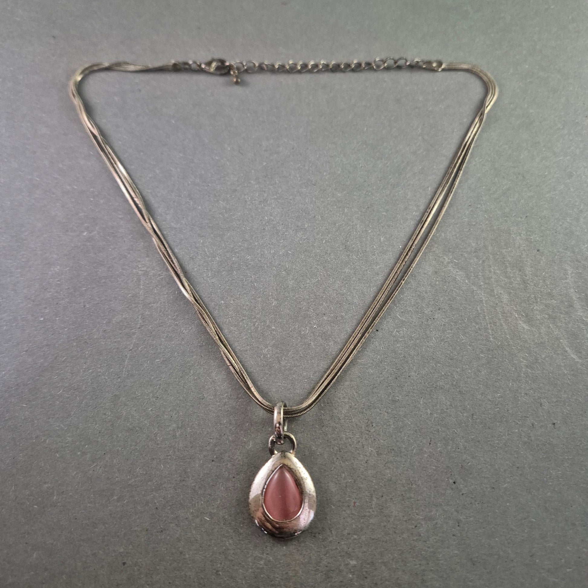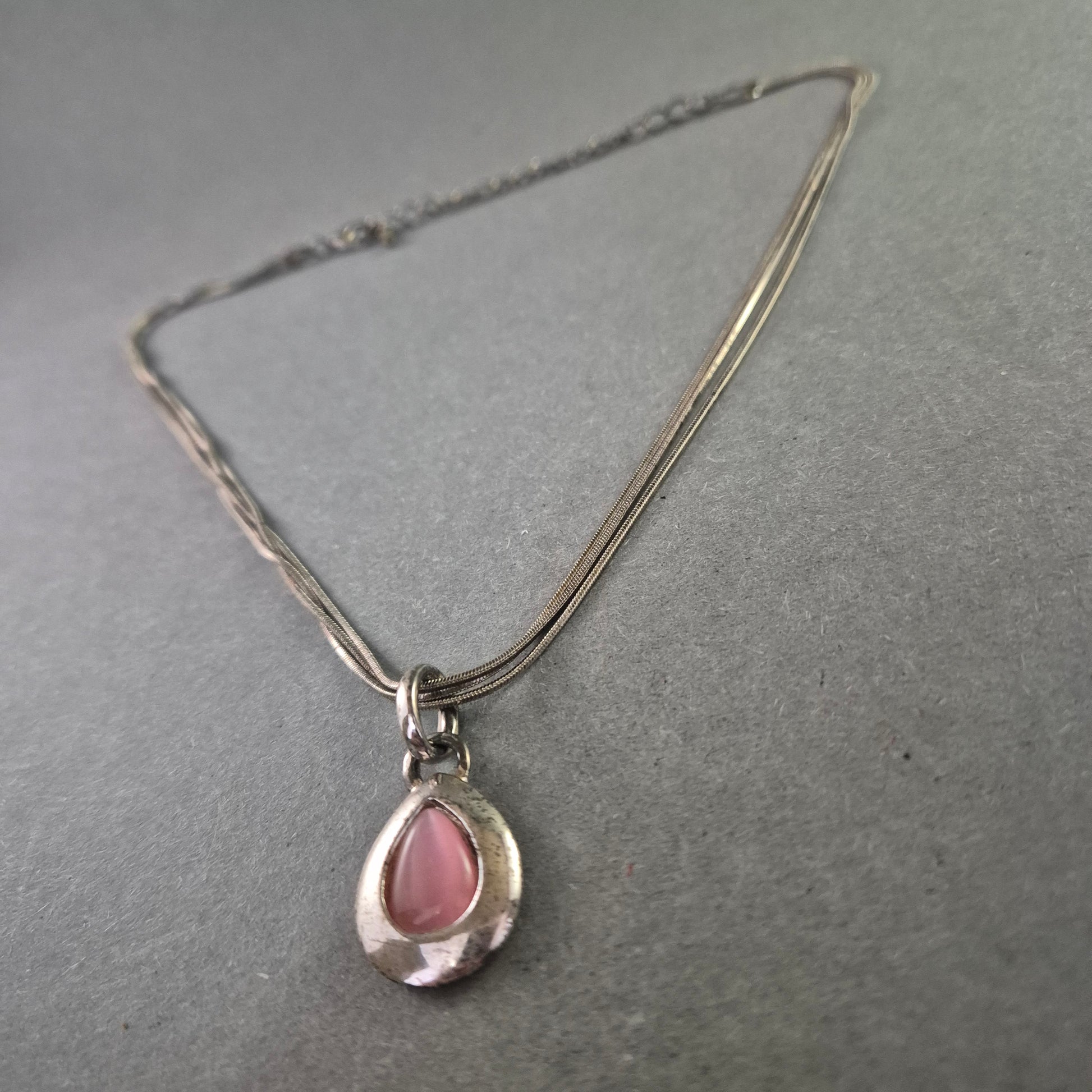 Silberfarbene Halskette mit rosa Tropfenanhänger – Zart und feminin