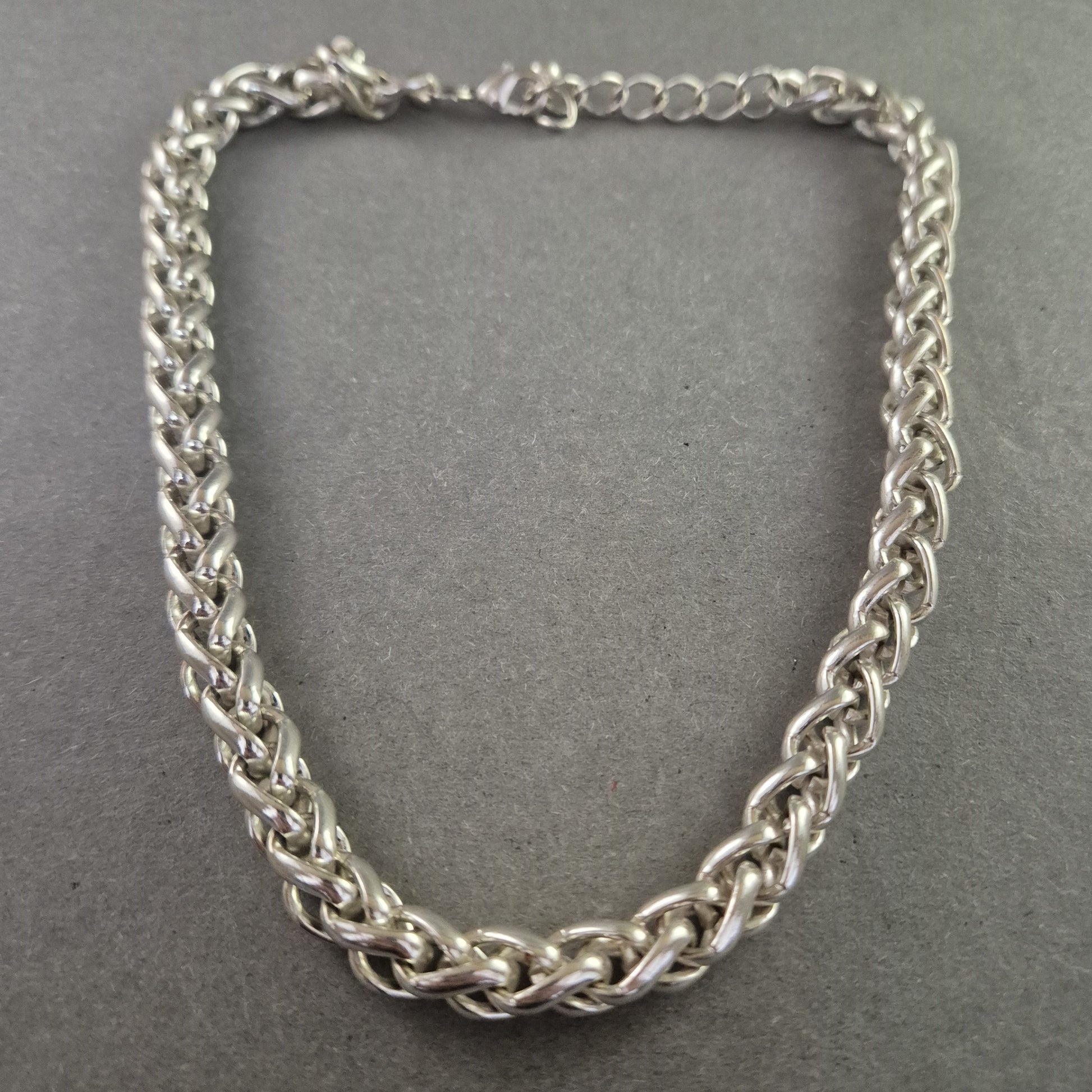 Diese silberfarbene Herrenpanzerkette besticht durch ihr dichtes, geflochtenes Gliederdesign, das einen robusten und modernen Look verleiht. Mit ihrem markanten Stil eignet sich die Kette sowohl für legere Outfits als auch als auffälliges Accessoire zu besonderen Anlässen. Der Karabinerverschluss sorgt für sicheren Halt und einfaches Anlegen.