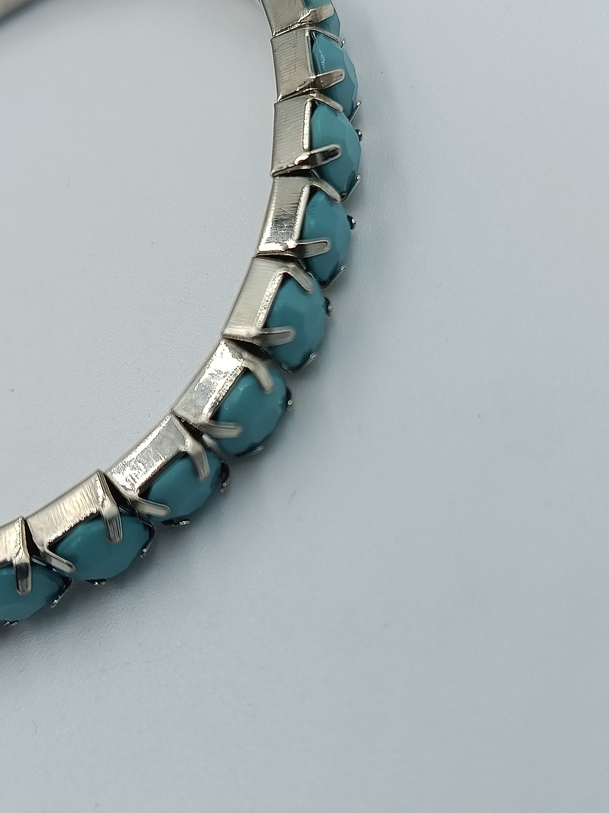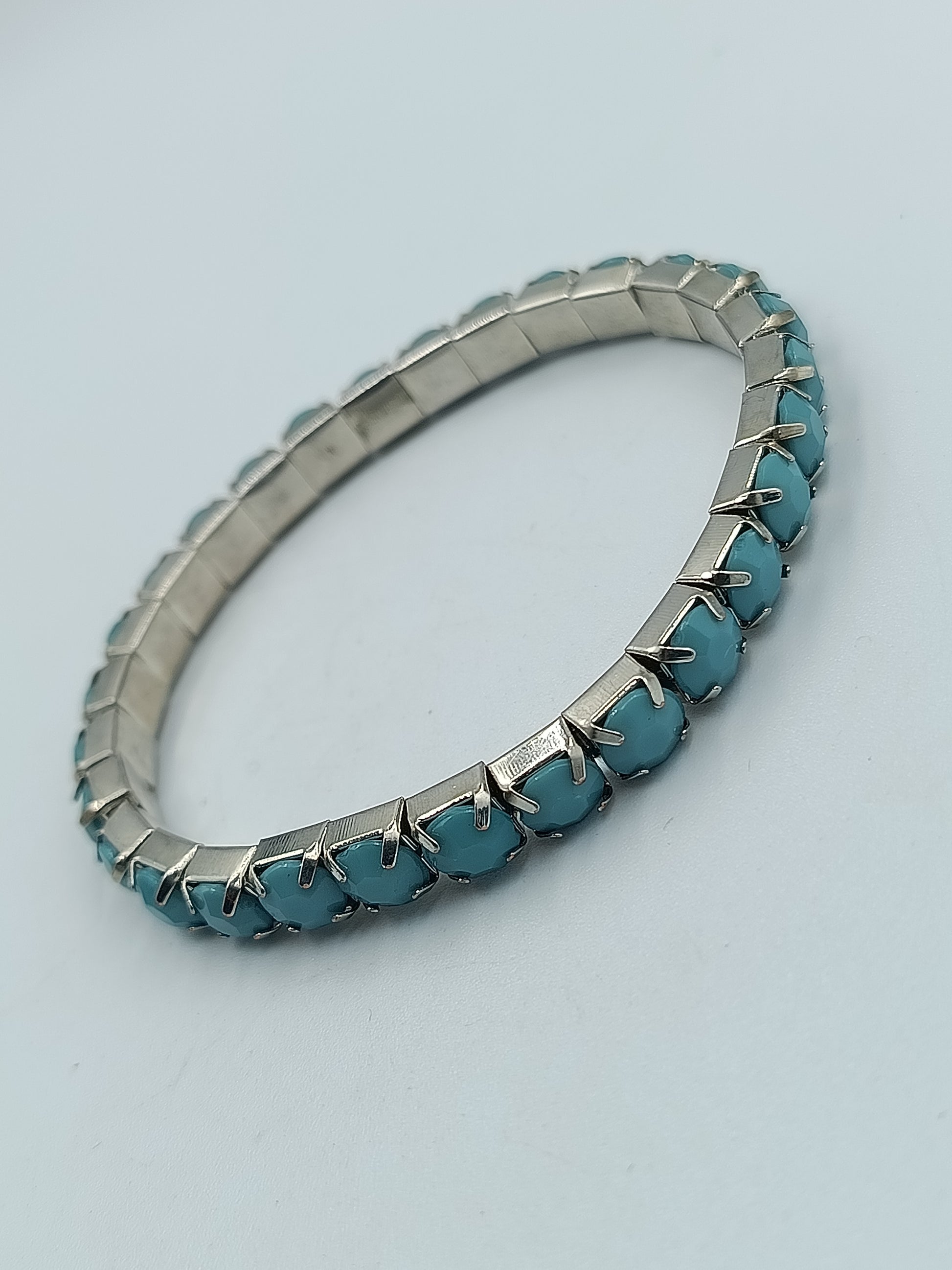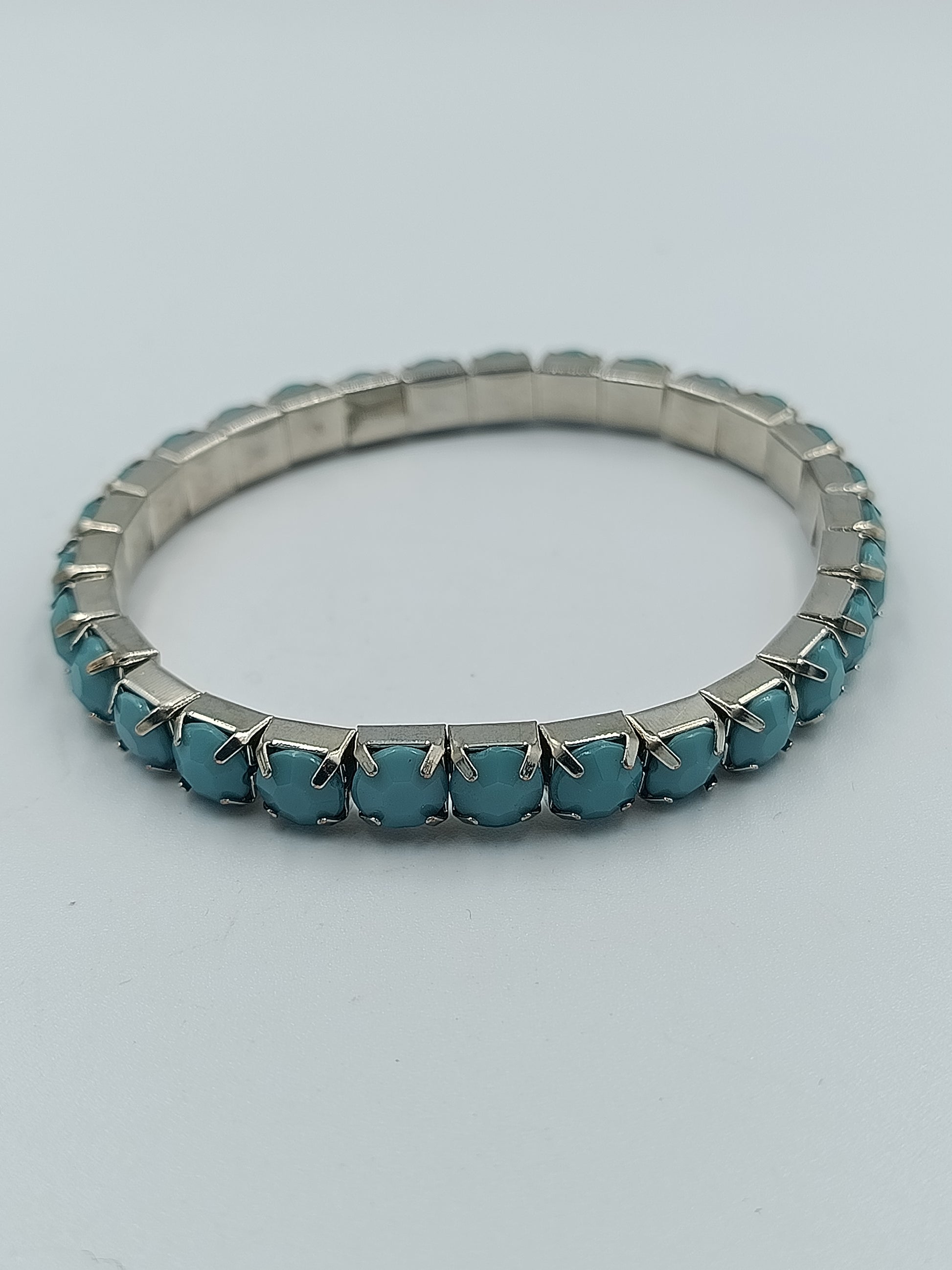 Silberfarbenes Stretcharmband mit türkisfarbenen Steinen