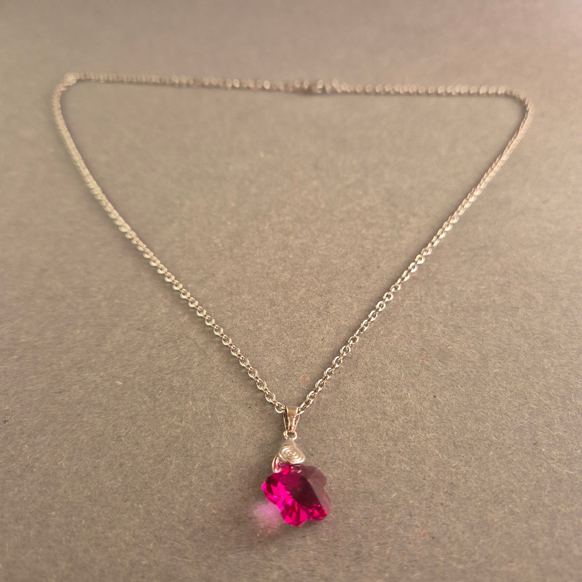 Silberne Halskette mit pinkem Kristallanhänger Feminines Design