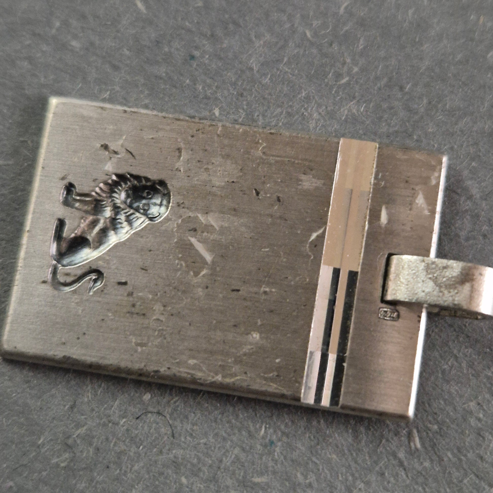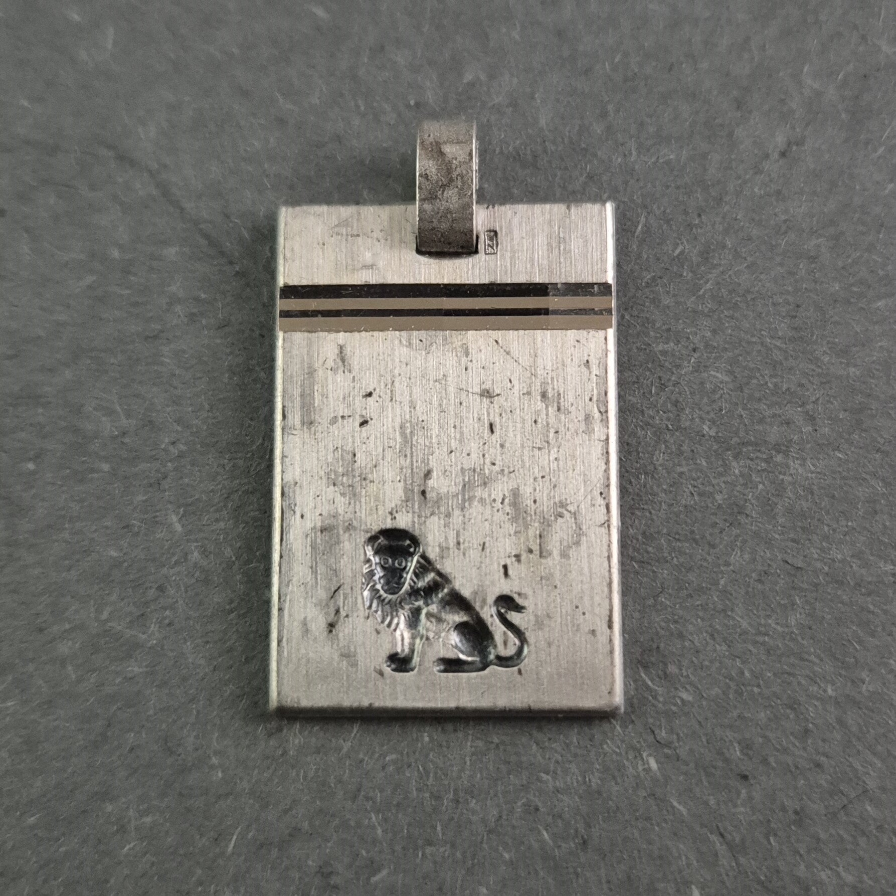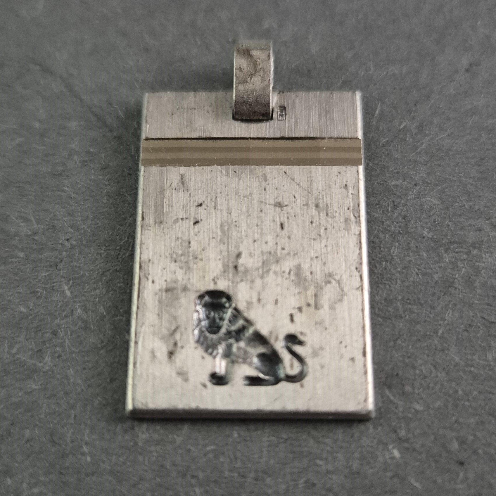 Dieser elegante Silberanhänger besticht durch sein minimalistisches rechteckiges Design und eine feine Gravur eines stilvollen Löwenmotivs. Die klare Linienführung und die schlichte Form machen ihn zu einem zeitlosen Accessoire für jeden Anlass. Das dezente Detail mit einer glänzenden Linie verleiht dem Anhänger eine besondere Raffinesse.
