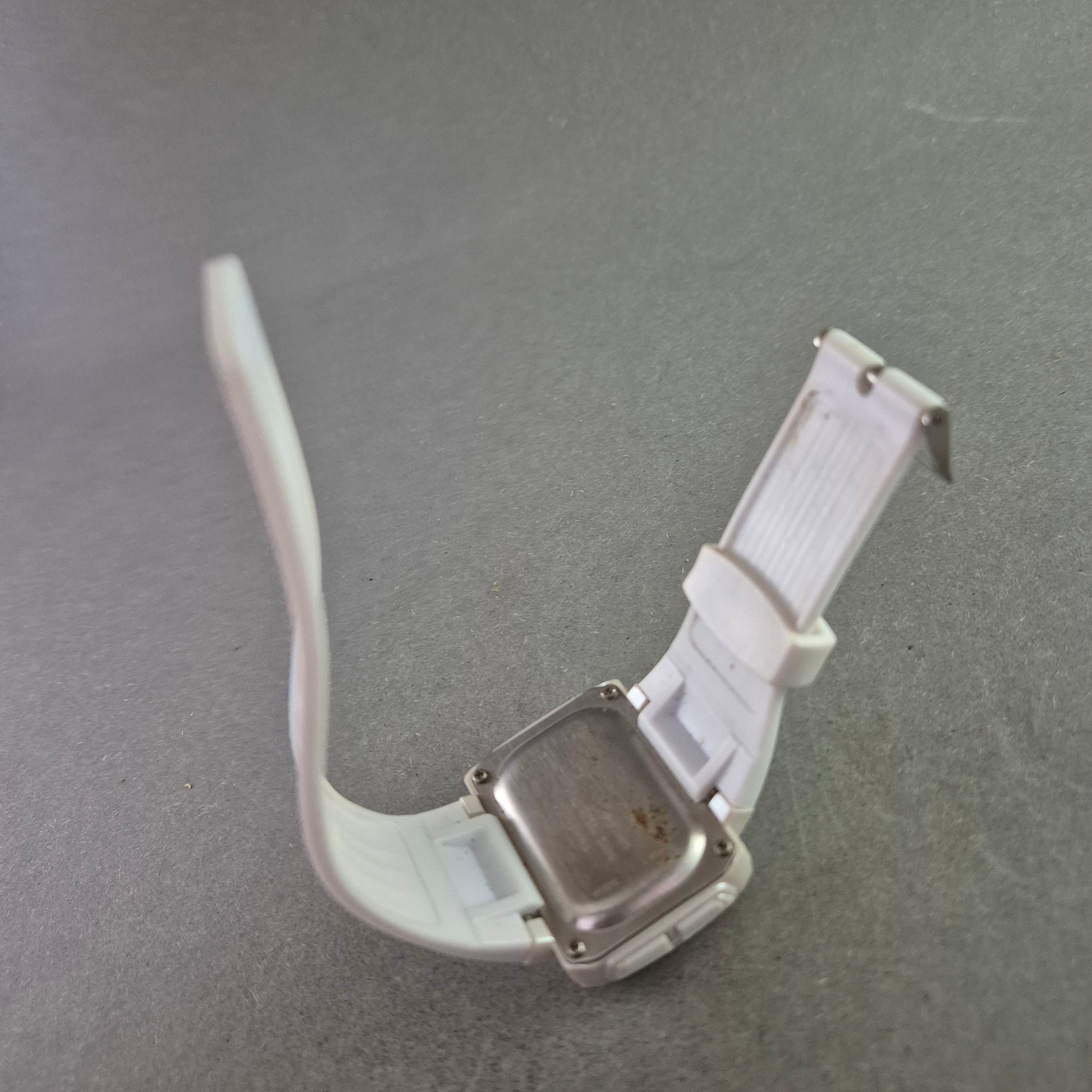 • Komfortables und flexibles weißes Silikonarmband.