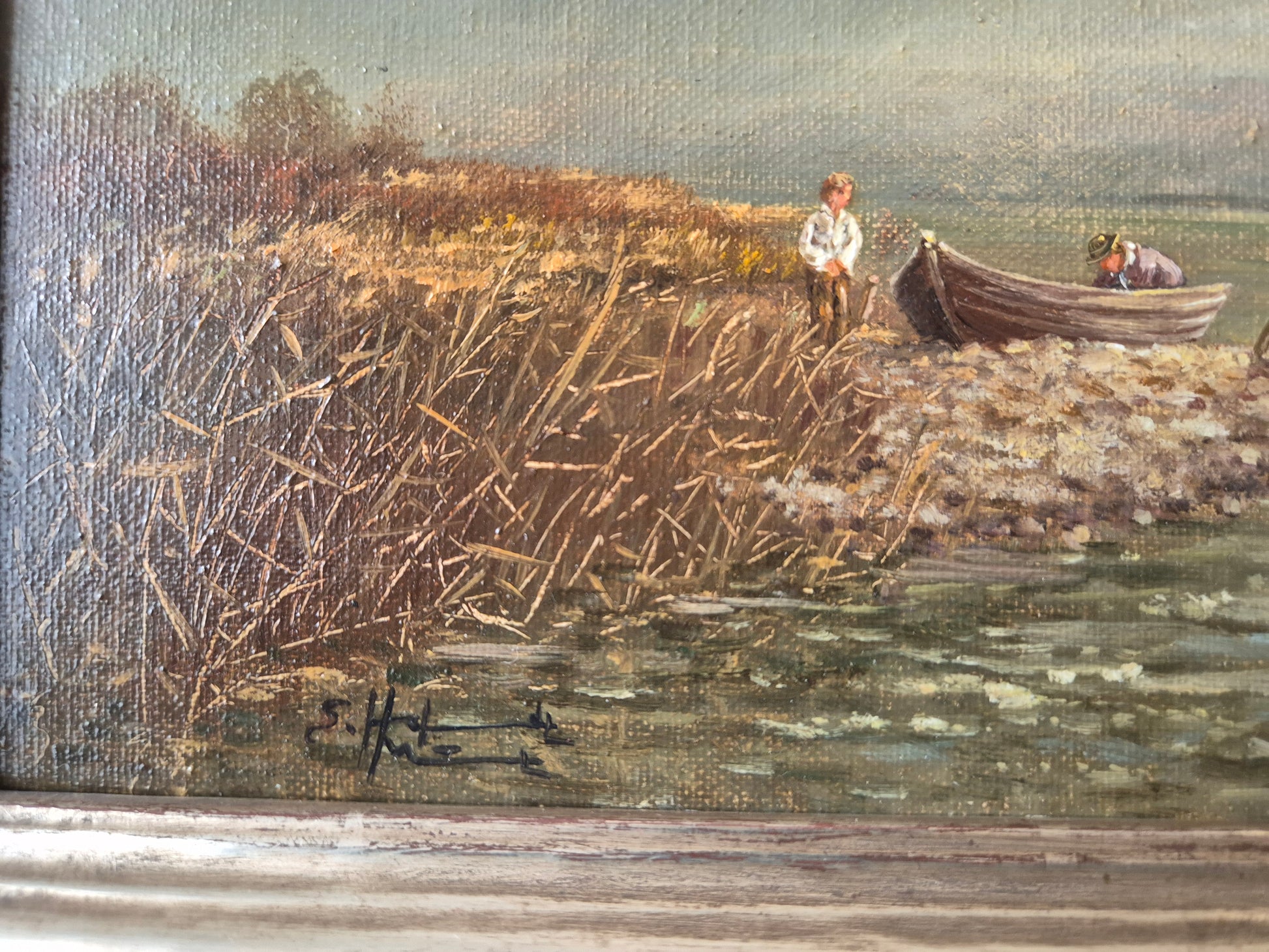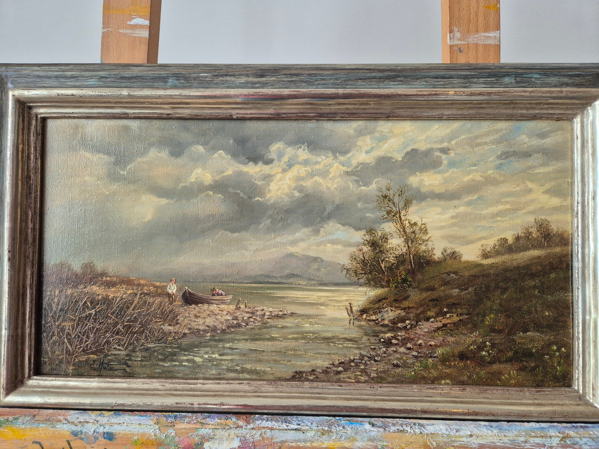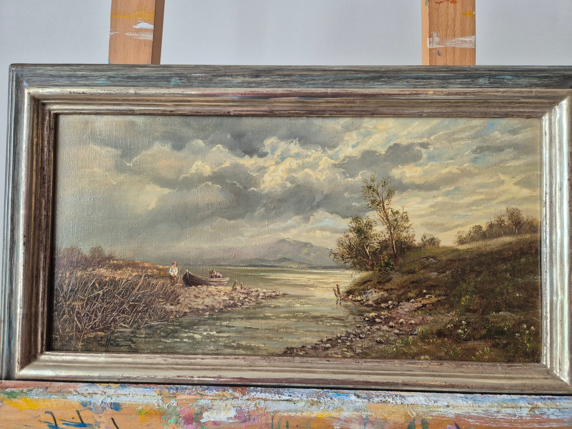 Europäische Schule (XX) Ölgemälde Handsigniert Landschaft mit See