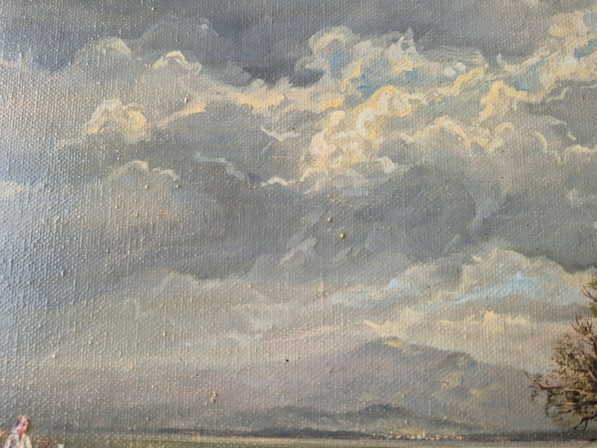 Europäische Schule (XX) Ölgemälde Landschaft mit Blick auf einen See