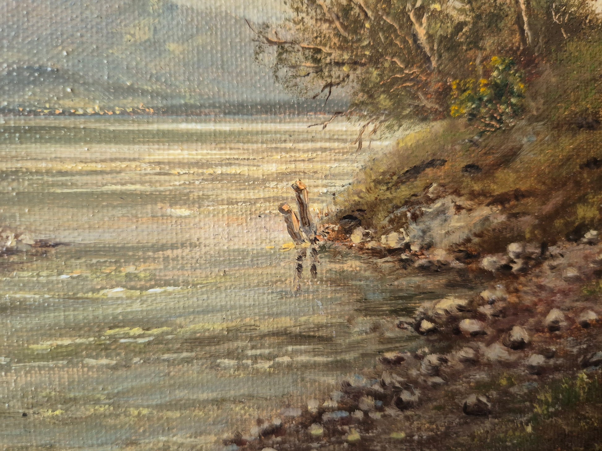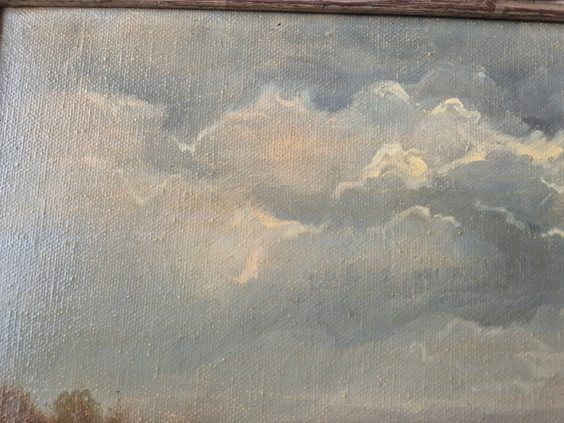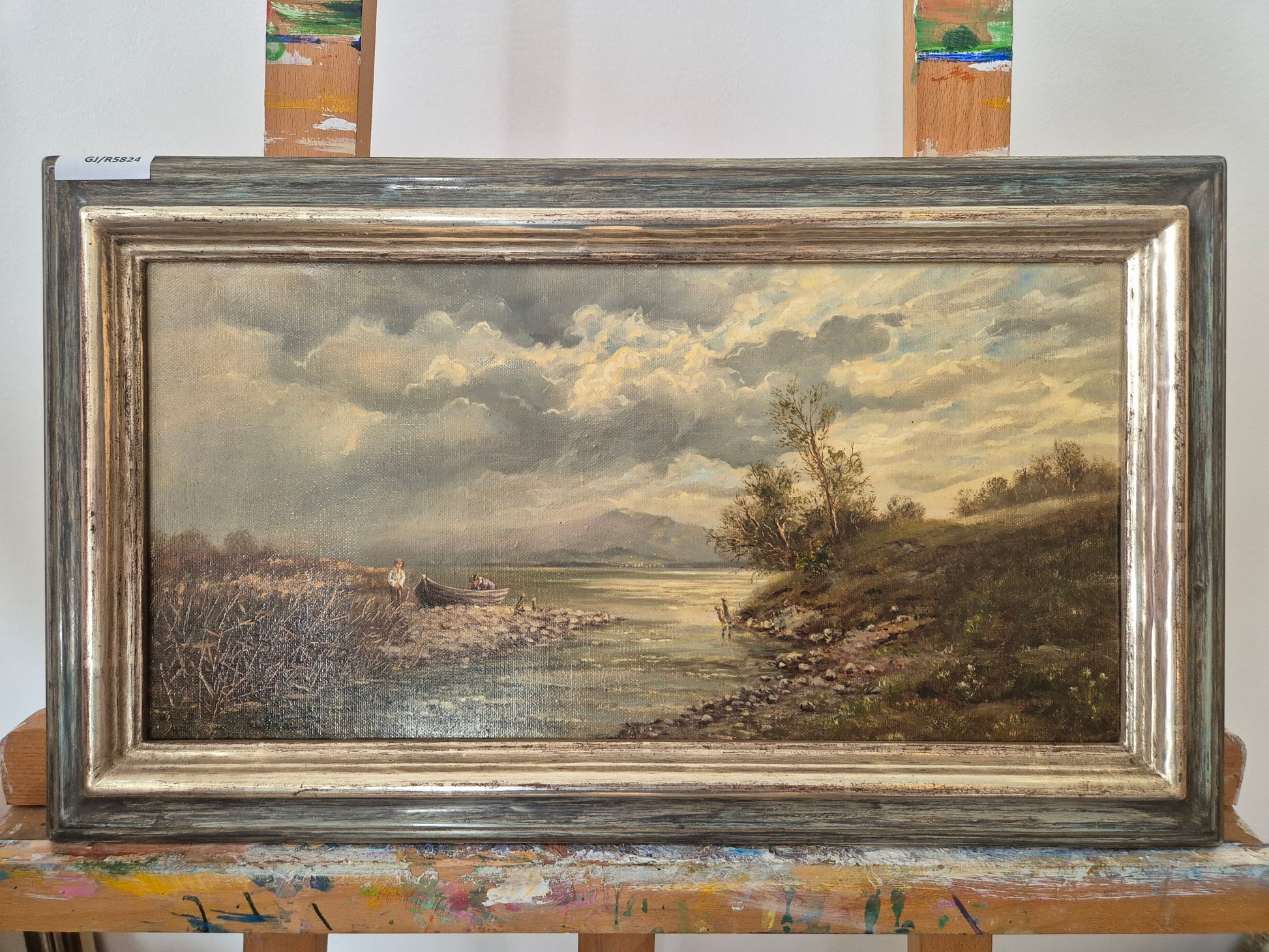 Dieses stimmungsvolle Ölgemälde des Künstlers zeigte eine ruhige Landschaftsszene, meisterhaft in Öl auf Holz ausgeführt. Die Komposition überzeugt durch ihre harmonische Farbgestaltung und eine atmosphärische Tiefe, die den Betrachter in die dargestellte Natur eintauchen lässt. Das Werk ist handsigniert und befindet sich in einem sehr guten Zustand. Der stilvolle Rahmen unterstreicht den klassischen Charakter des Gemäldes und macht es zu einem attraktiven Blickfang für Liebhaber traditioneller Landschaftsmalerei.