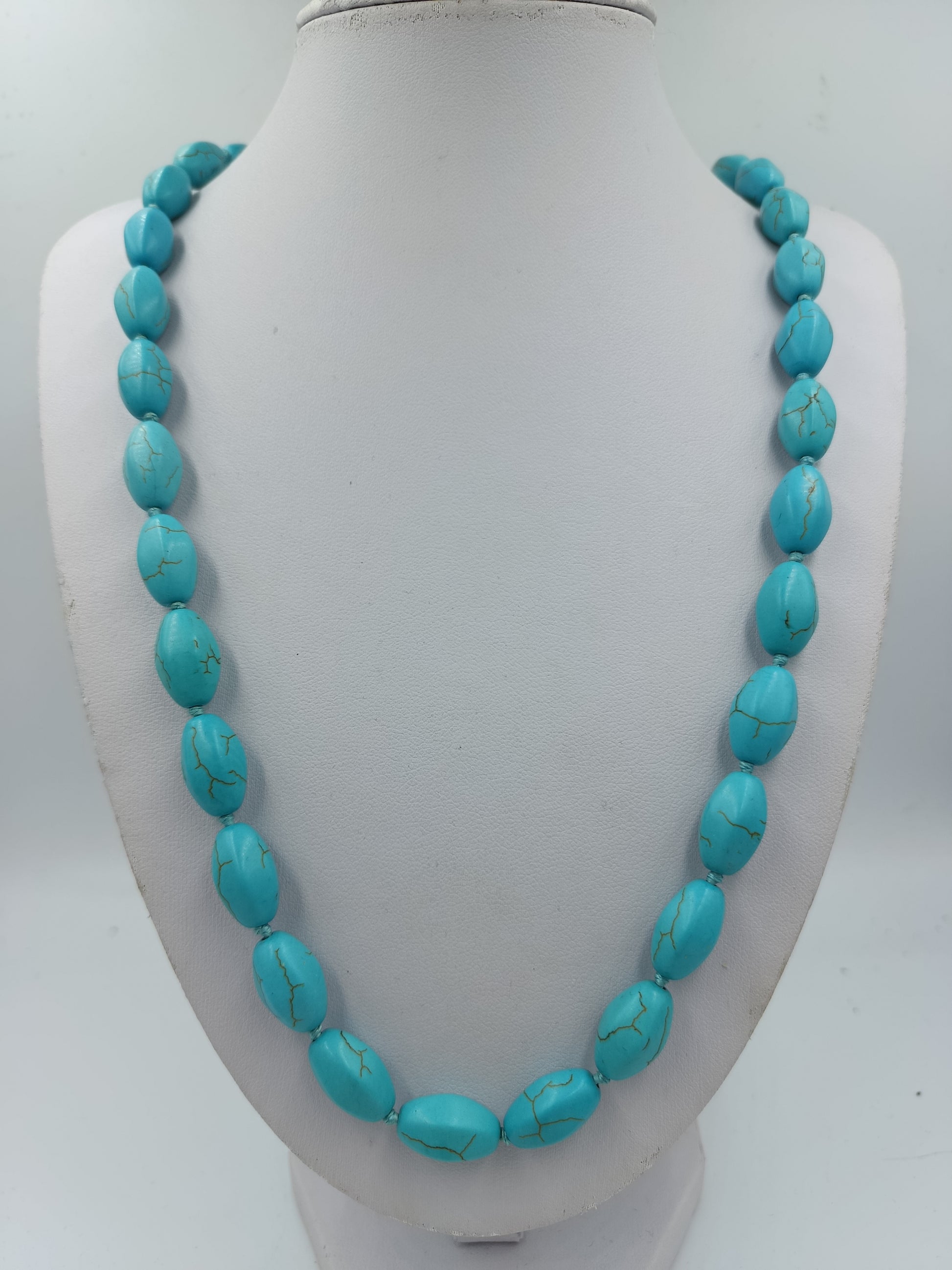 Türkise Halskette mit ovalen Schmucksteinen in kräftigem Blauton