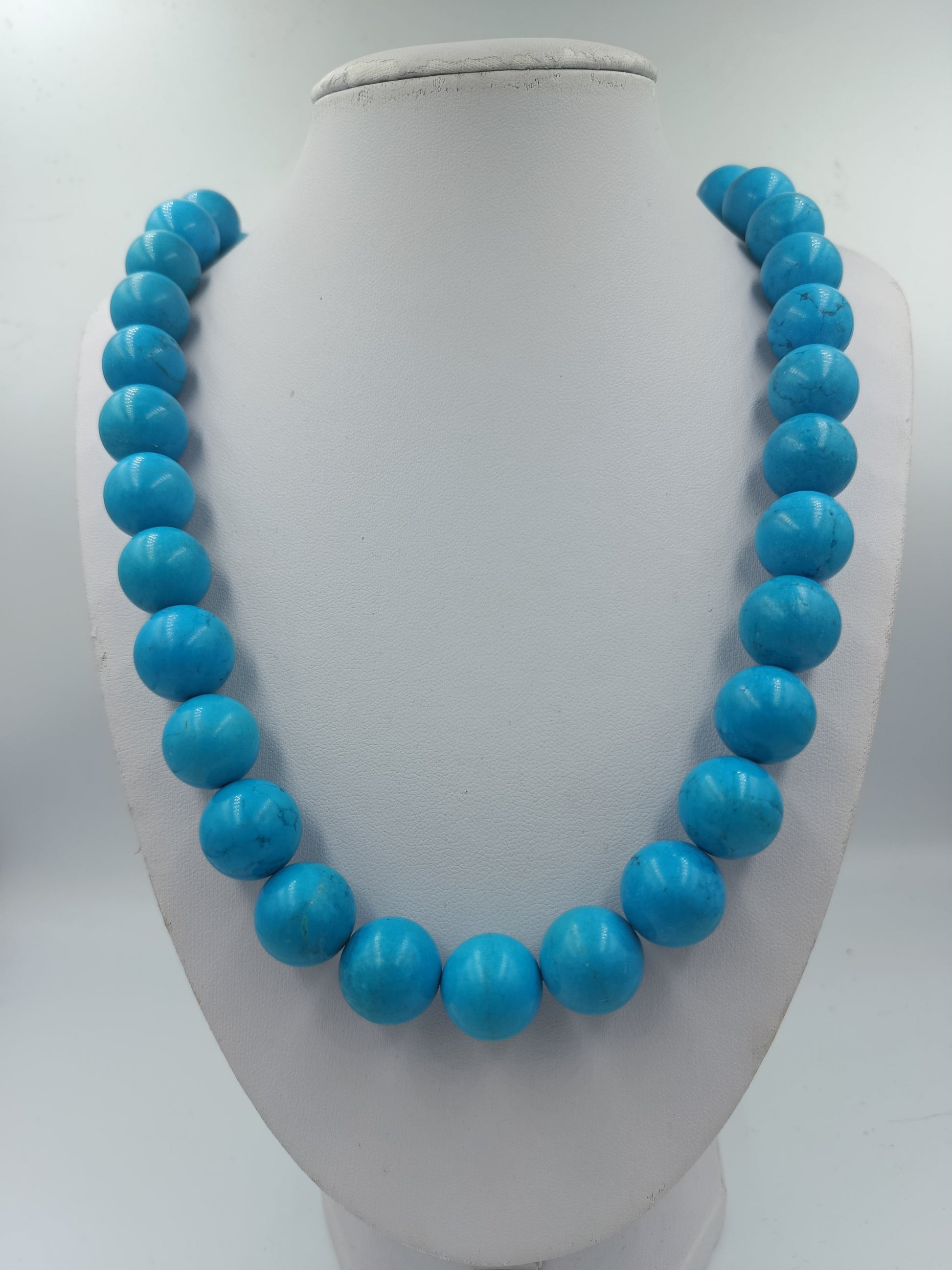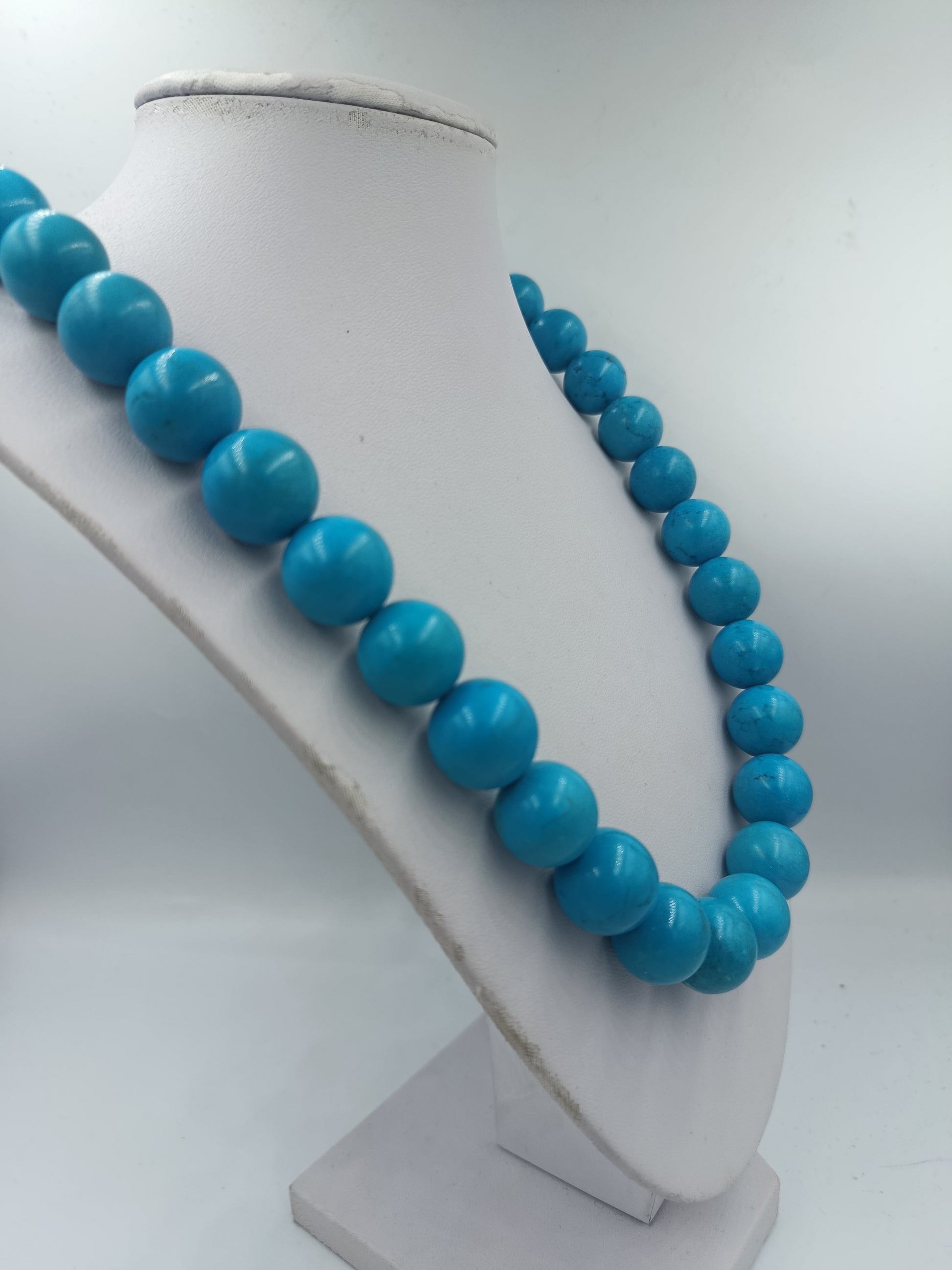 Türkisfarbene Kugelkette mit 925 Silber Verschluss Statement Halskette