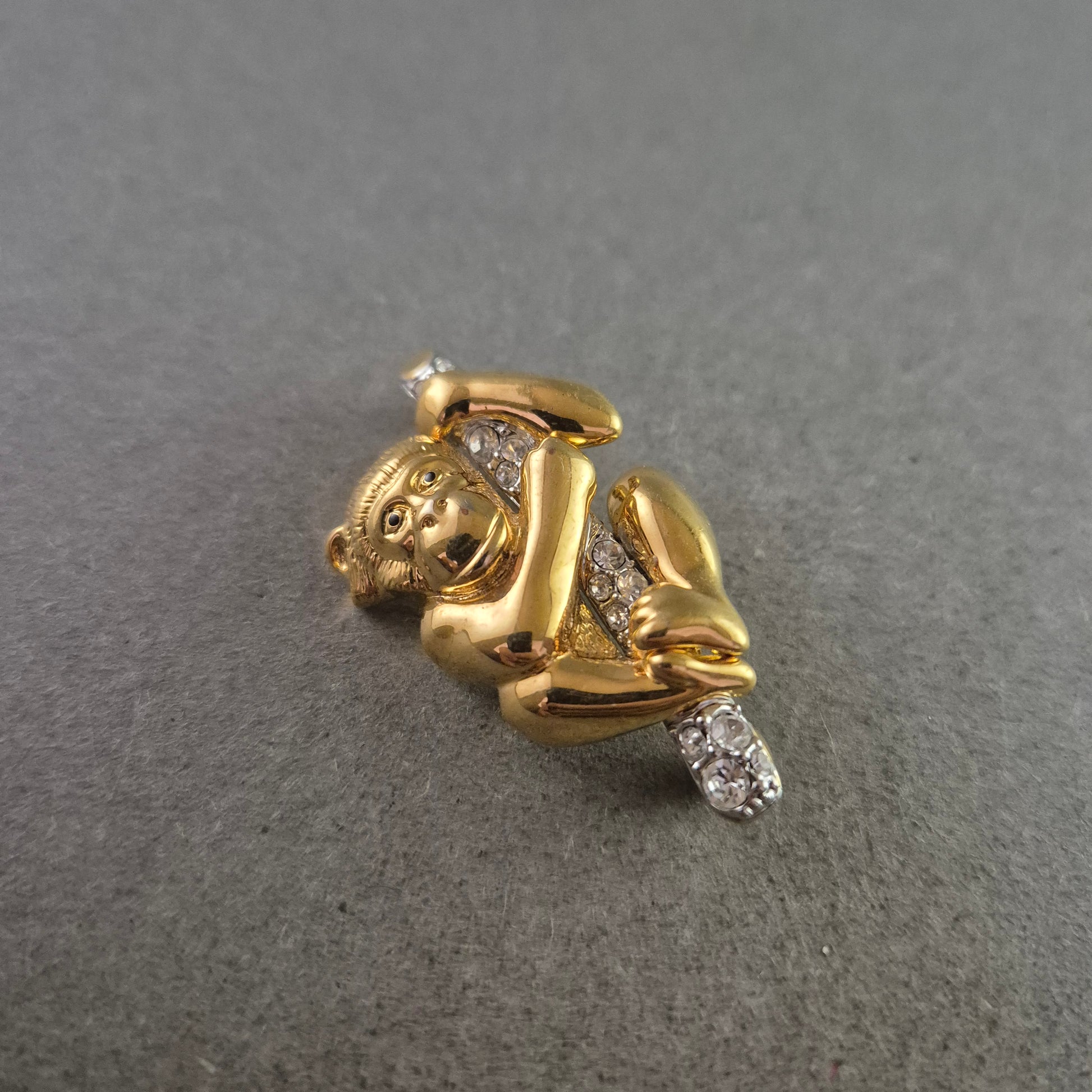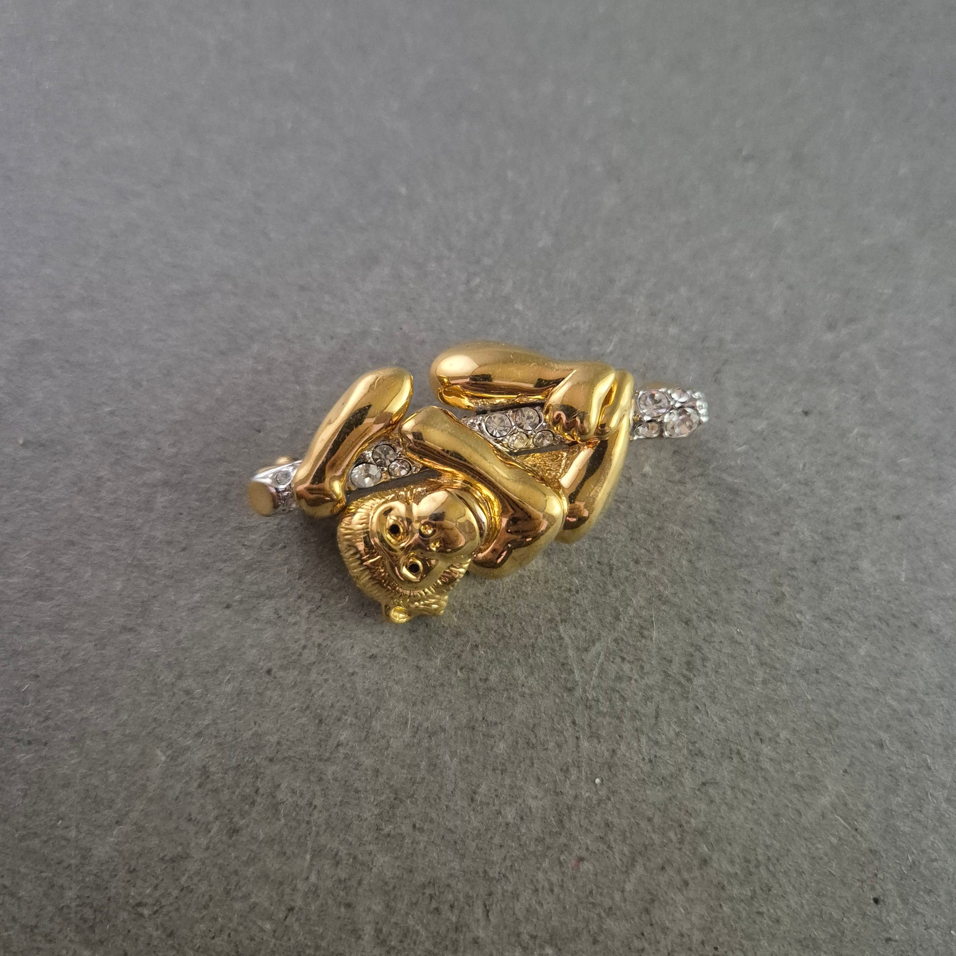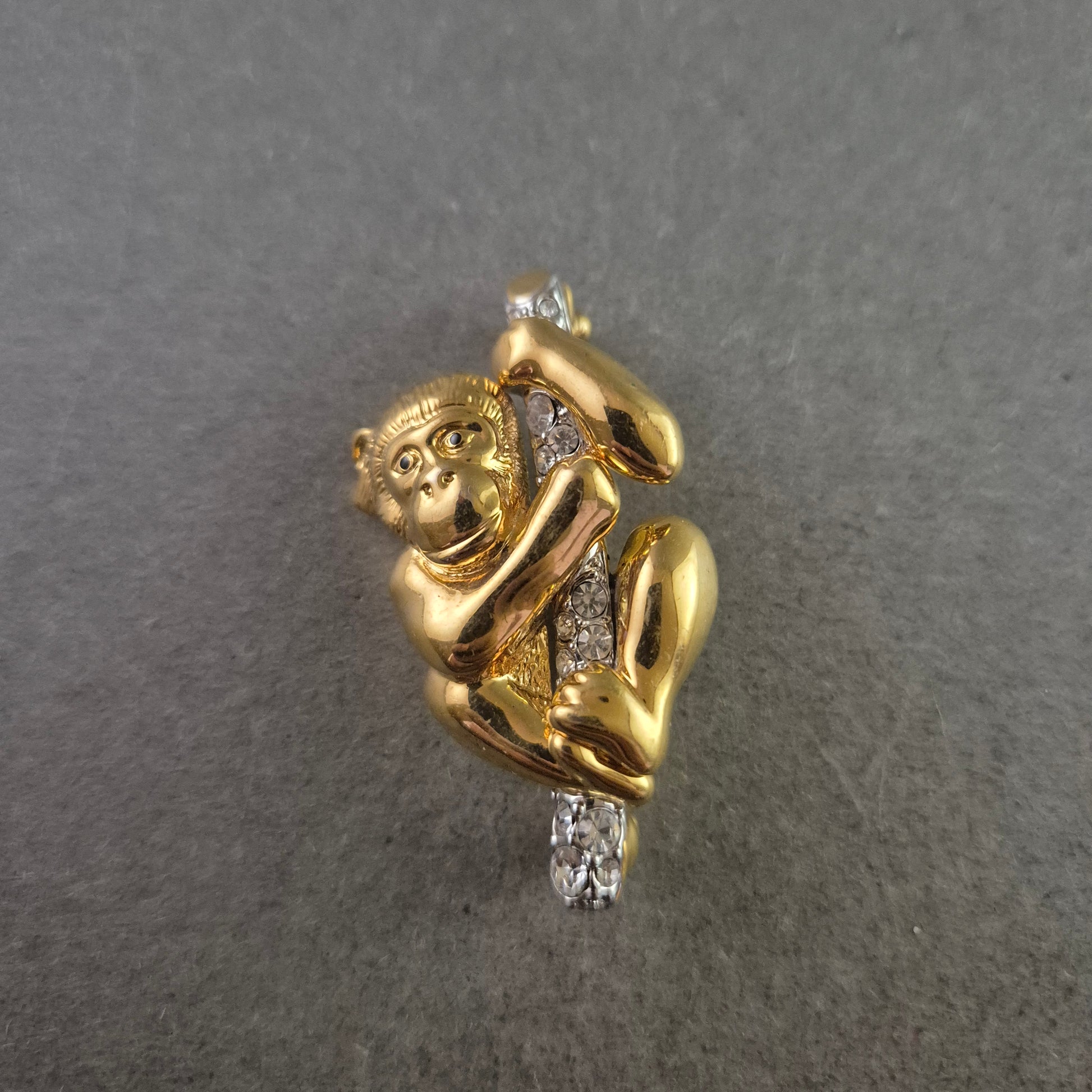 Vergoldete Affen Brosche mit Strasssteinen – Verspieltes Design