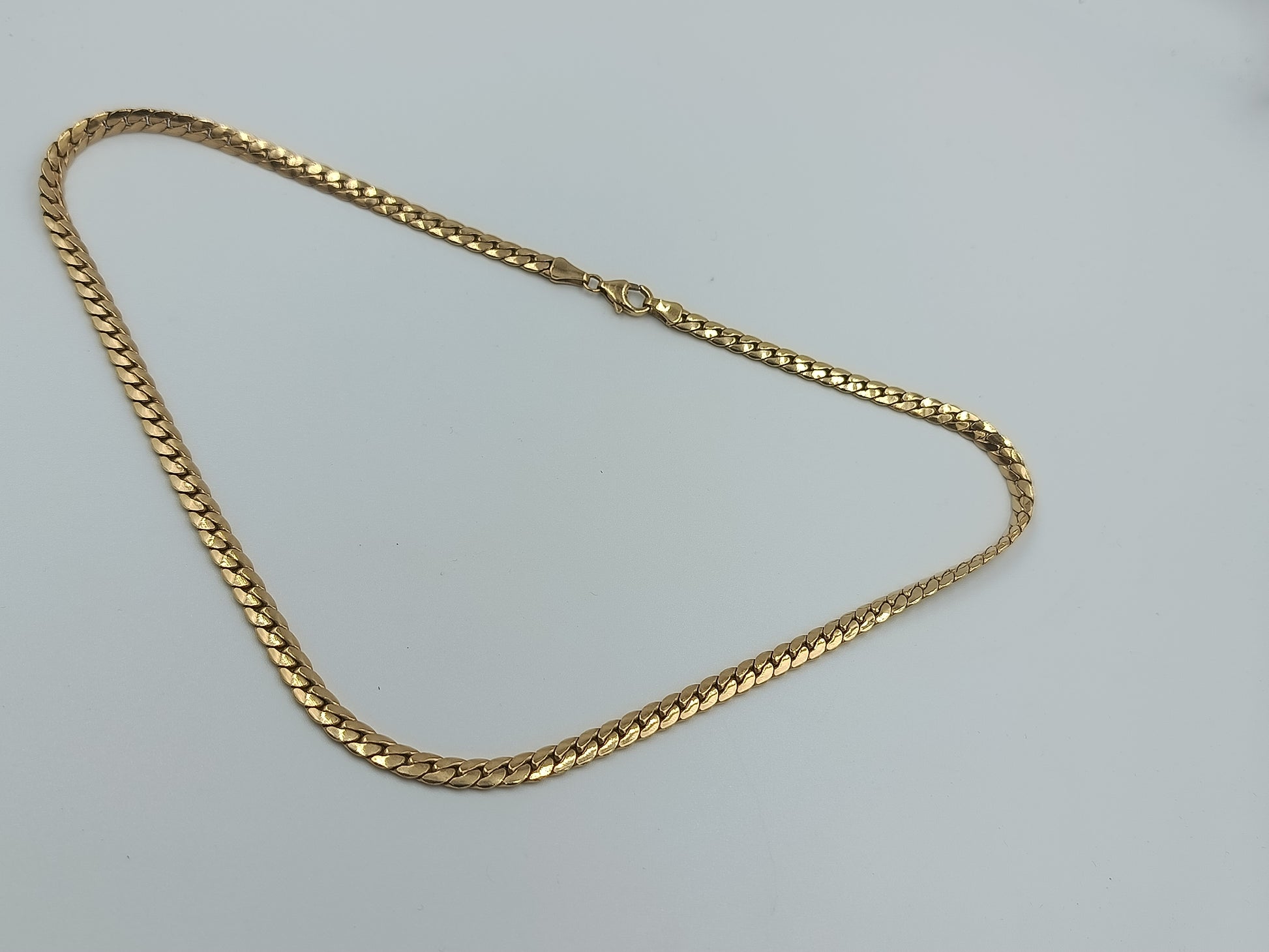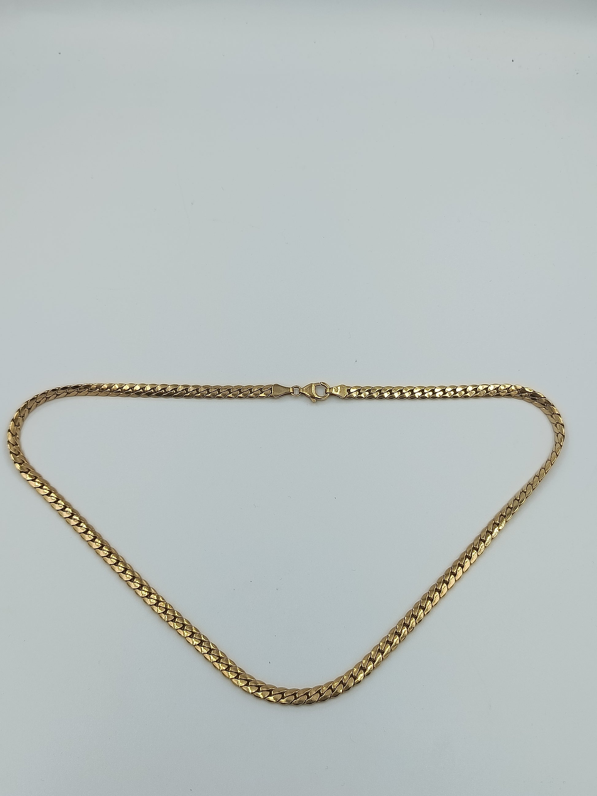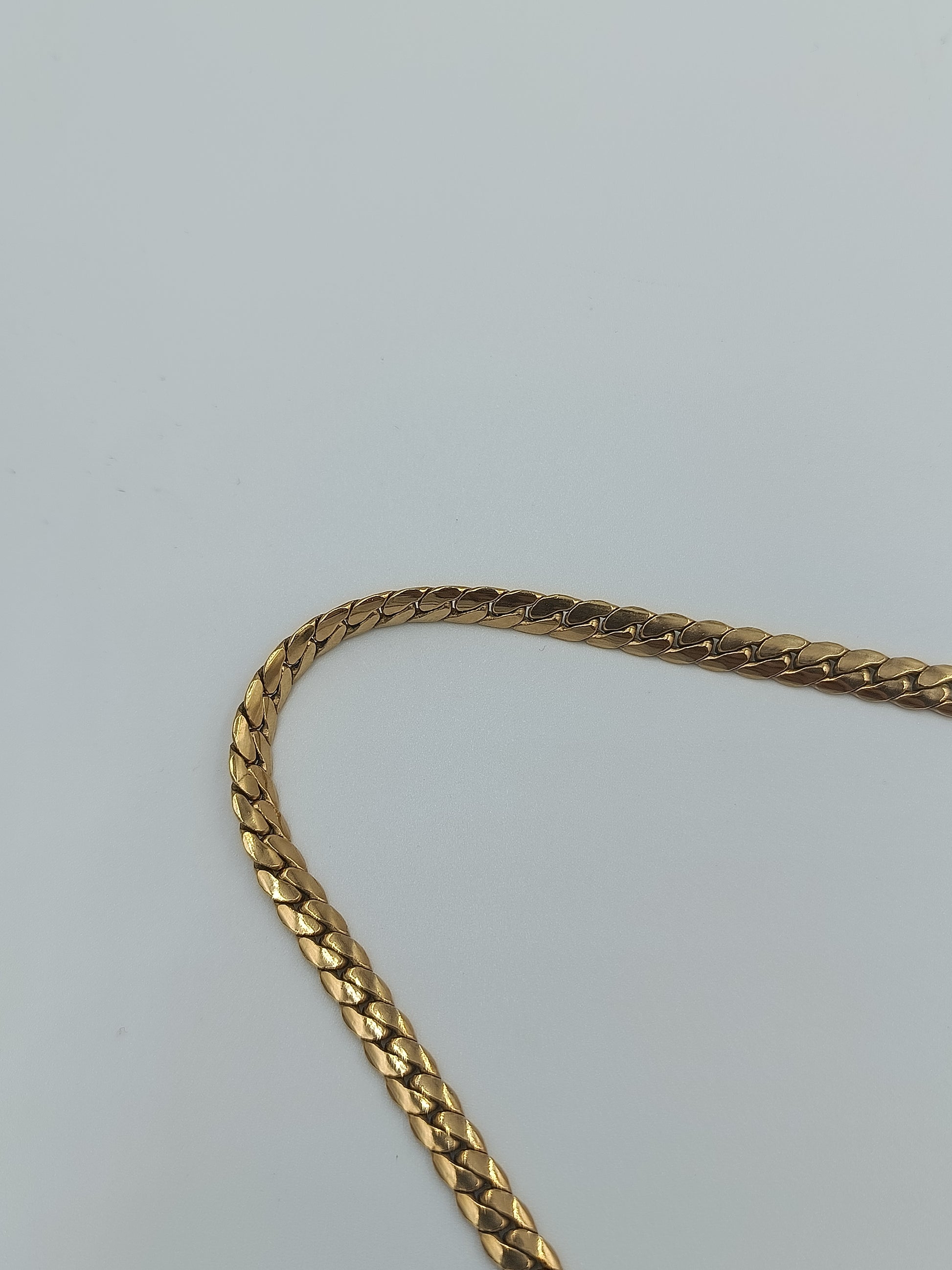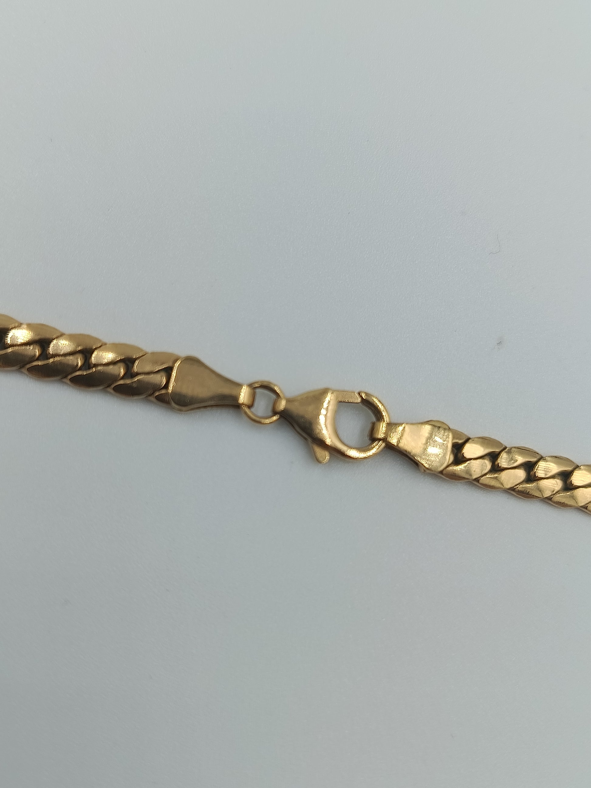 Klassische Panzerkette in glänzender Goldoptik, zeitlos und elegant. Die Kette liegt flach an und ist durch ihre mittlere Stärke sowohl für Damen als auch für Herren geeignet. Ausgestattet mit einem robusten Karabinerverschluss für sicheren Halt.