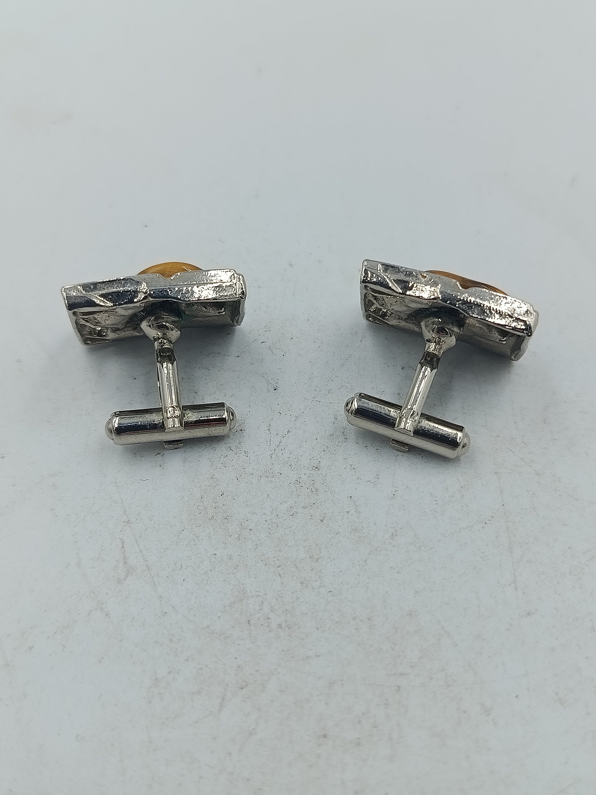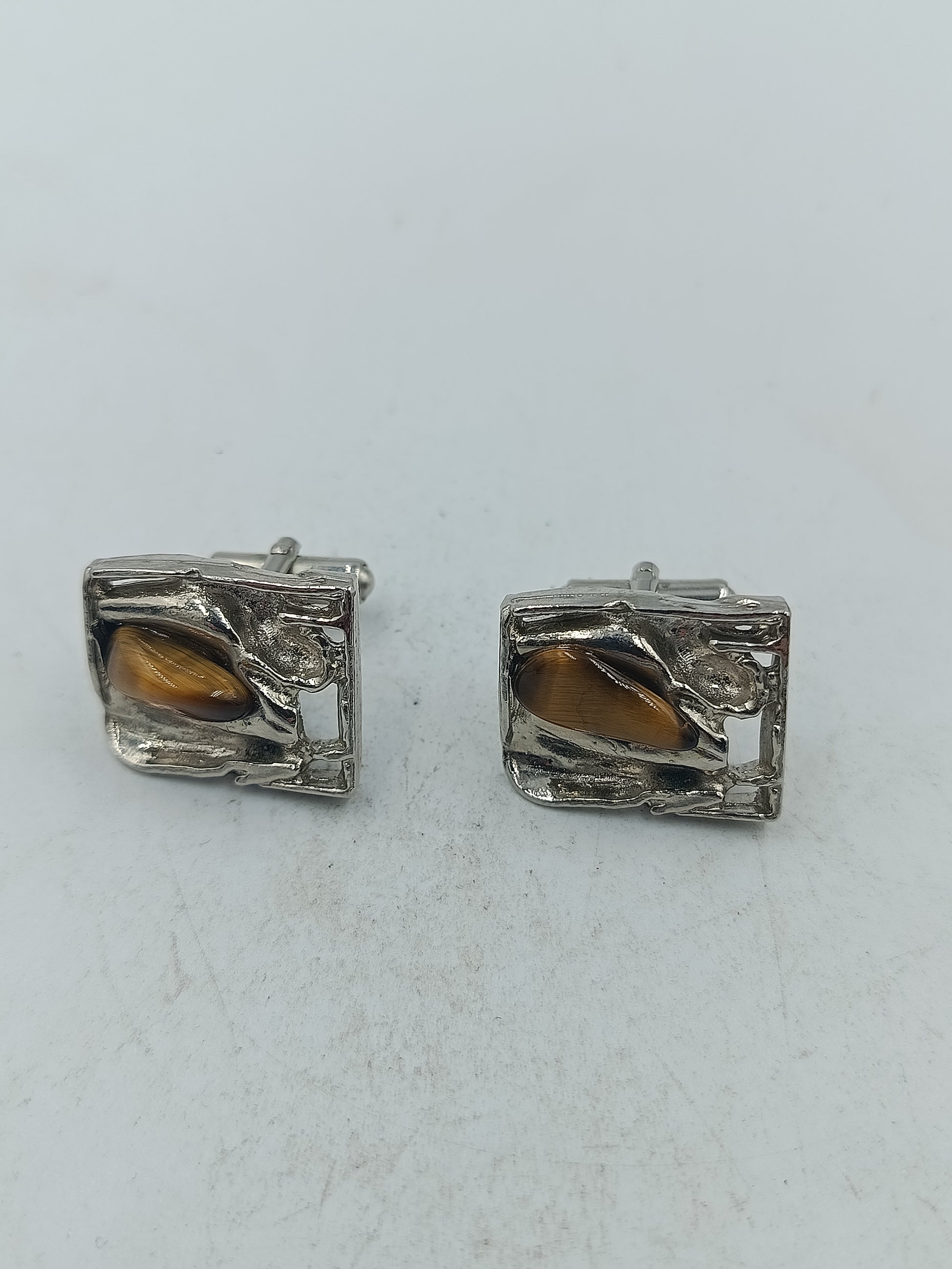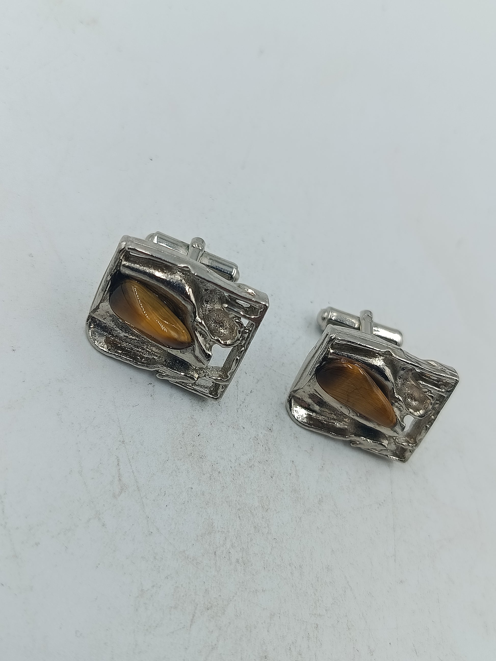 Versilbrte Manschettenknöpfe mit Tigerauge in modernem Design