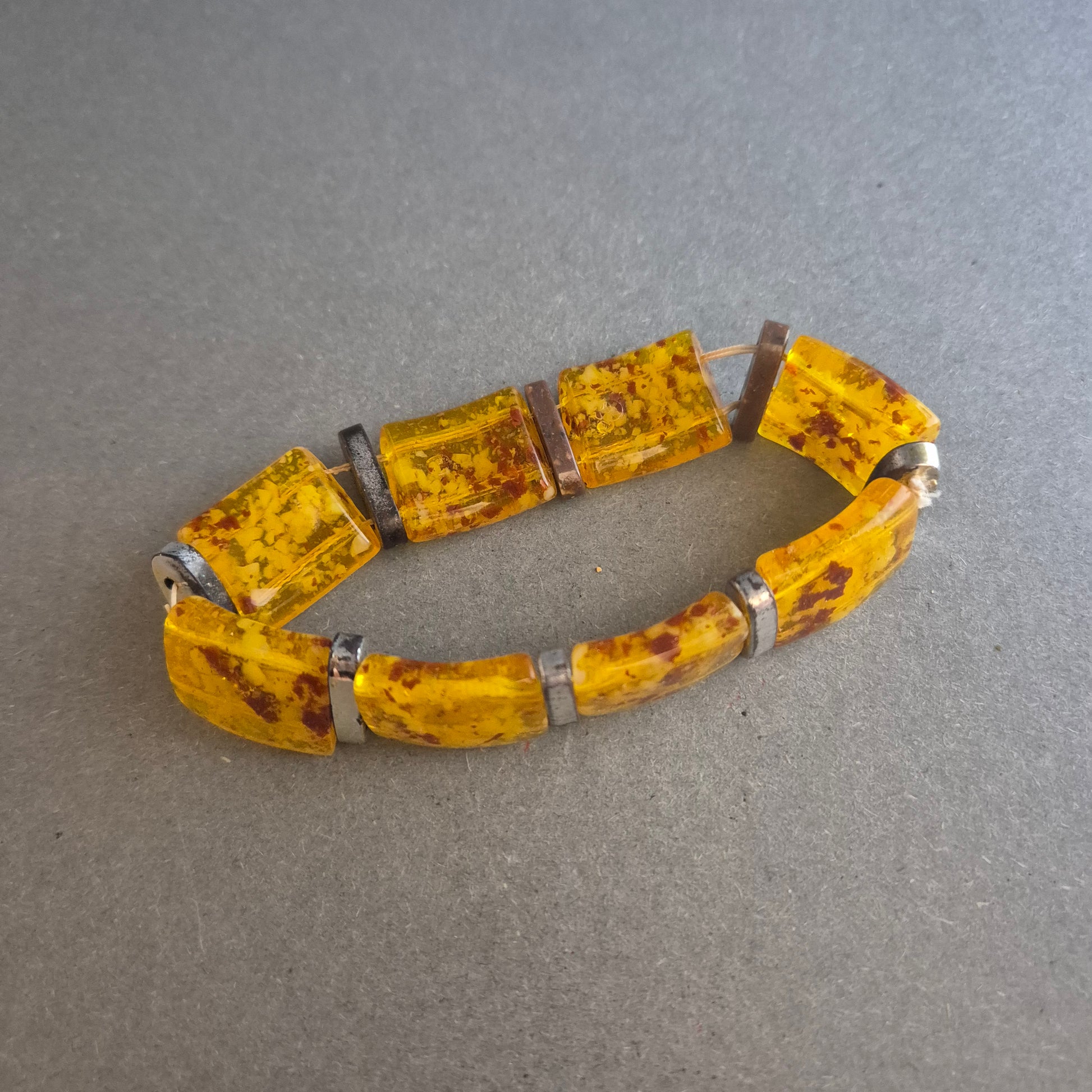 Vintage Armband in Bernsteinoptik – Segmentdesign mit Metallakzenten