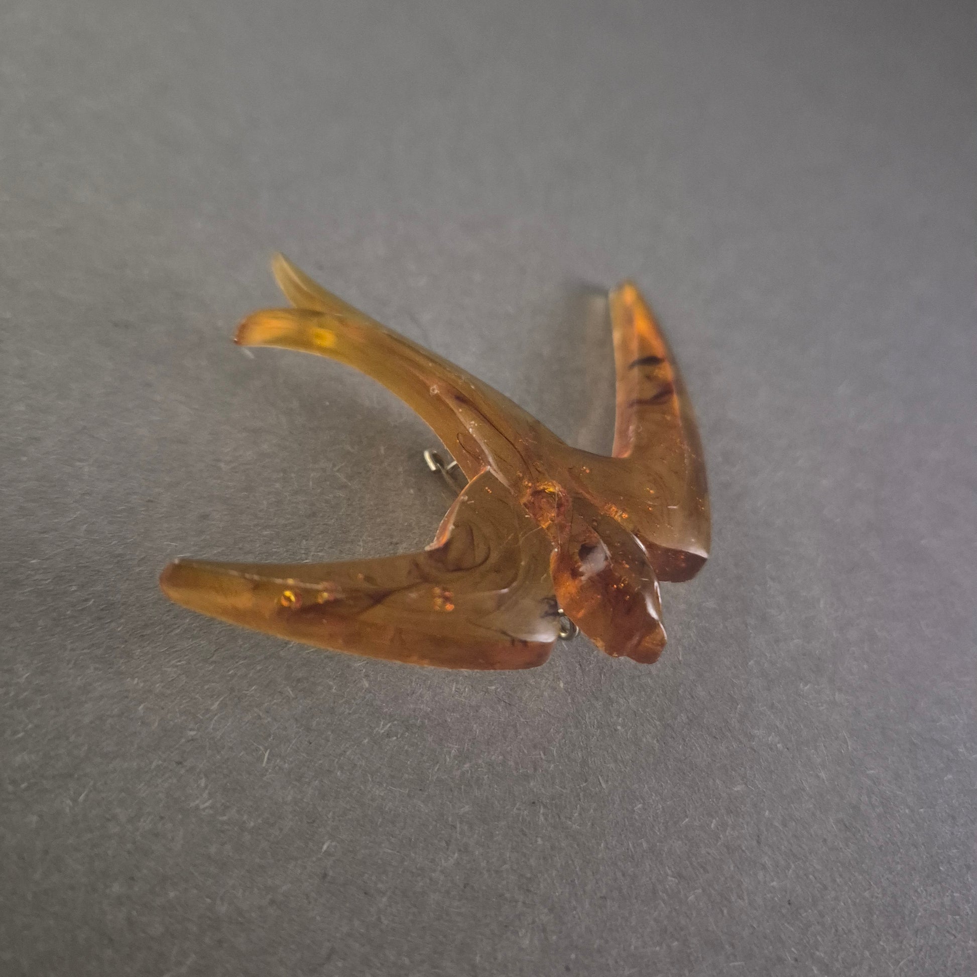 Vintage Bernstein-Brosche – Elegante Vogel-Form im Retro-Stil