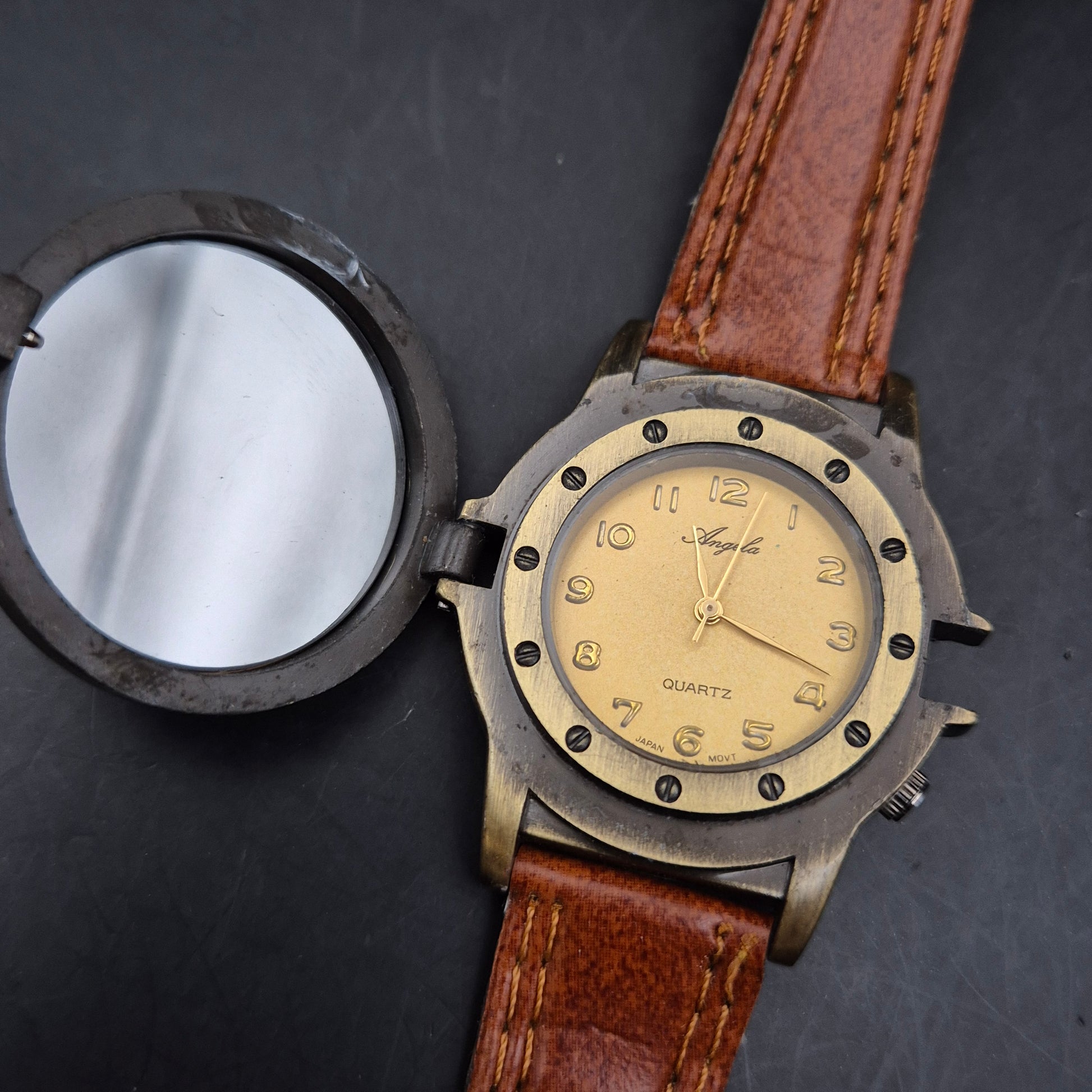 Funktionen: Quarzwerk, Klappdeckel mit Spiegel