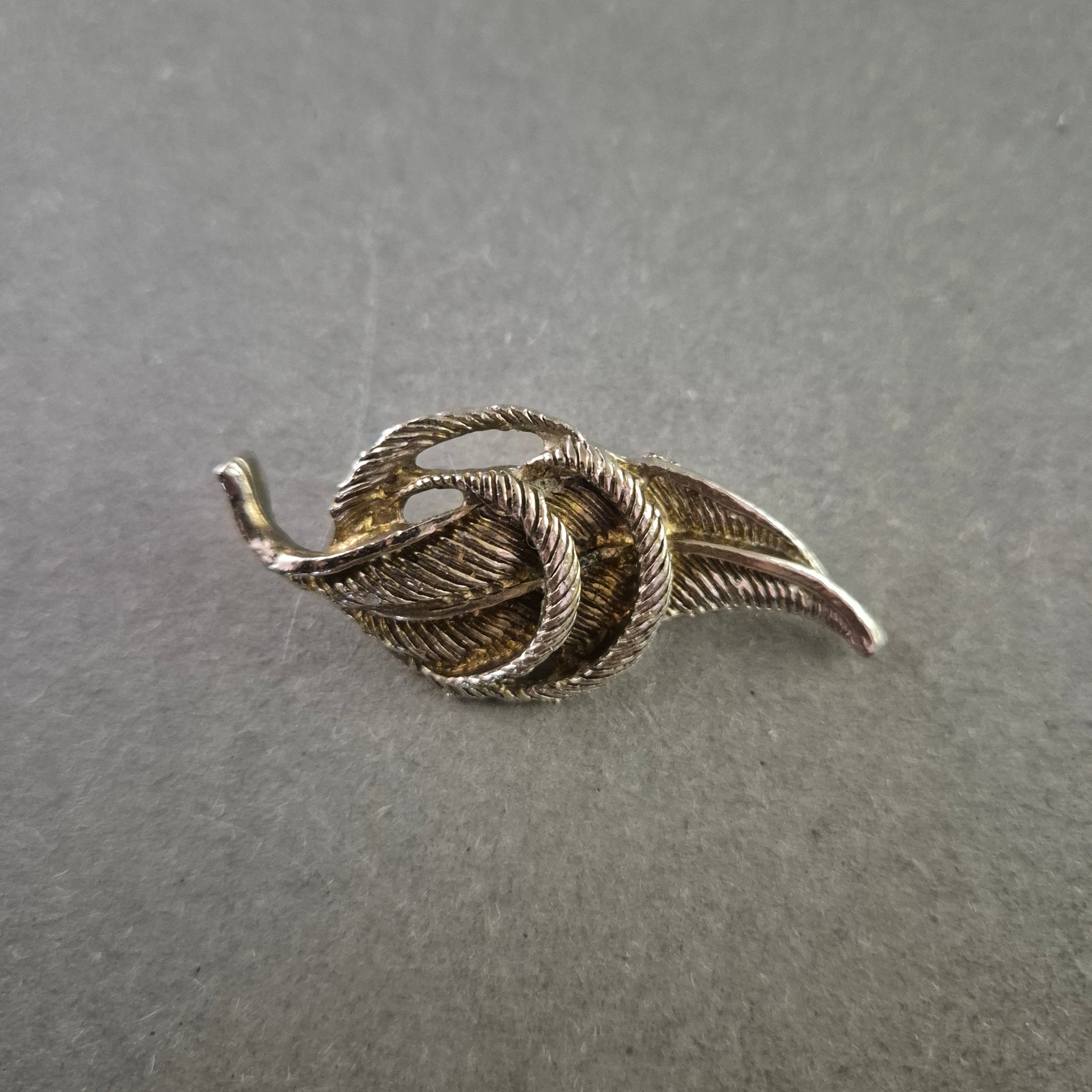 Vintage Brosche in Blattform – Filigranes Design mit Struktur
