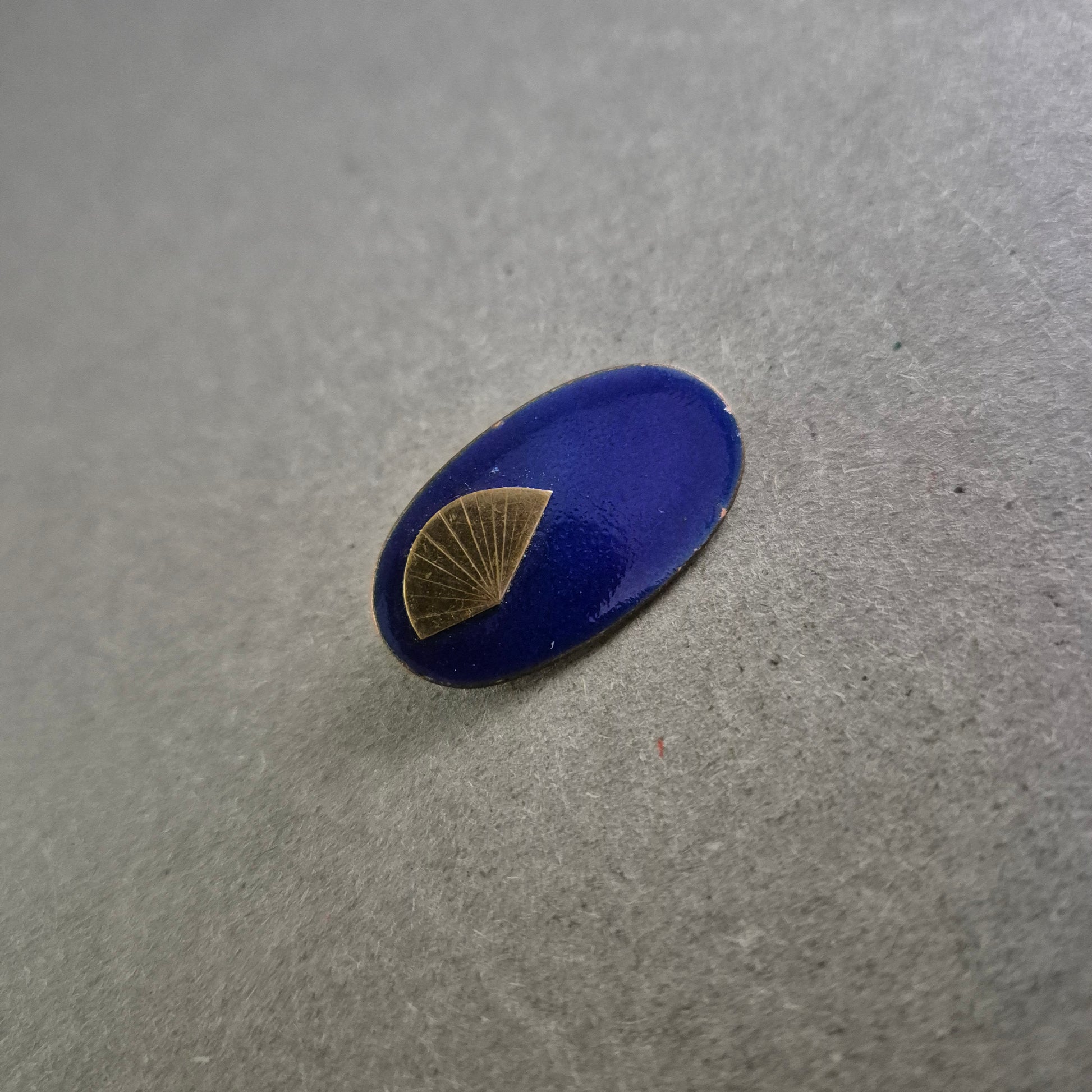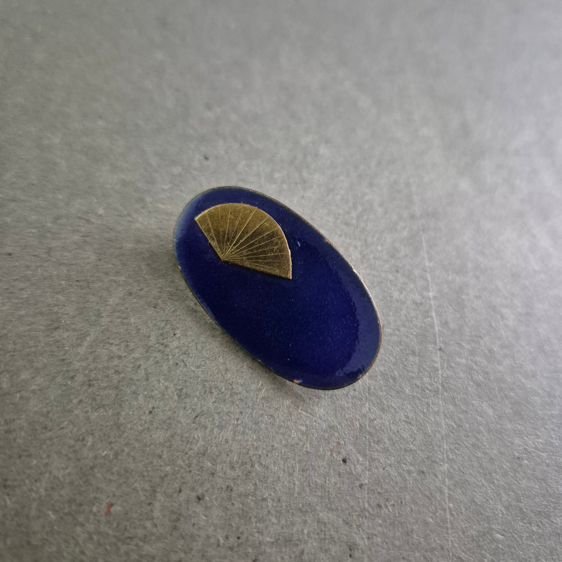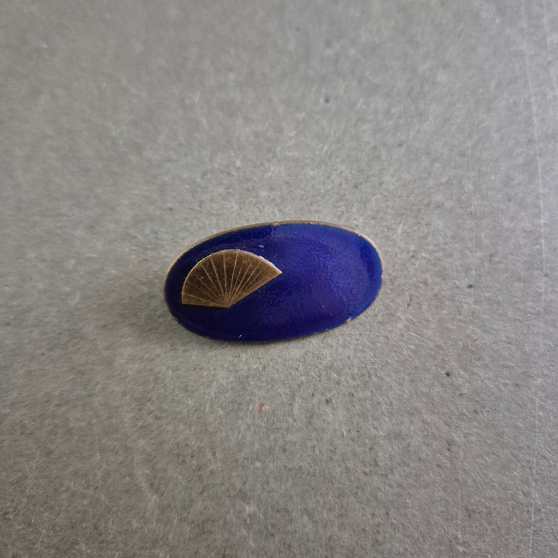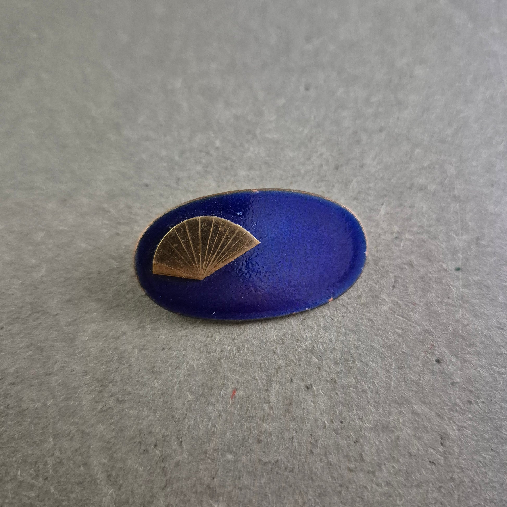 Vintage Brosche mit Fächer-Motiv – Kobaltblaues Emaille-Design