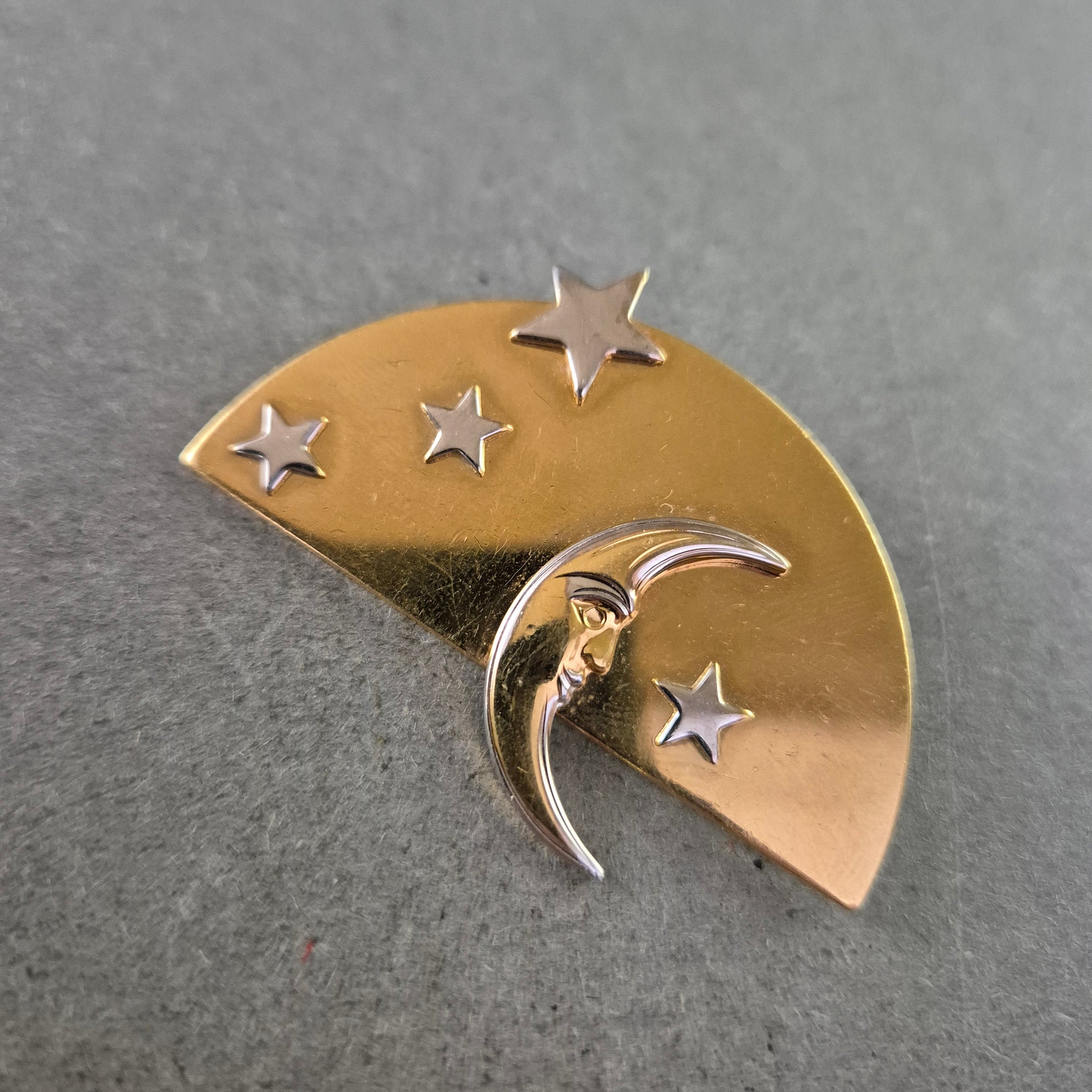 Vintage Brosche Mond & Sterne – Celestial Design Gold Silber