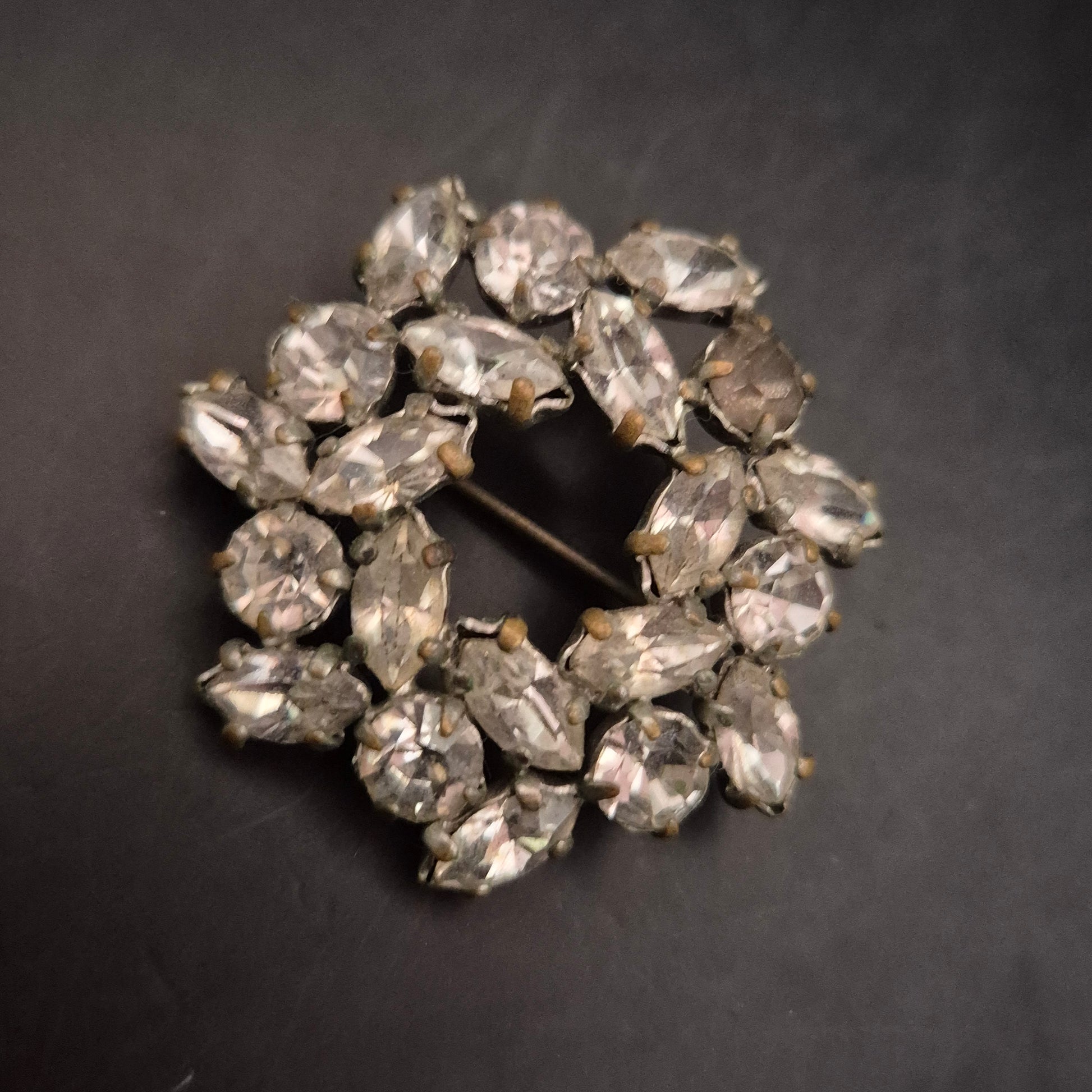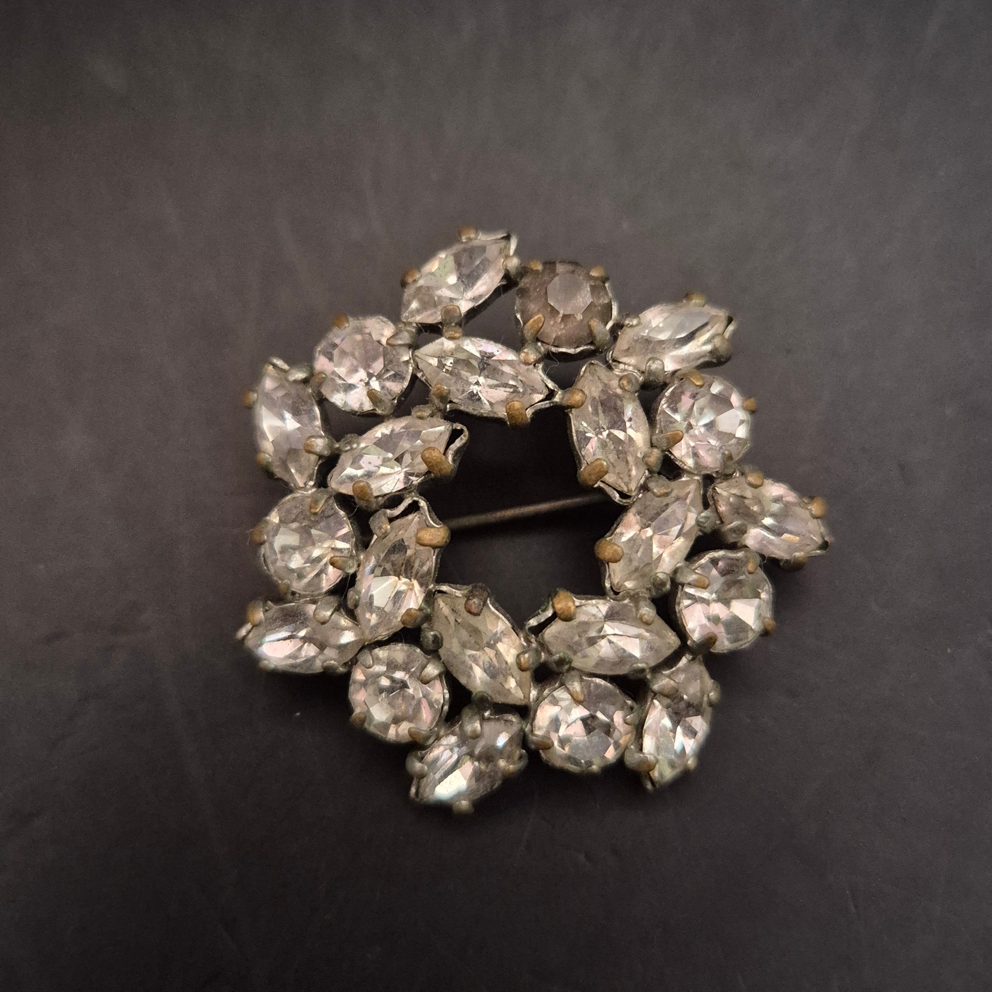 Vintage Damen Brosche – Blumenkranz mit großen Strass-Steinen