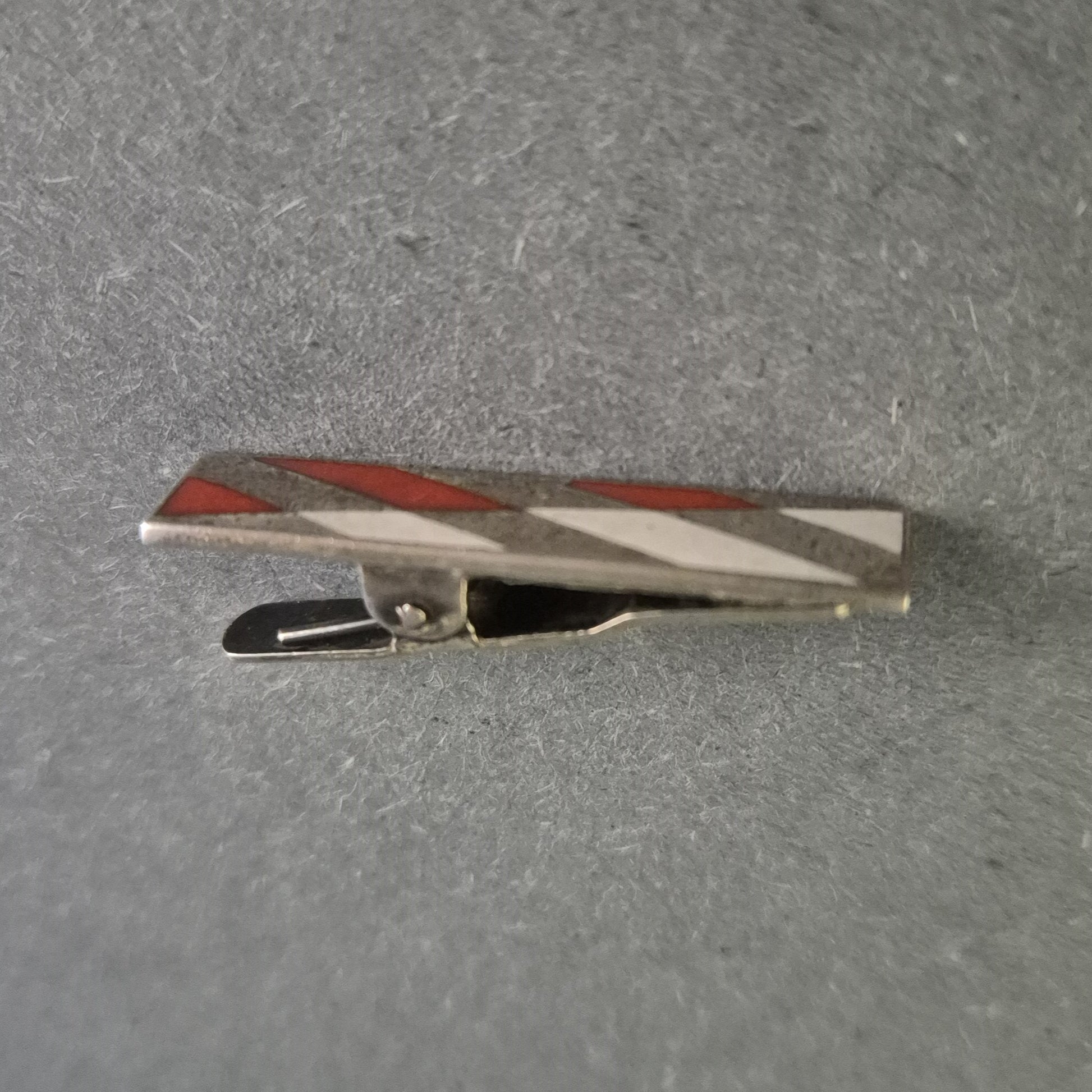 Diese stilvolle Vintage-Krawattenklammer aus 800er Silber überzeugt mit ihrem eleganten Emaille-Dekor in geometrischem Muster. Die rot-weißen Rauten verleihen dem klassischen Accessoire eine markante Optik. Perfekt für Herren mit Stil, die ihrer Krawatte einen besonderen Akzent verleihen möchten.
