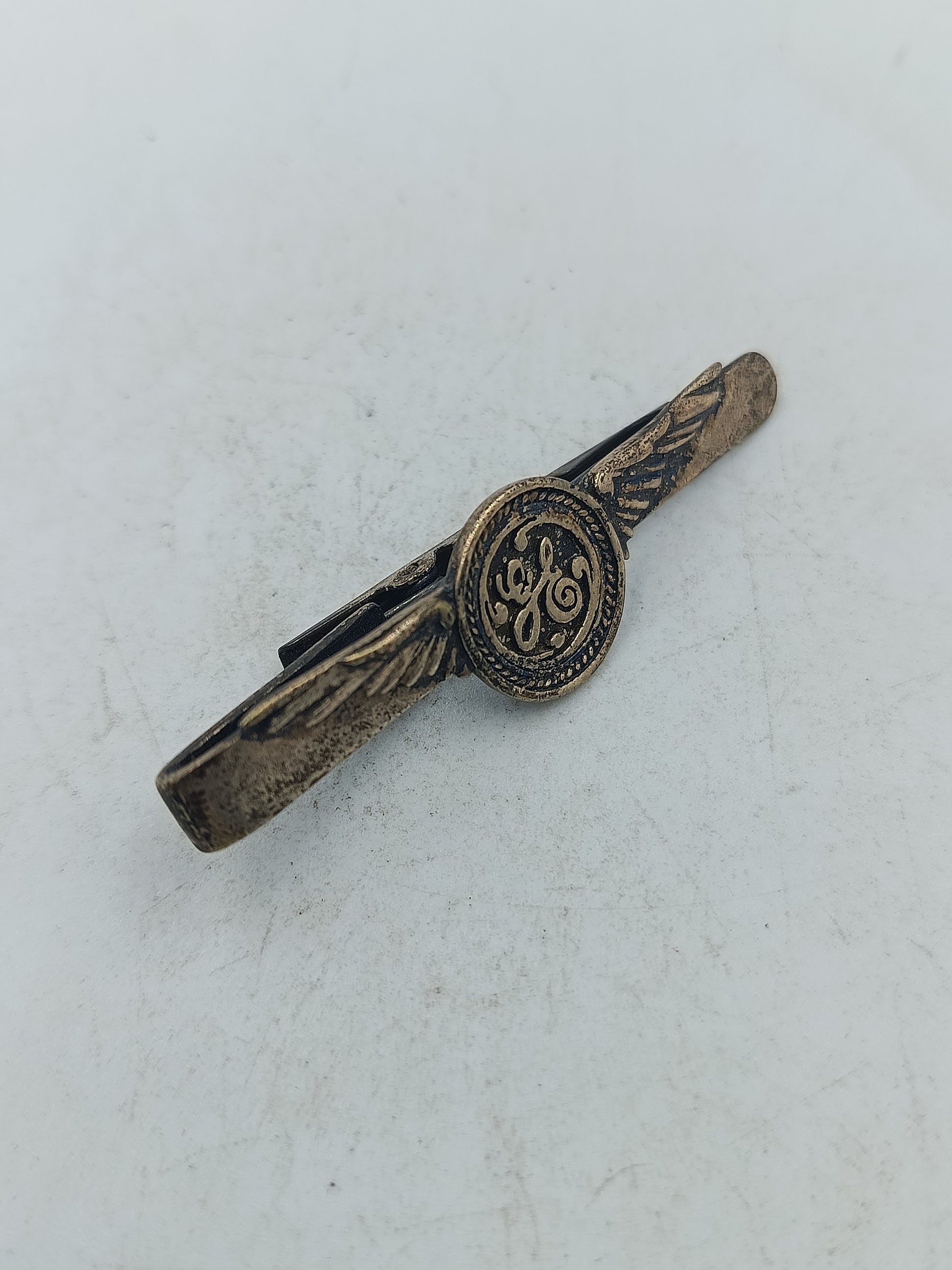 Vintage Krawattennadel mit GE-Monogramm und Flügelmotiv