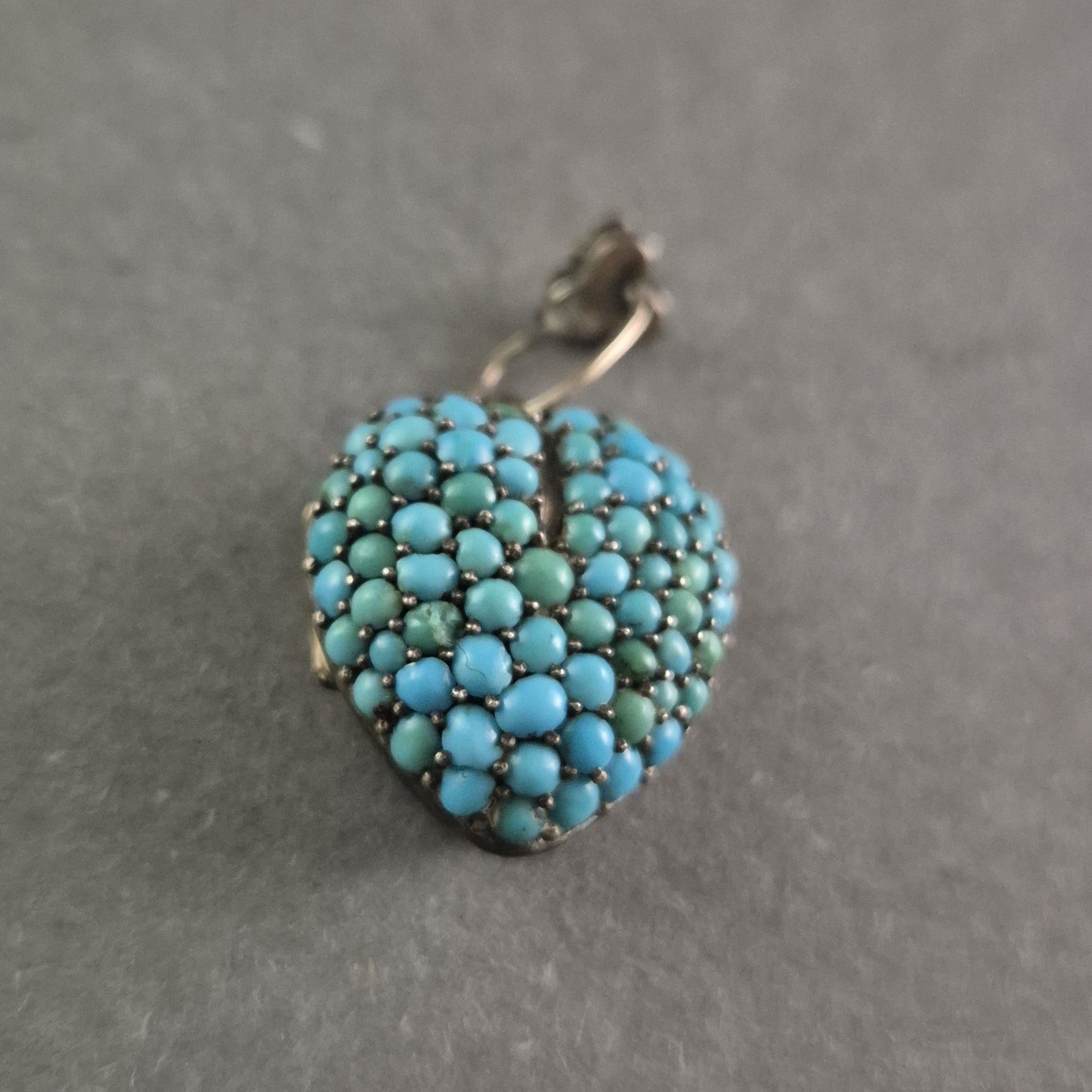 Vintage Medaillon in Herzform – Türkis besetzt mit antikem Charme