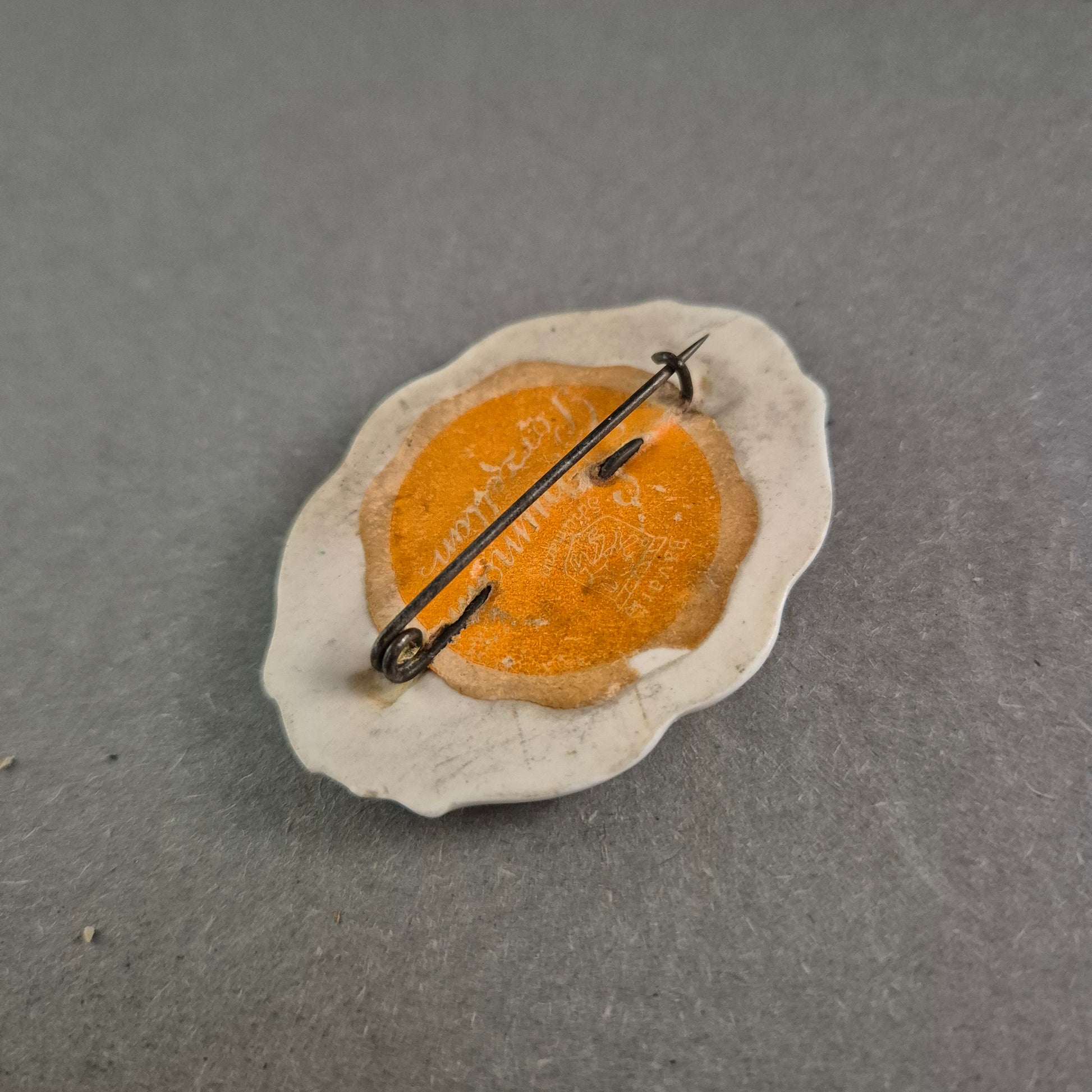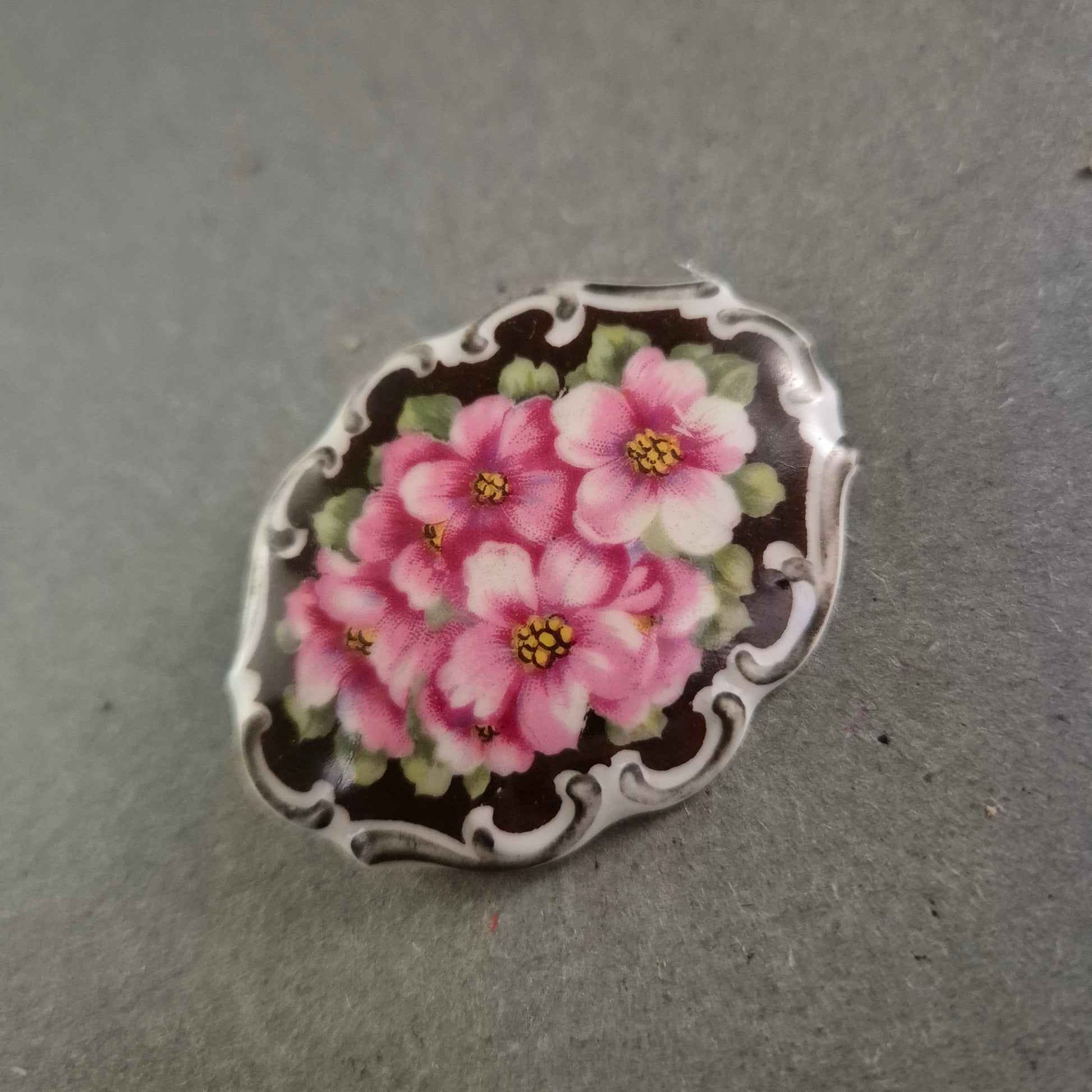 Vintage Porzellan-Brosche mit rosa Blumenmotiv – Handgemalt
