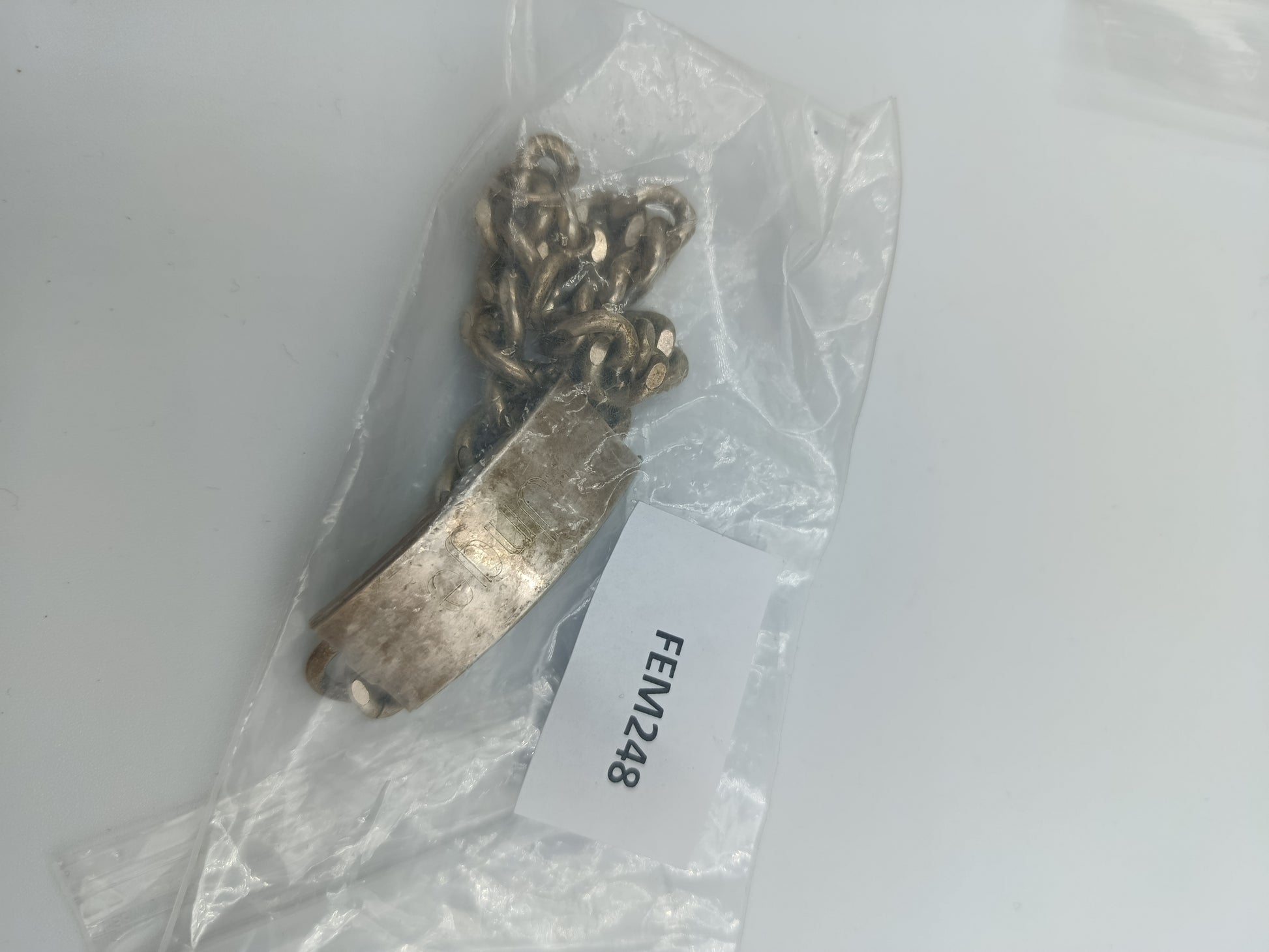 Klassisches, massives ID-Armband aus Silber mit markanter Panzerkette. Die Gravurplatte auf der Vorderseite trägt den Schriftzug „Inge“ – perfekt als persönliches Erinnerungsstück oder zum Umarbeiten. Dank des soliden Karabinerverschlusses sitzt das Armband sicher am Handgelenk.