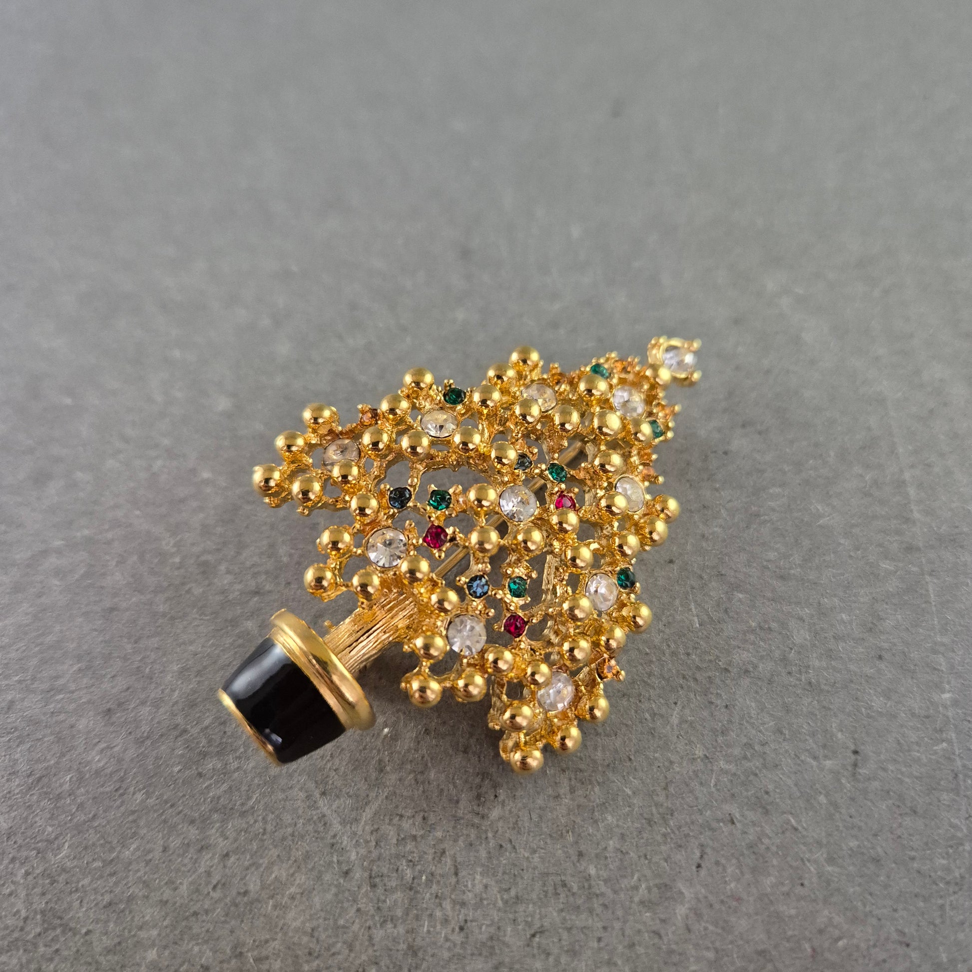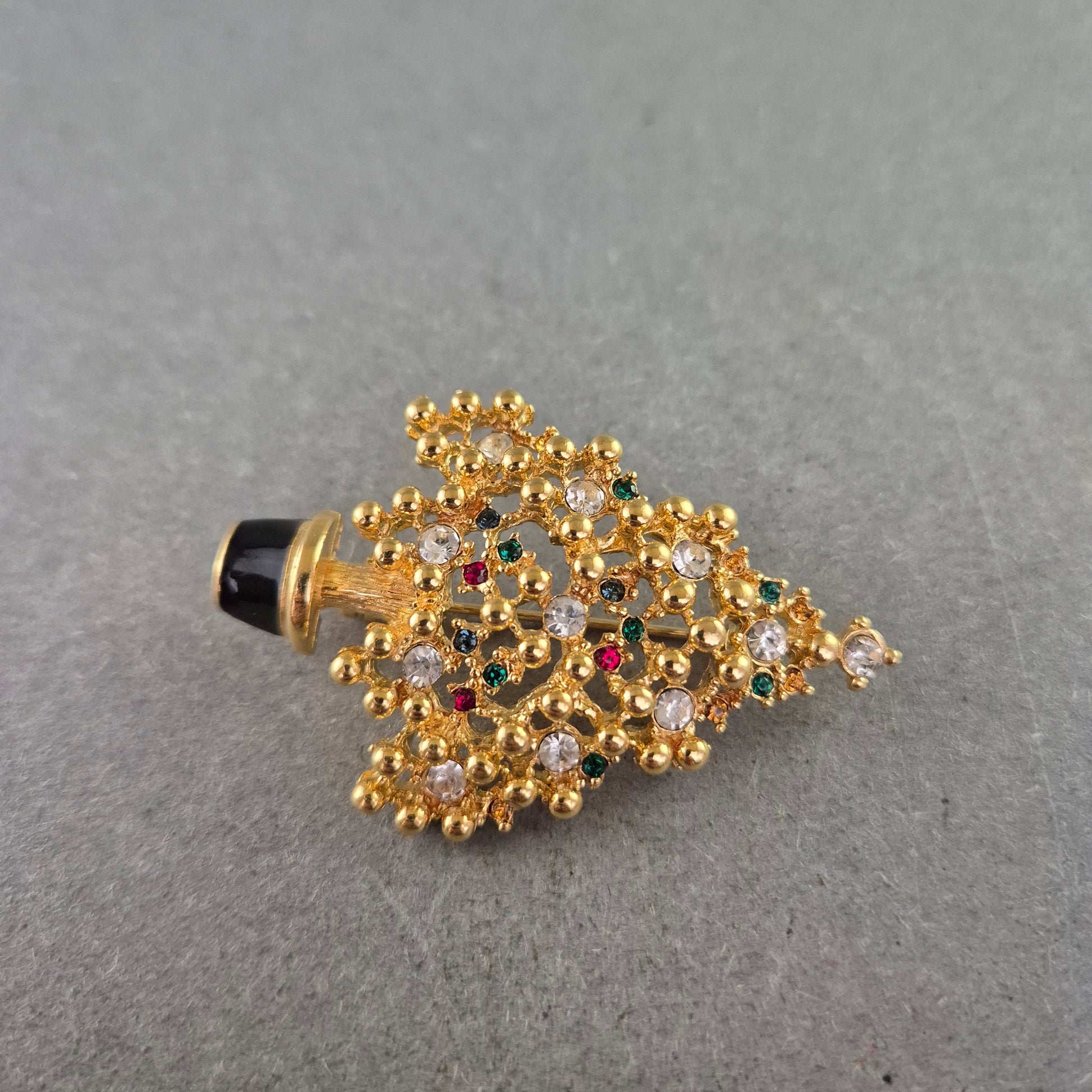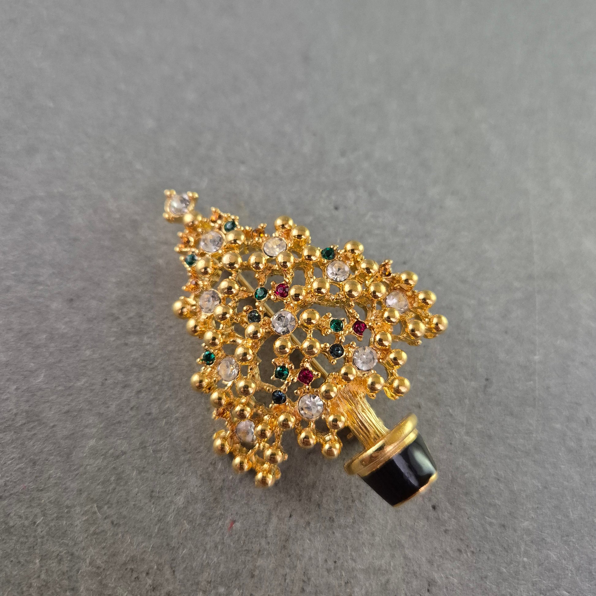 Weihnachtsbaum-Brosche mit bunten Schmucksteinen – Festliches Accessoire