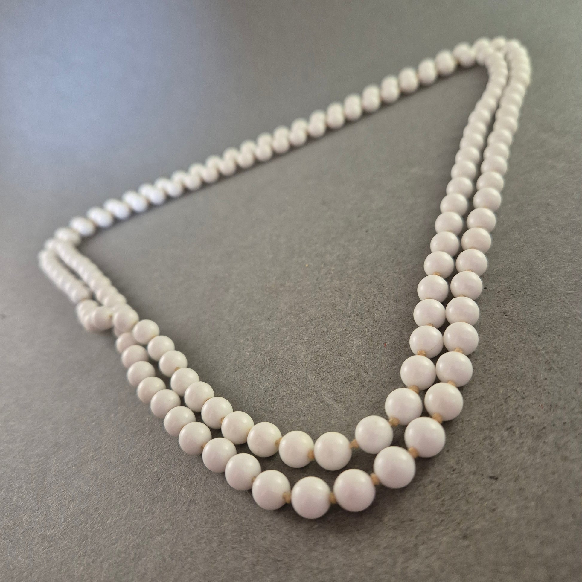 Zweireihige Perlenkette in Weiß – Klassischer Vintage-Stil