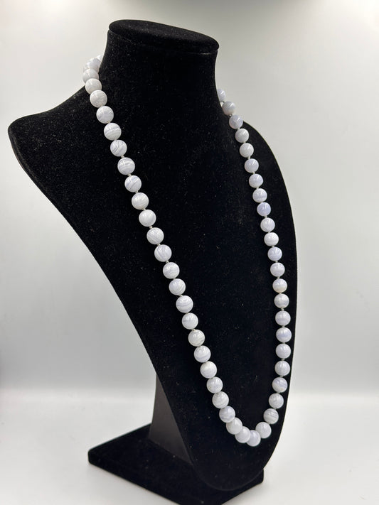Elegante Lange Hellblaue Perlen-Halskette mit Goldfarbenem Verschluss