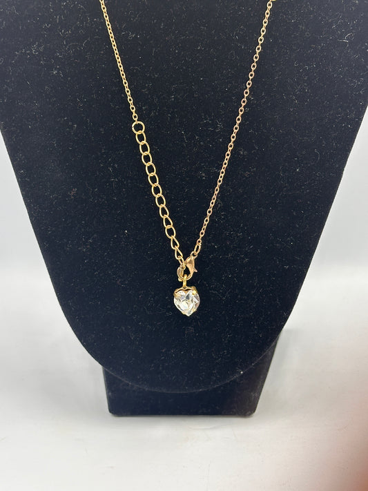 Elegante Lange Halskette, Vergoldet mit Glas Kristallen, Herzförmigem Anhänger