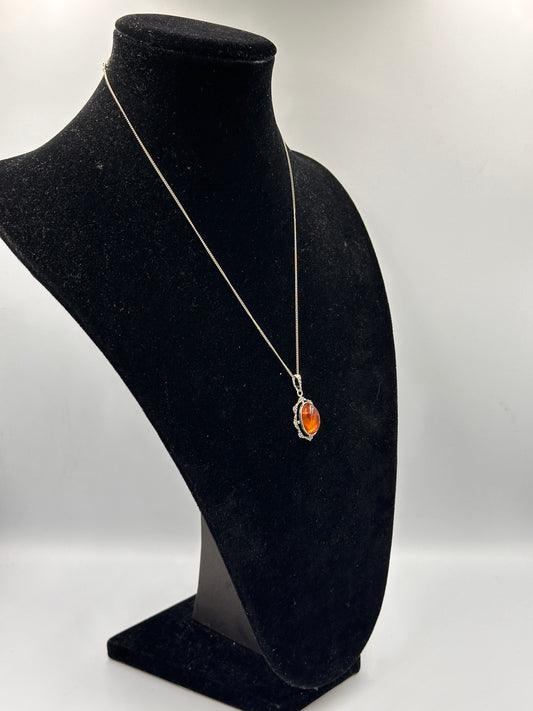 Elegante Silber 925 Halskette mit Bernstein Anhänger