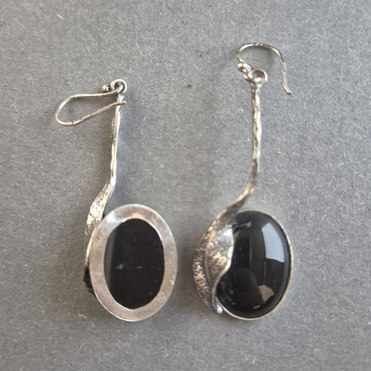 Elegante Silber Ohrhänger mit Onyx – Zeitlose Eleganz mit natürlichem Schwung