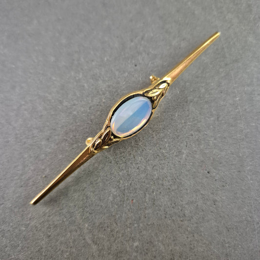 Elegante Vintage Brosche Goldfarben m. Ovalem Stein Opal Look