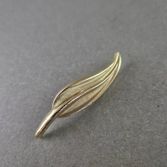 Elegante Vintage Brosche – Blatt oder Feder Goldfarben