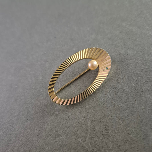Elegante Vintage Brosche in Goldoptik mit Zierperle – Ovales Design