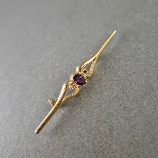 Elegante Vintage Brosche – Goldfarben mit Lila Stein