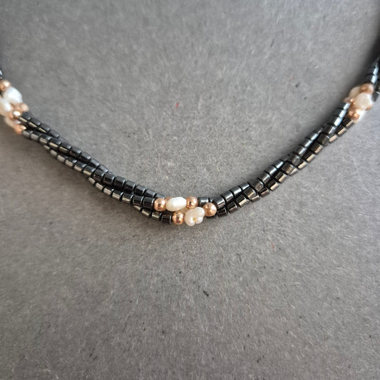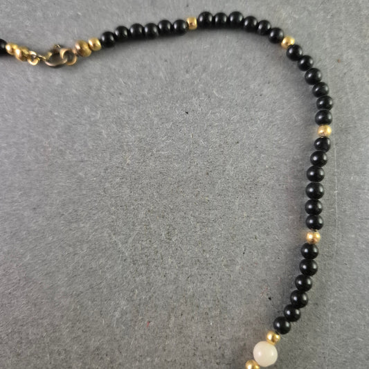 Feine Halskette mit schwarzen Perlen & goldfarbenen Akzenten