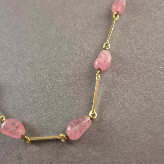 Feine Goldkette mit rosa Glasperlen – Eleganter Vintage-Schmuck